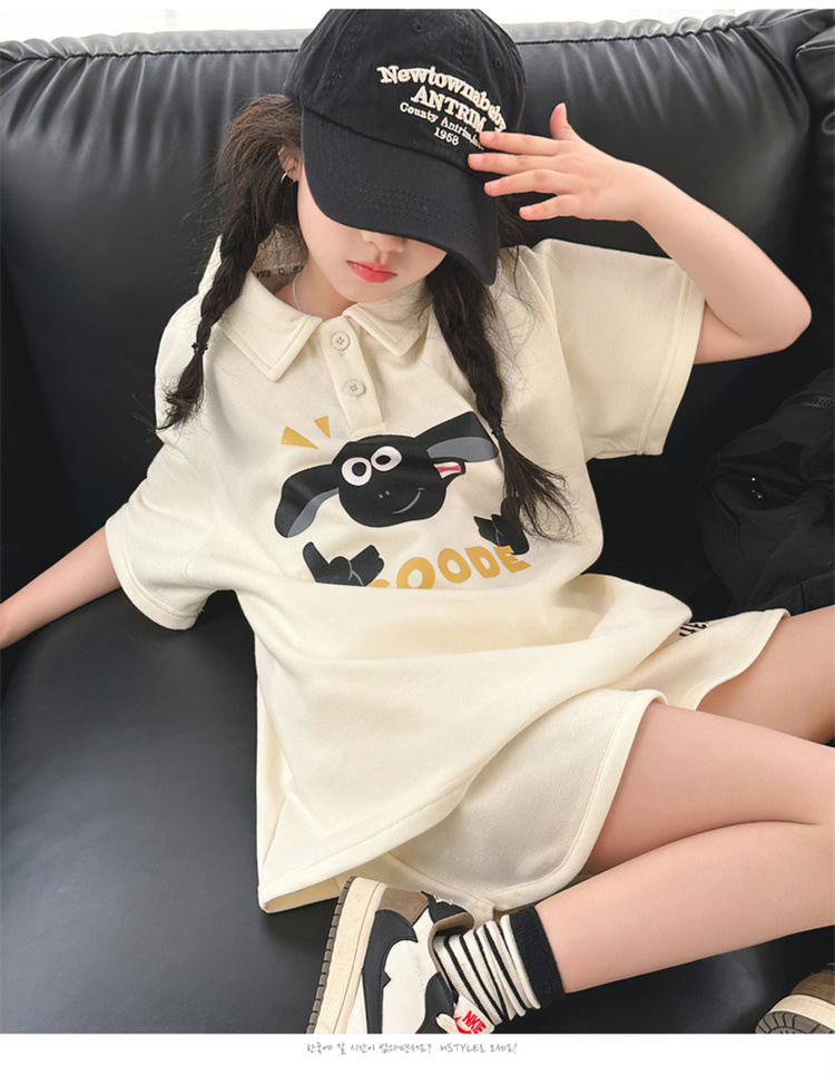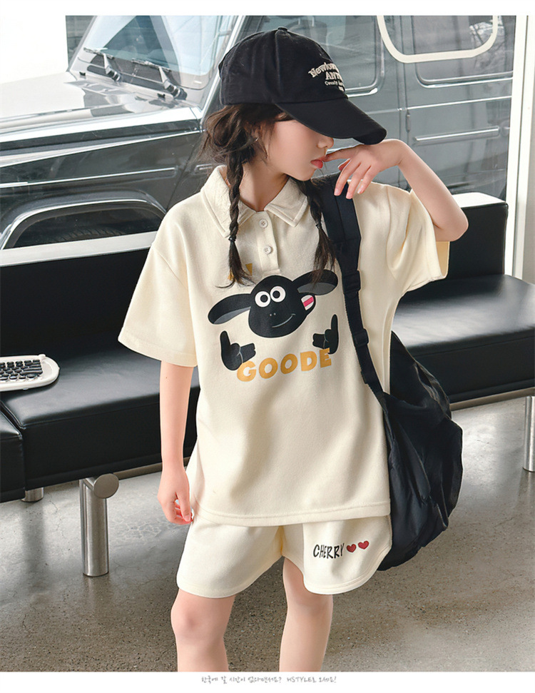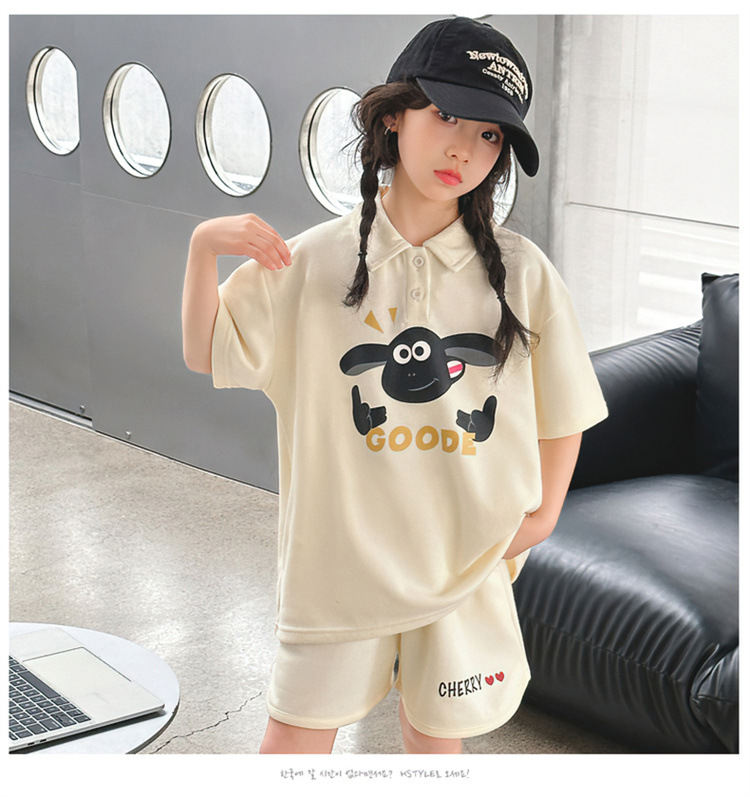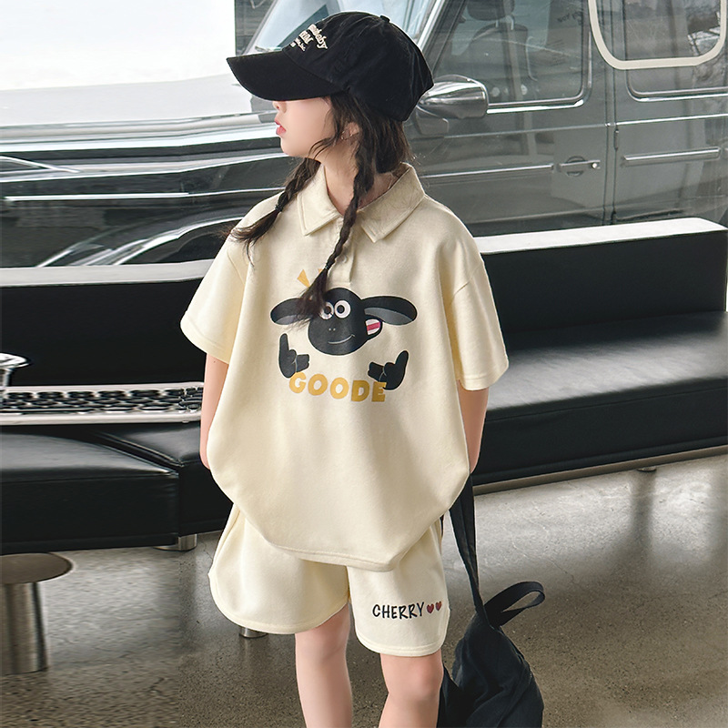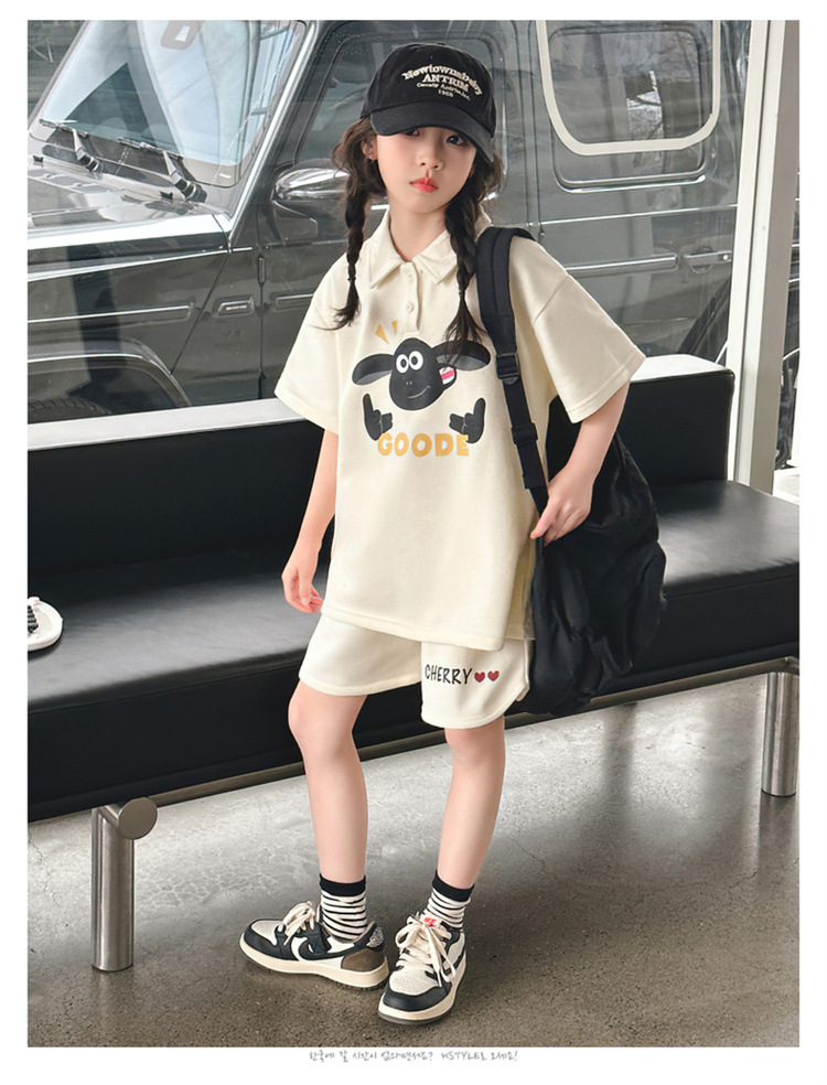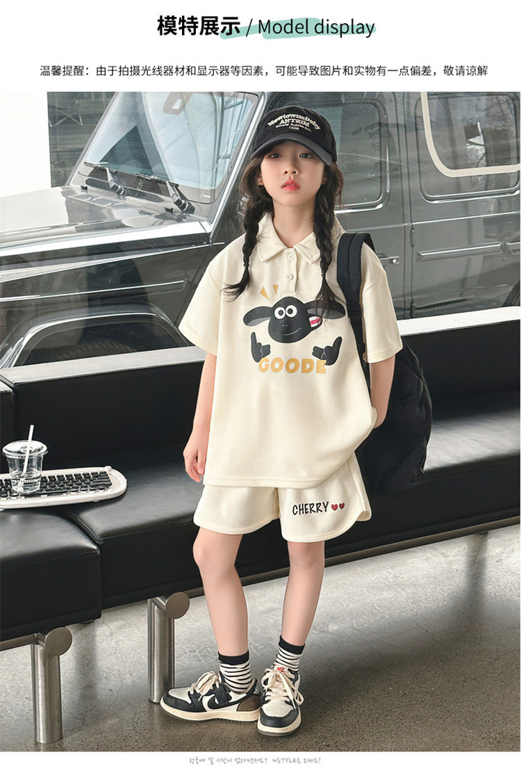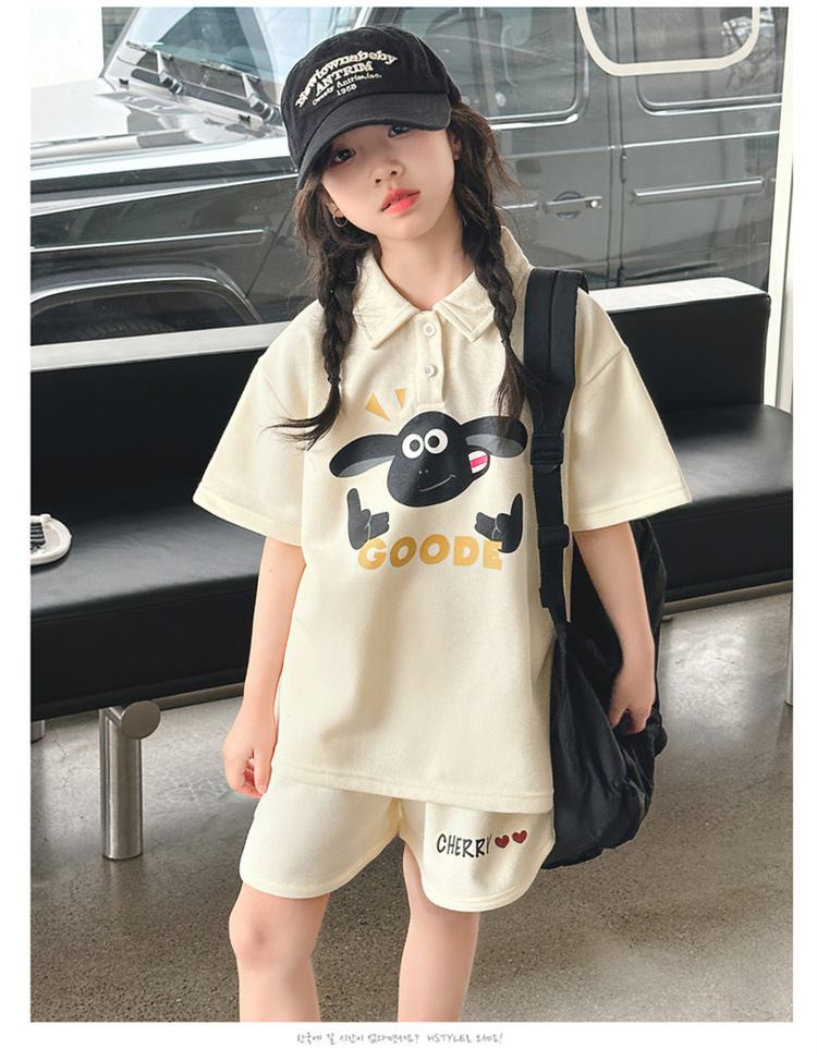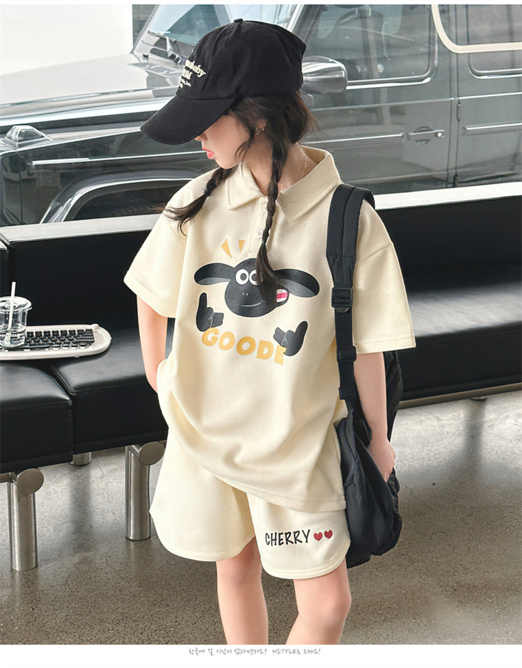 여자 여름 세트 2025 새로운 어린이 캐주얼 폴로 셔츠 반팔 여름 스포츠 반바지 투피스 세트스토어 가기