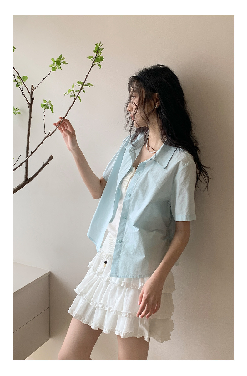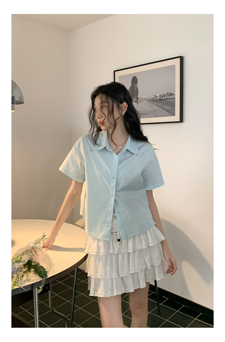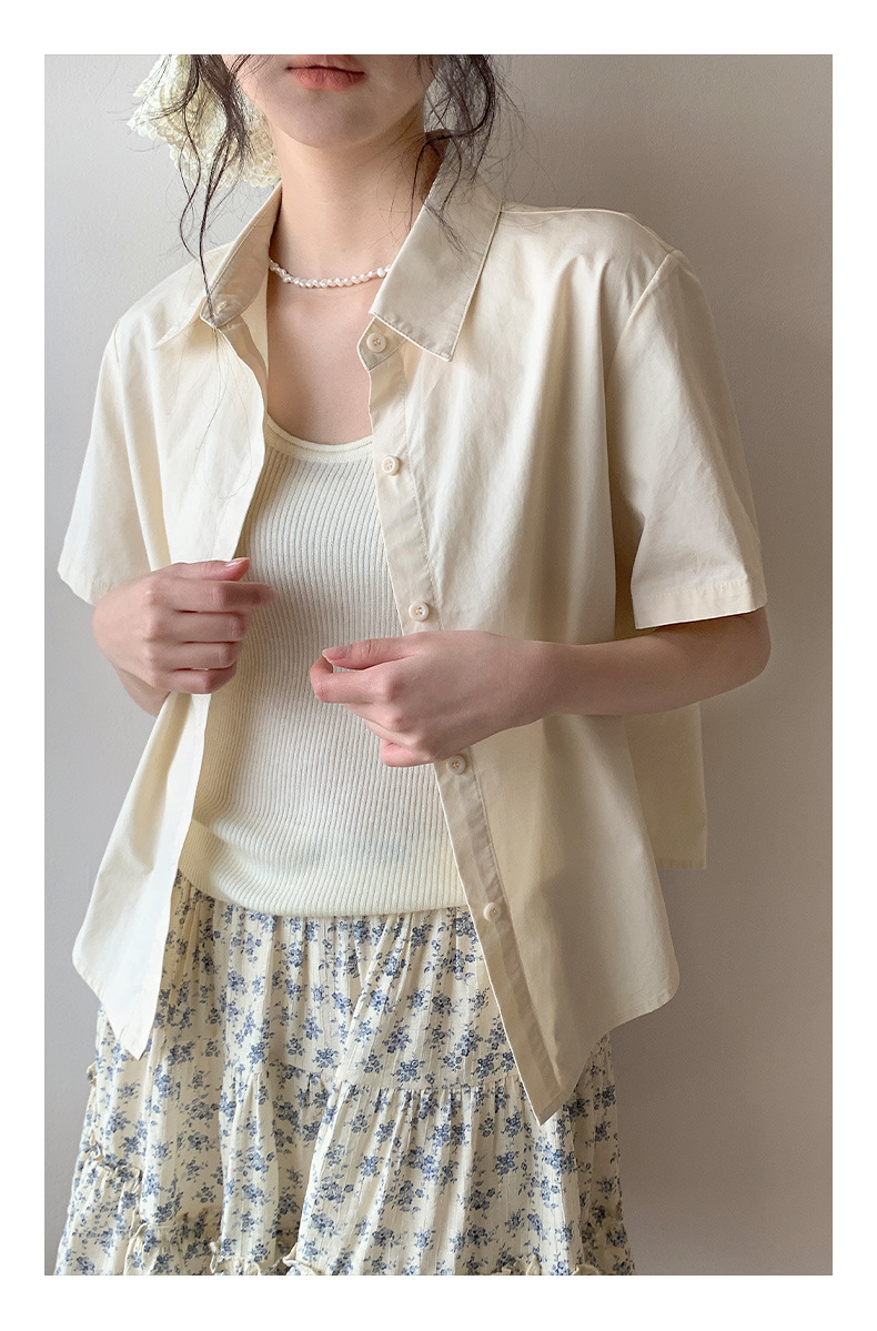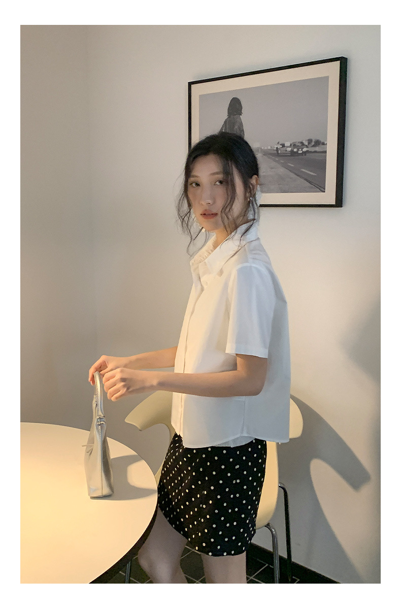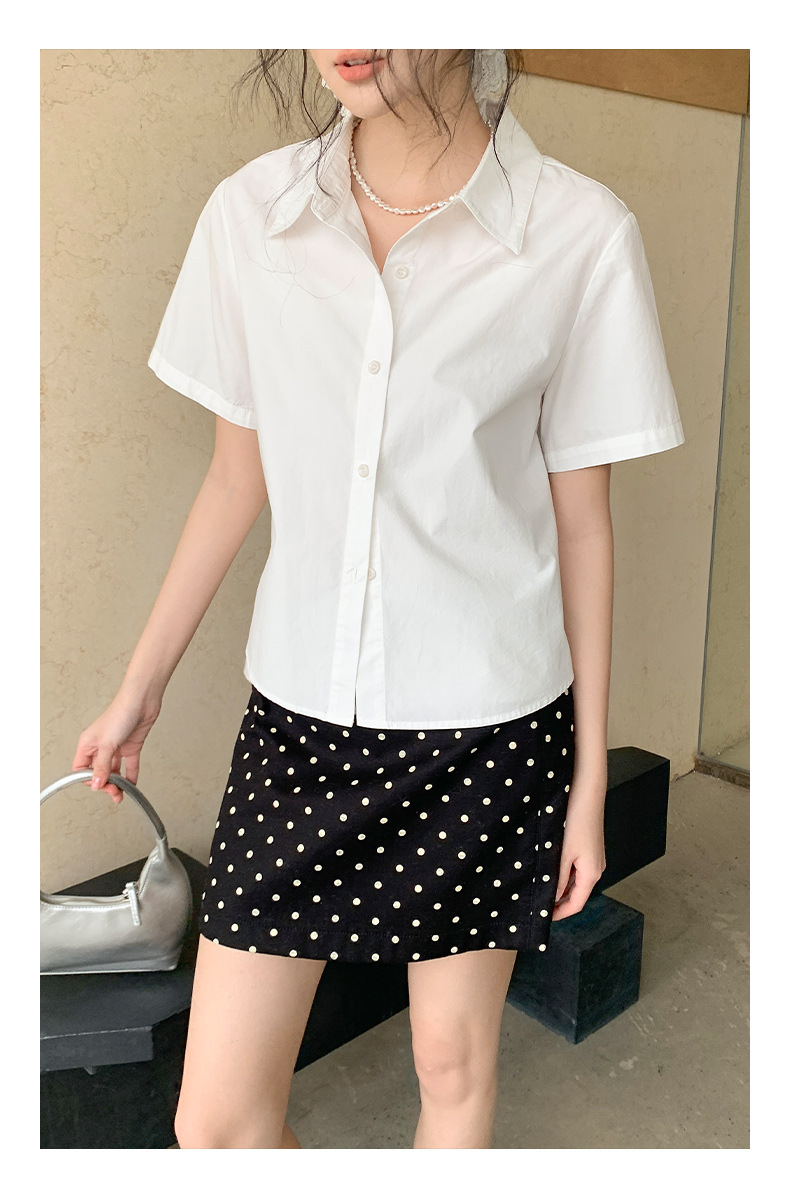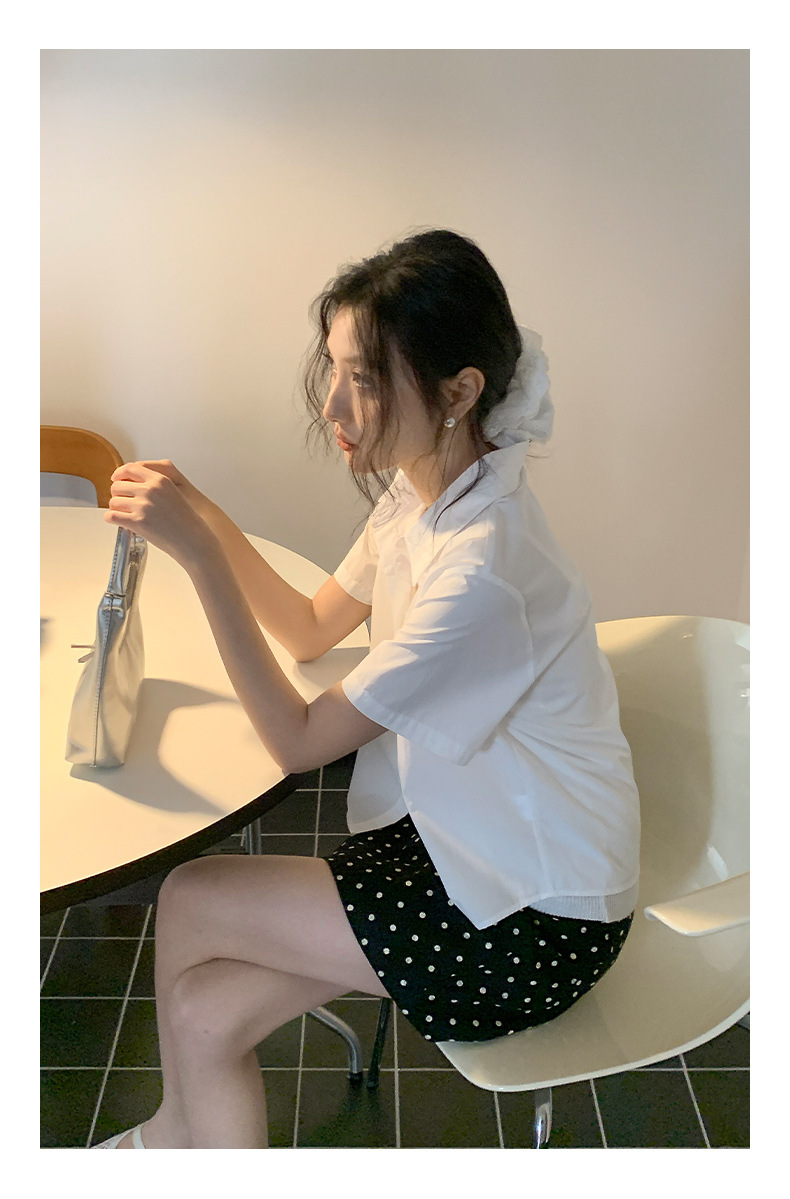 [반품불가, 교환불가] 여성스러운 심플 캐주얼 솔리드 컬러 라펠 셔츠 기질 통근 반팔 탑 0364