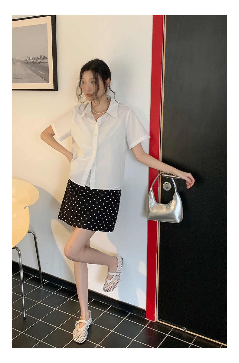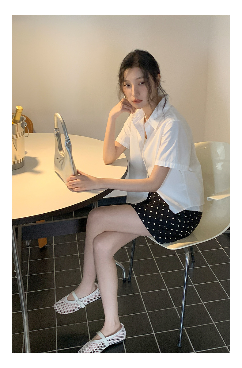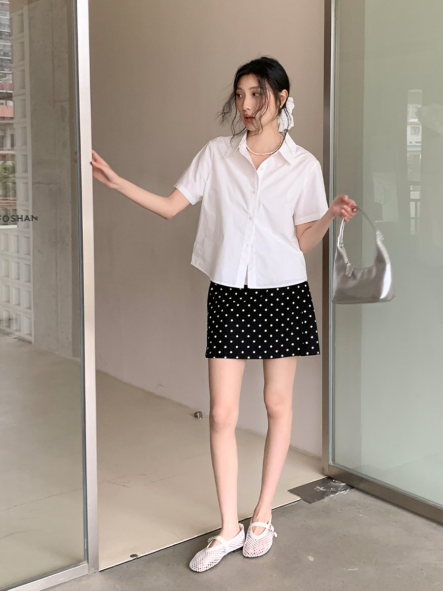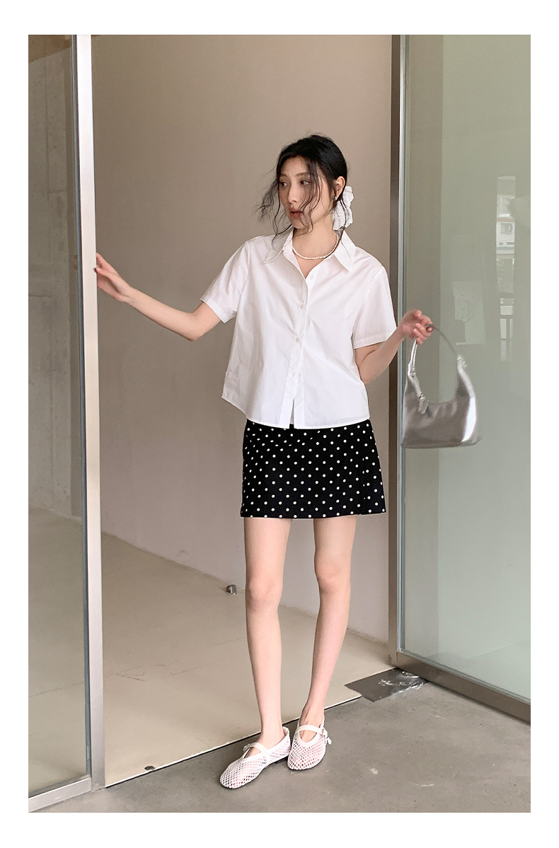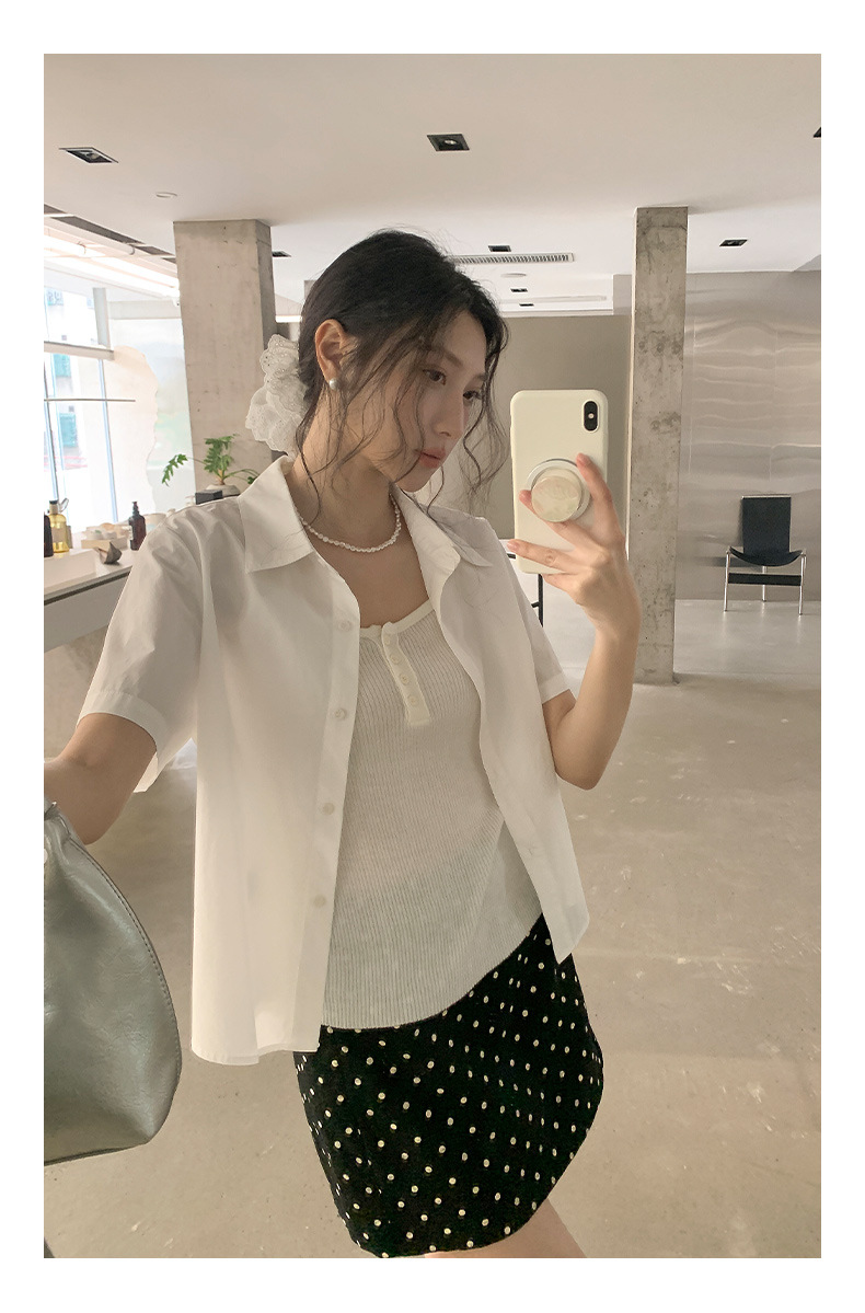 [반품불가, 교환불가] 여성스러운 심플 캐주얼 솔리드 컬러 라펠 셔츠 기질 통근 반팔 탑 0364