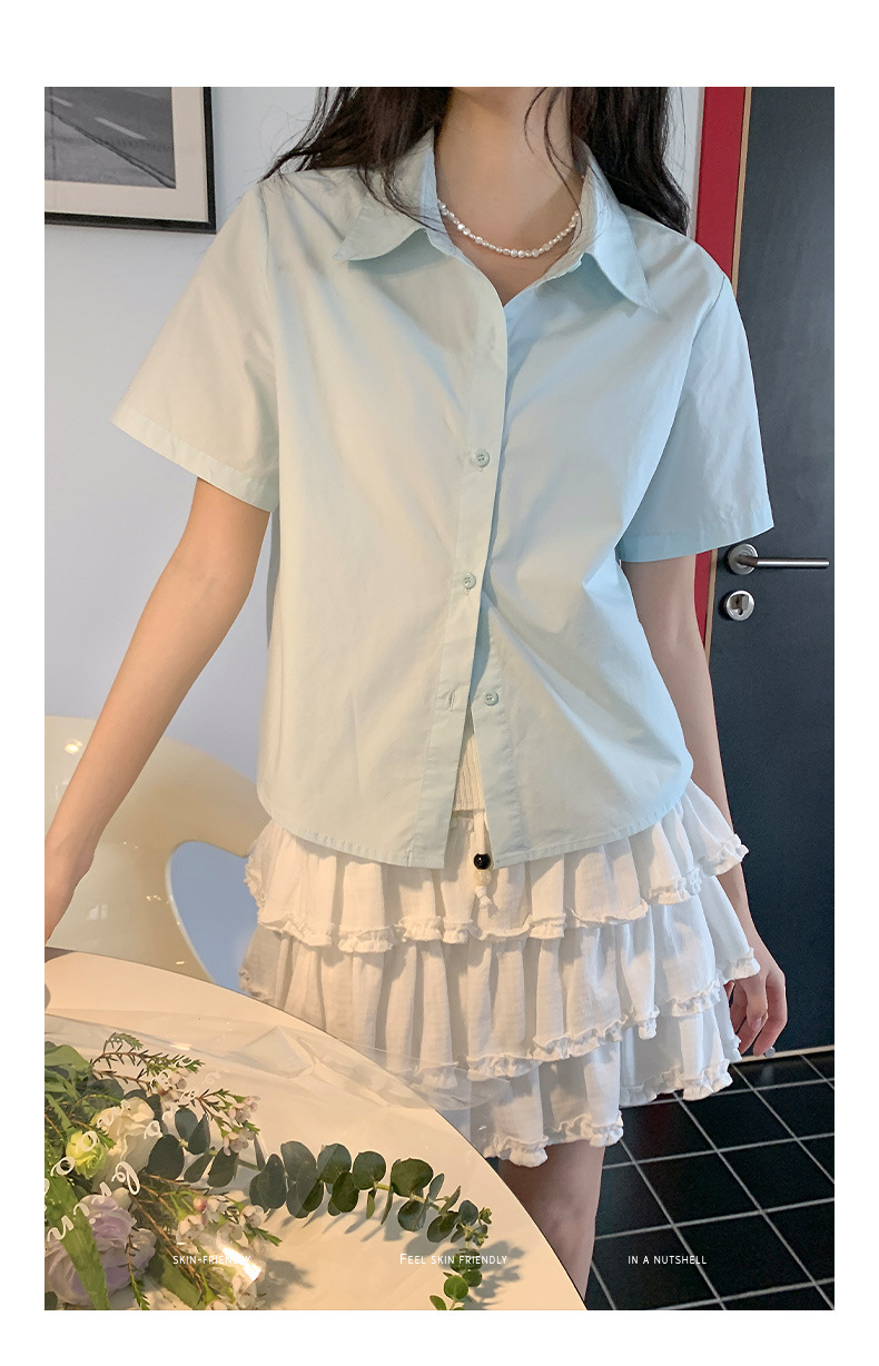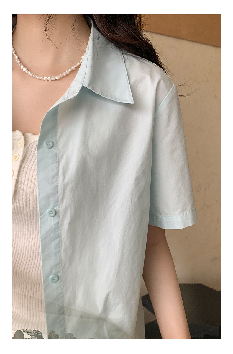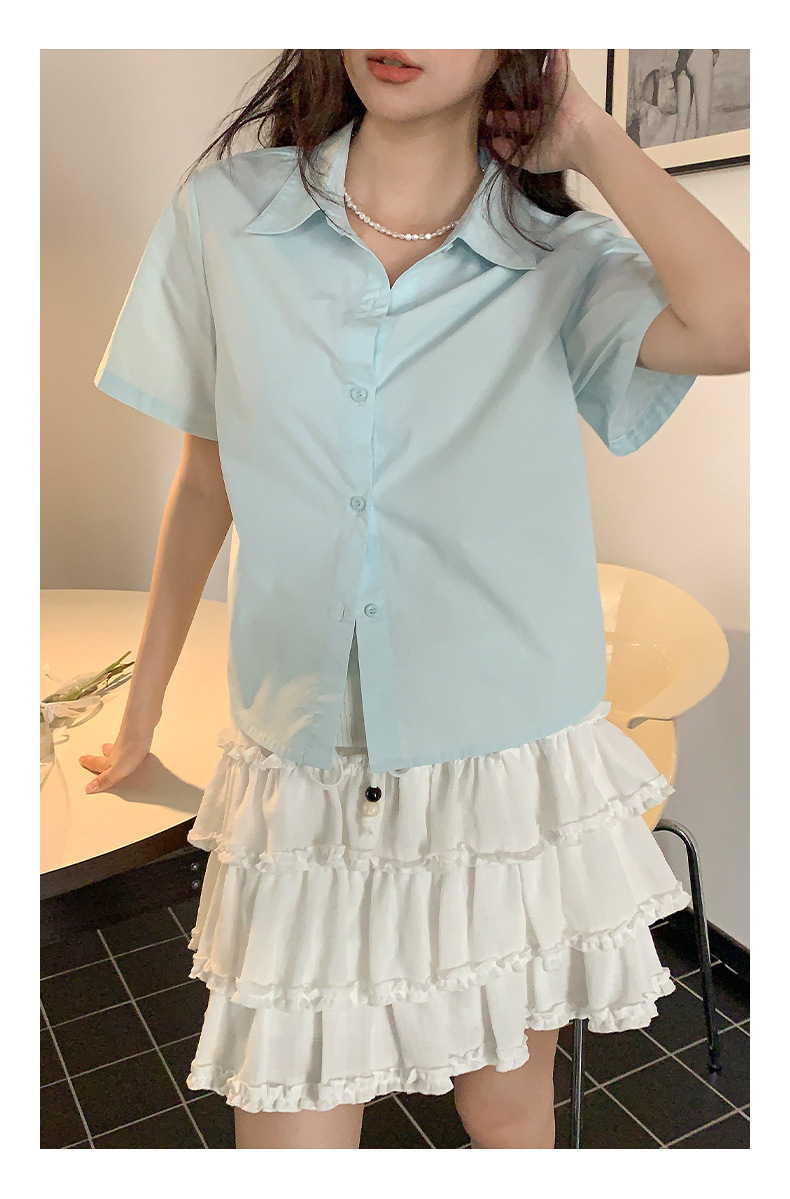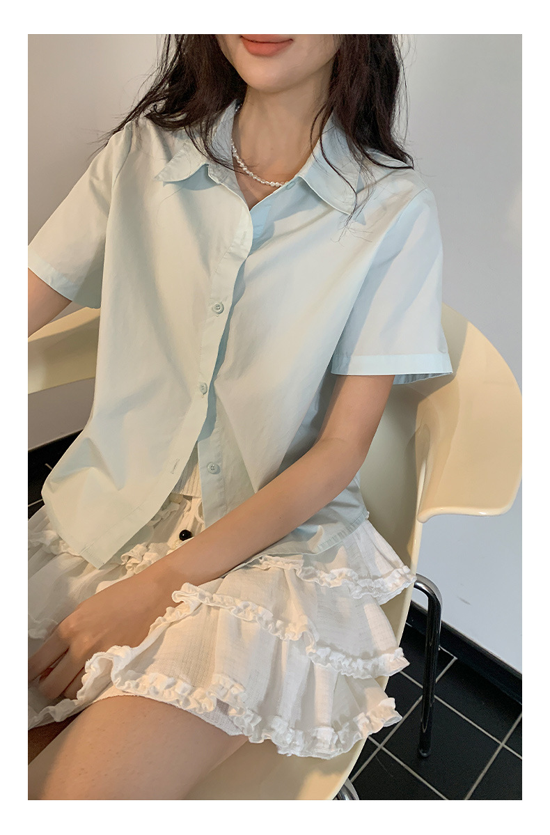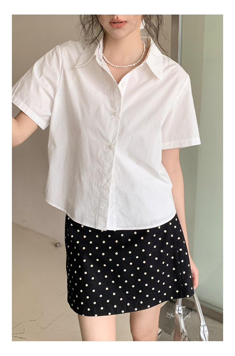 [반품불가, 교환불가] 여성스러운 심플 캐주얼 솔리드 컬러 라펠 셔츠 기질 통근 반팔 탑 0364