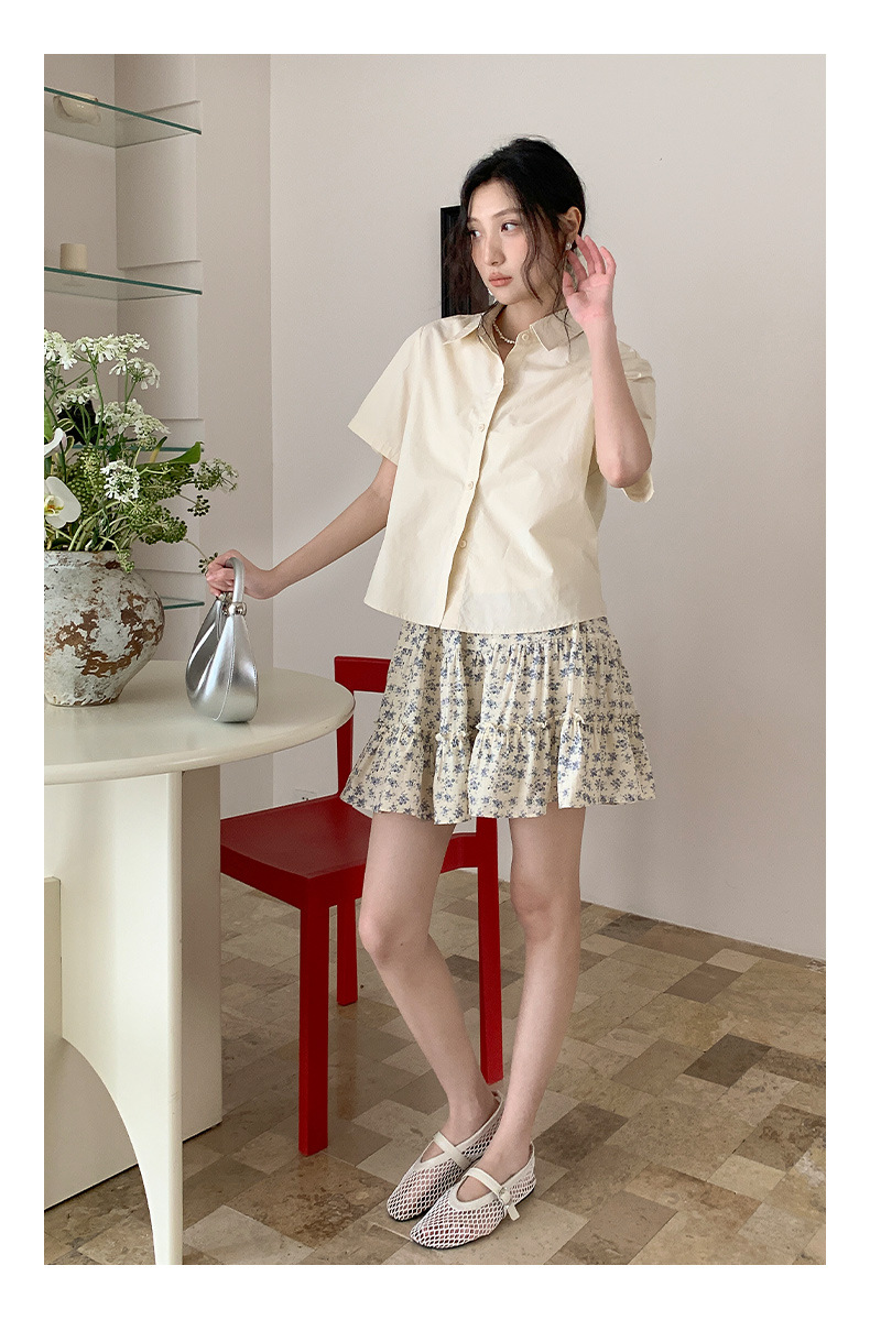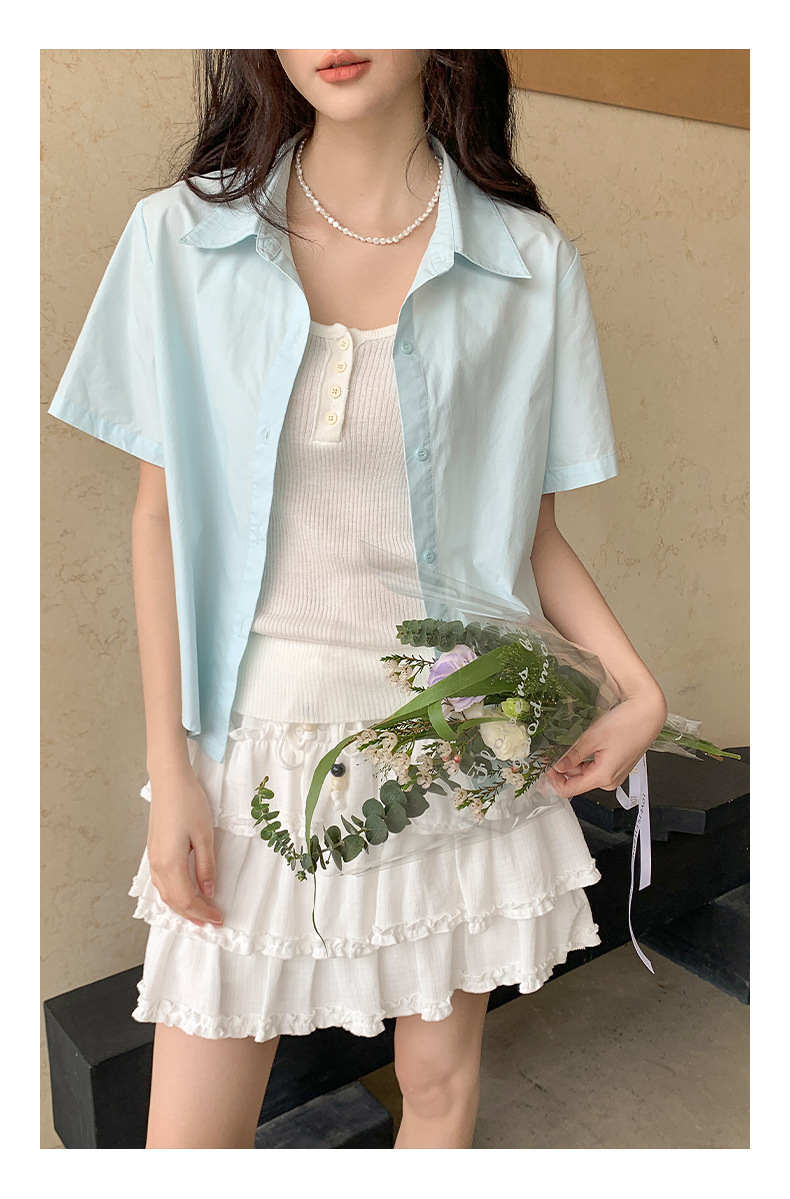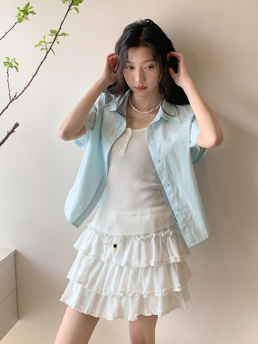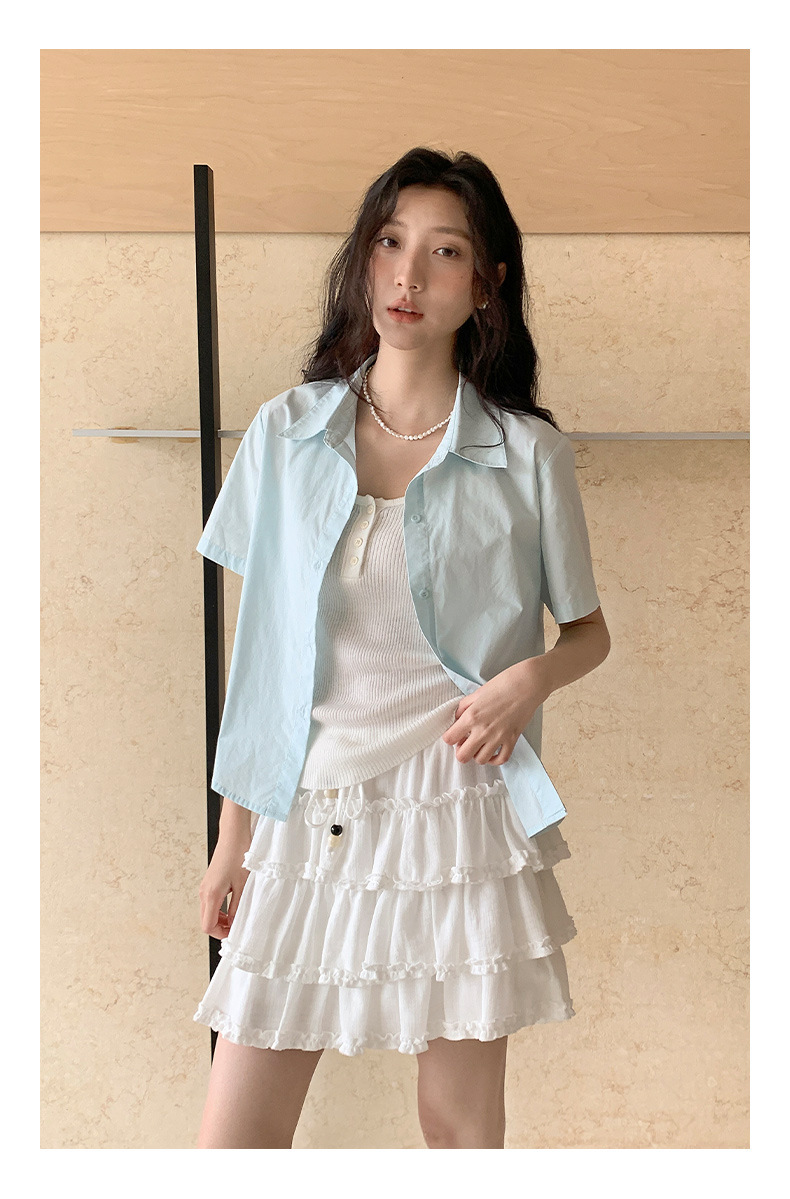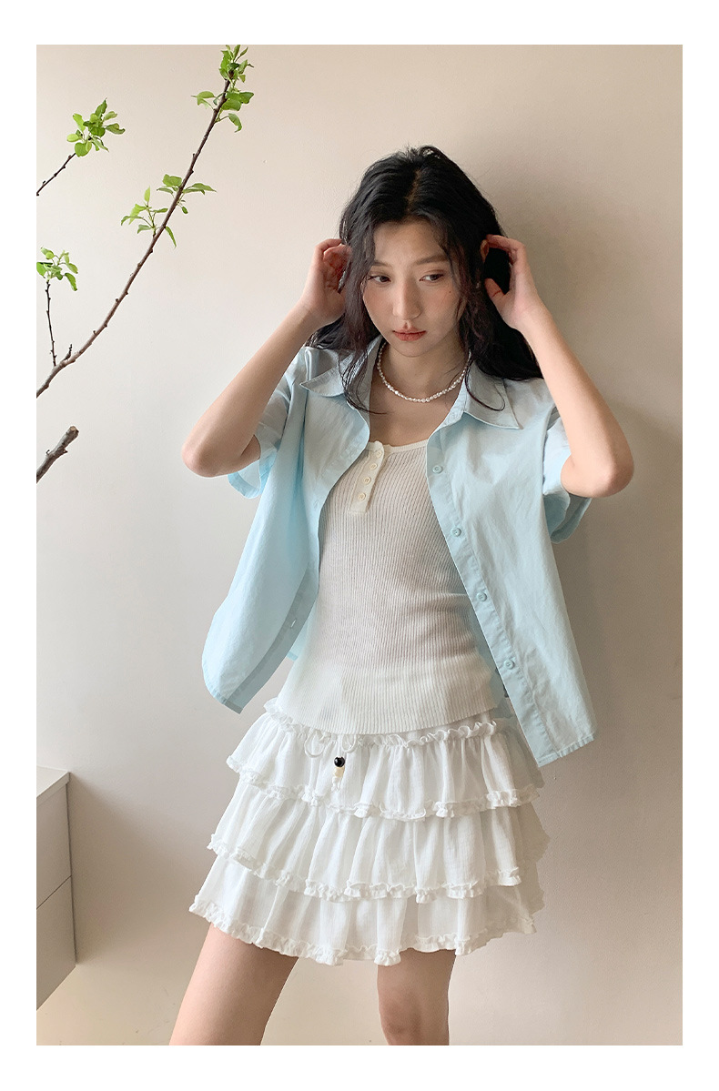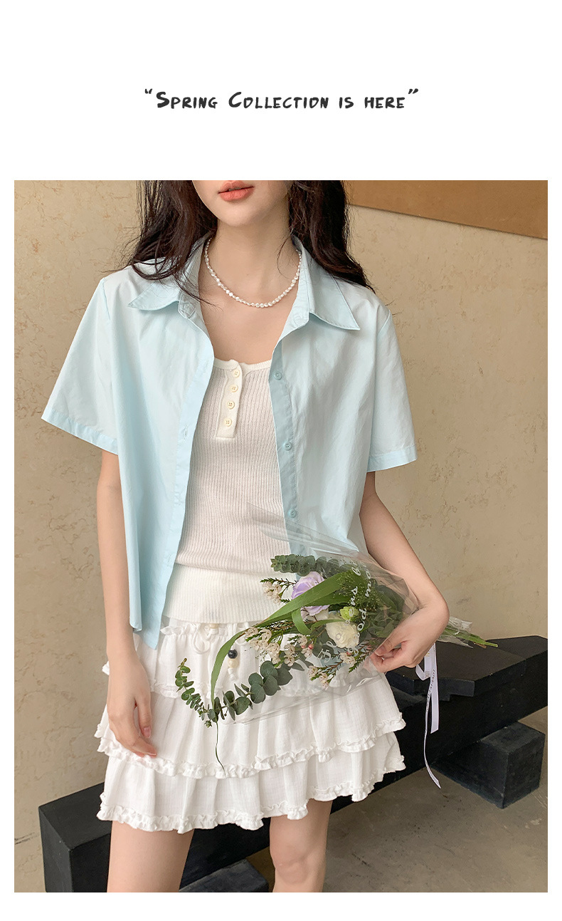 [반품불가, 교환불가] 여성스러운 심플 캐주얼 솔리드 컬러 라펠 셔츠 기질 통근 반팔 탑 0364