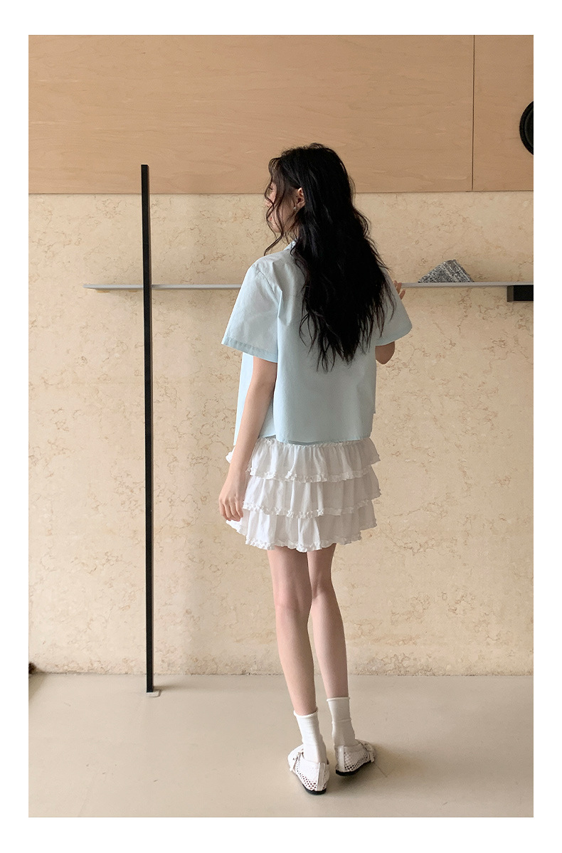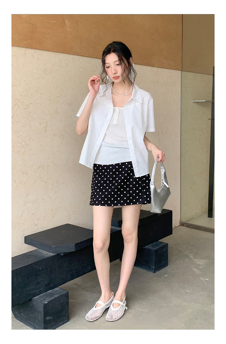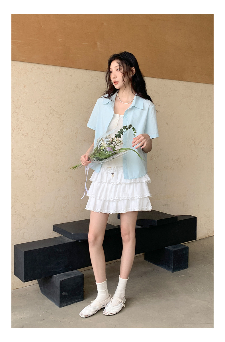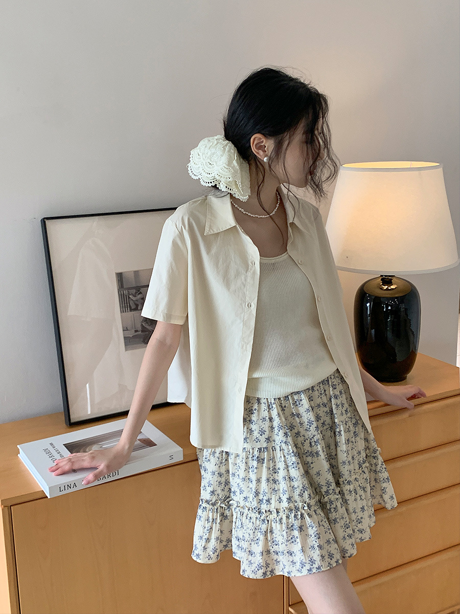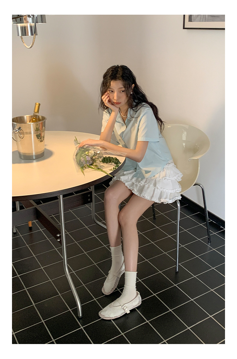 [반품불가, 교환불가] 여성스러운 심플 캐주얼 솔리드 컬러 라펠 셔츠 기질 통근 반팔 탑 0364