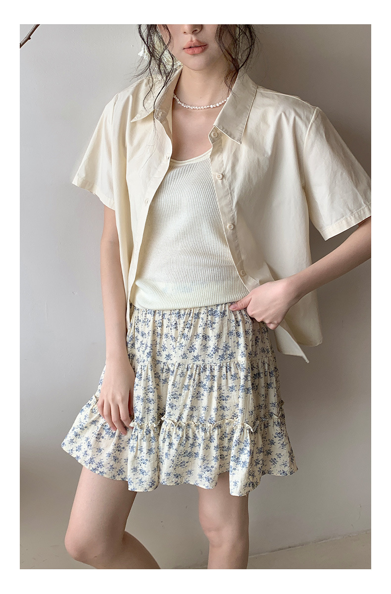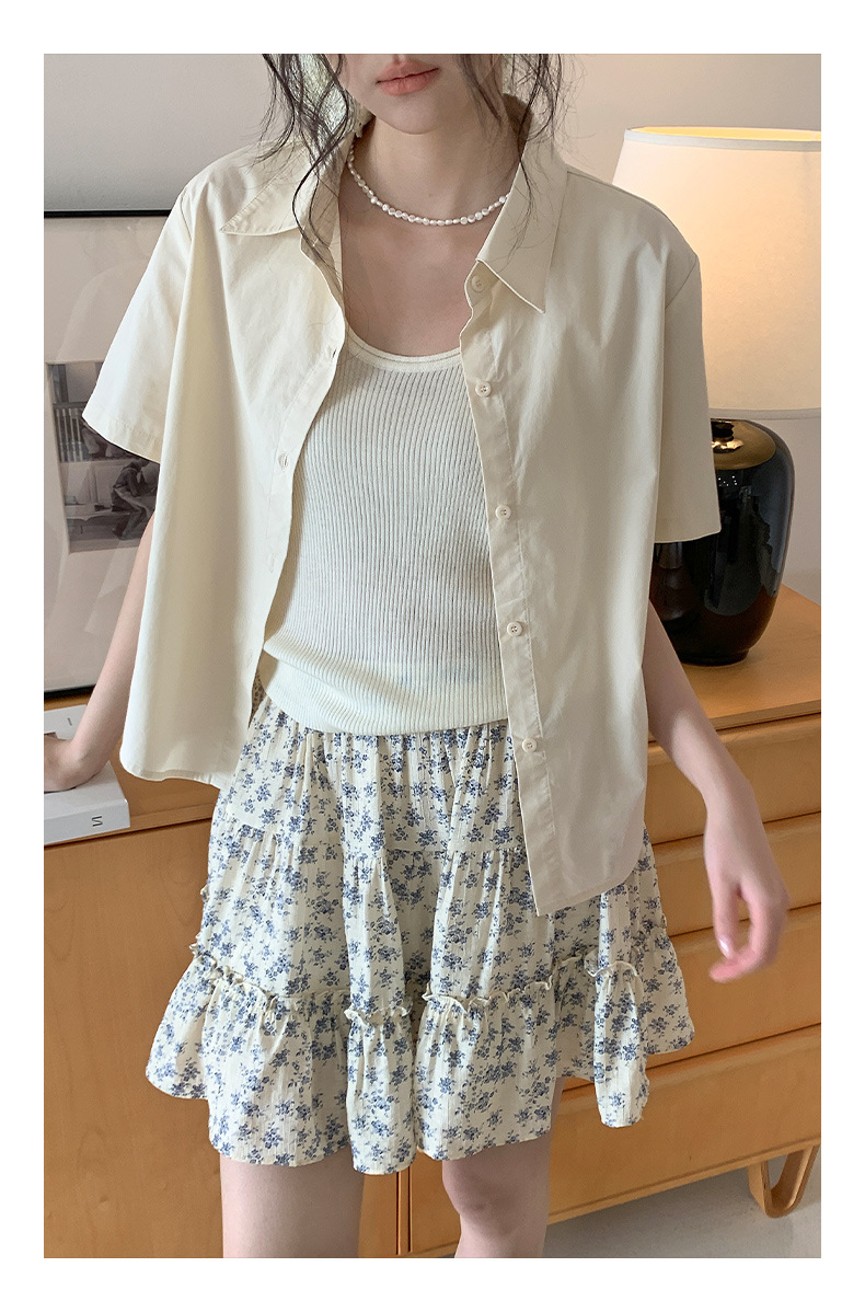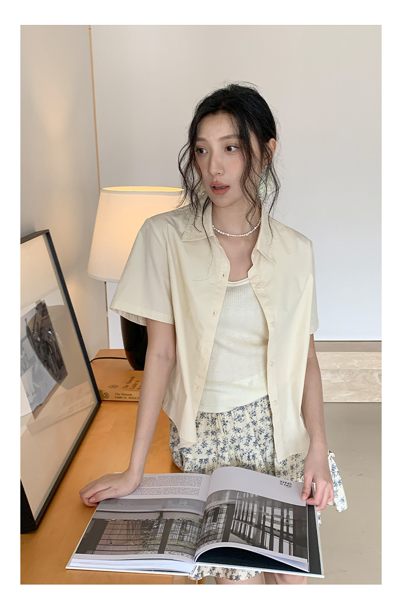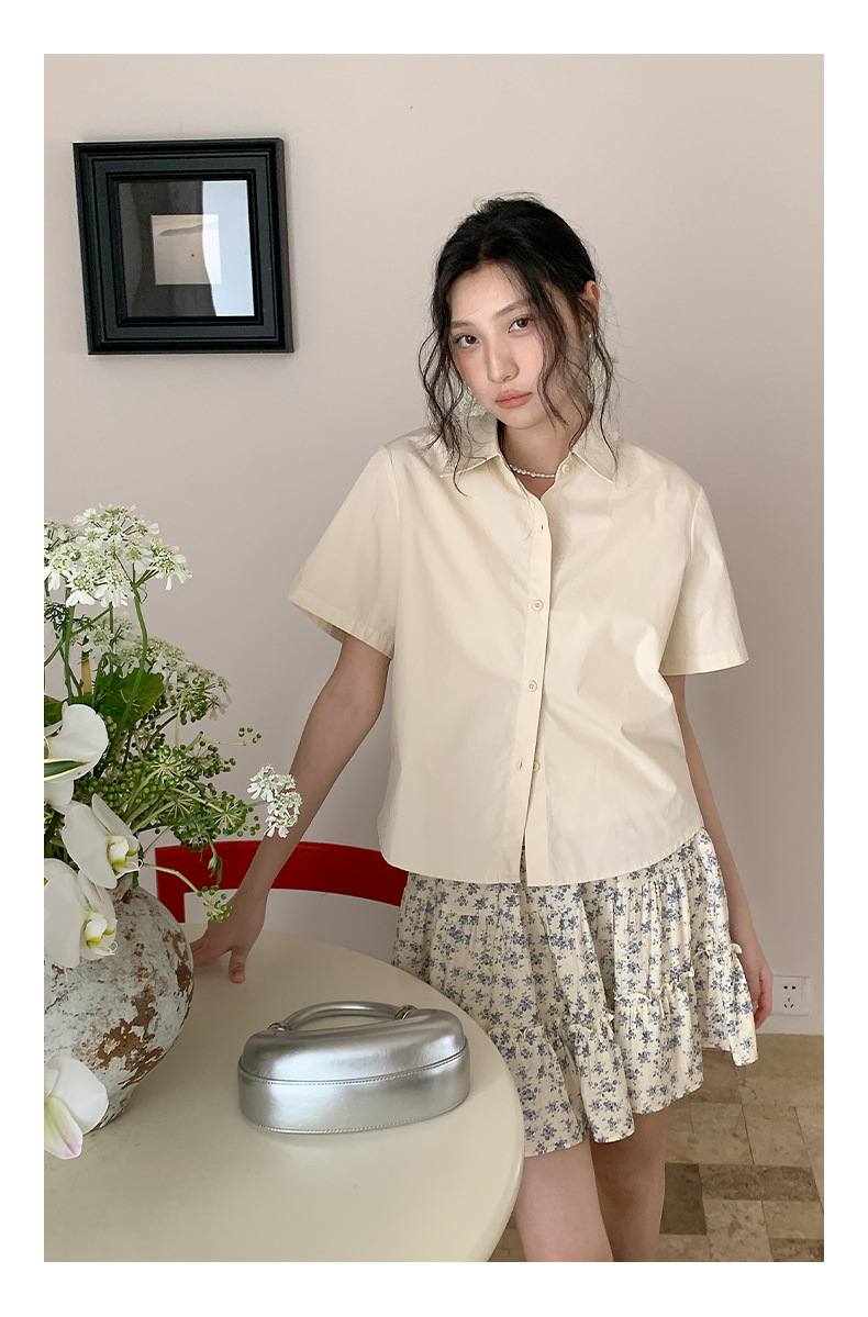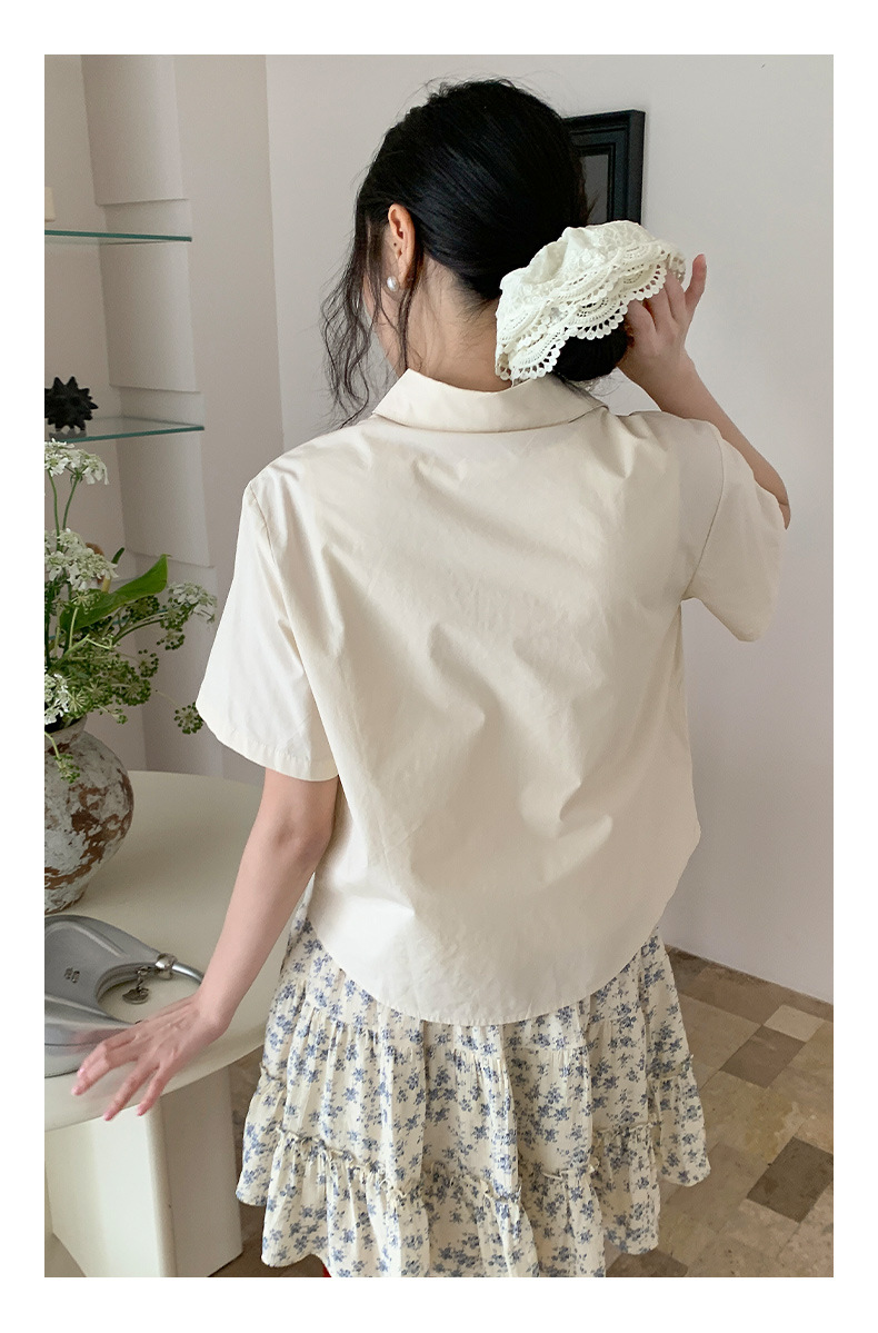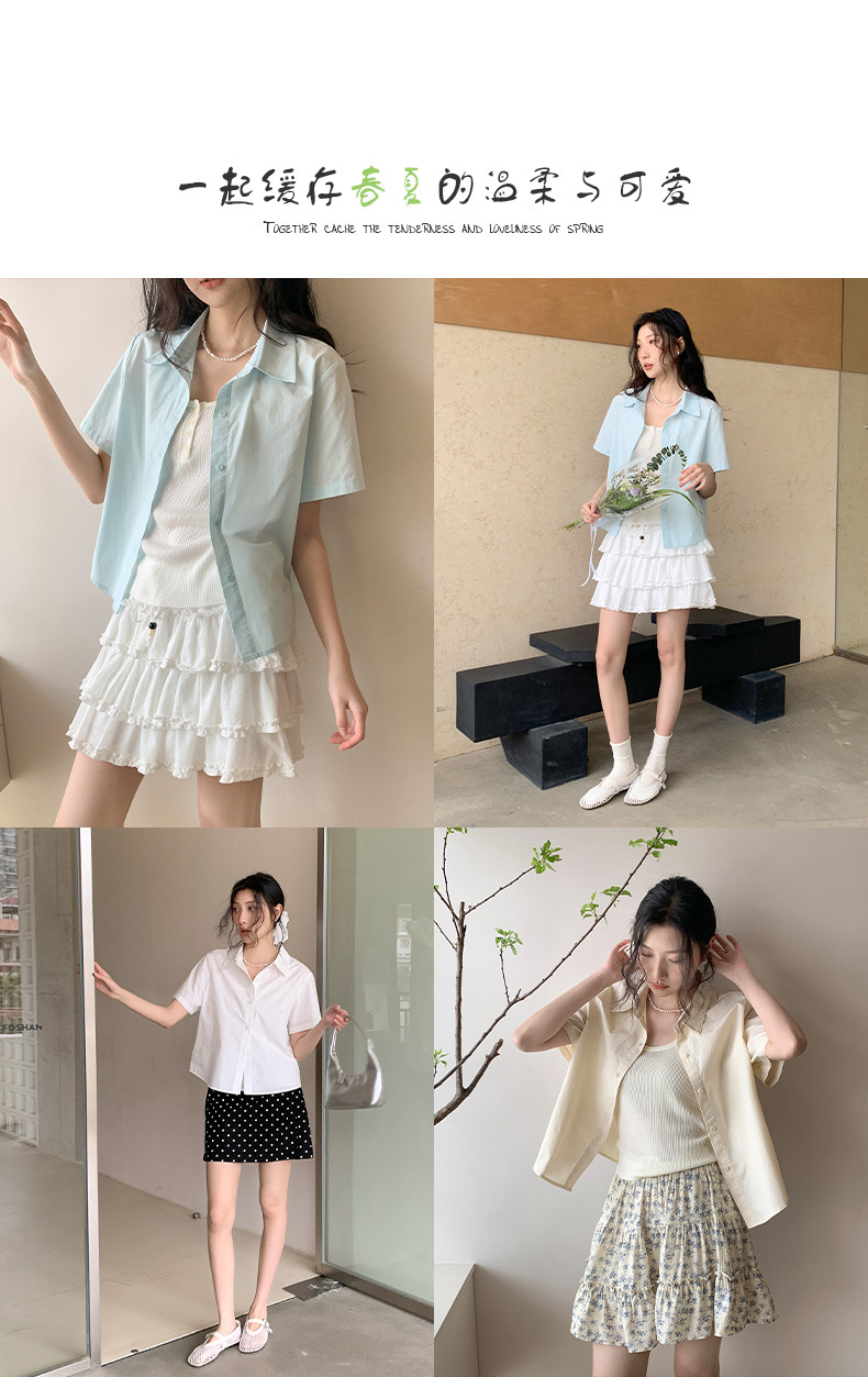 [반품불가, 교환불가] 여성스러운 심플 캐주얼 솔리드 컬러 라펠 셔츠 기질 통근 반팔 탑 0364스토어 가기