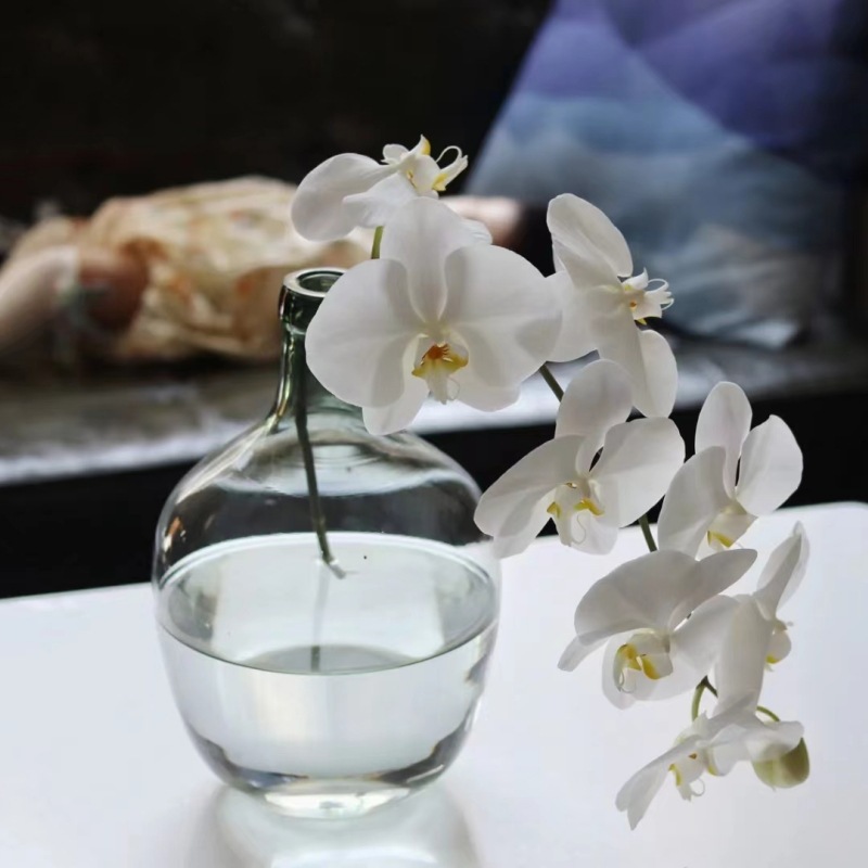 • 파란색과 보라색 10개 호접란 2개 + 브러시드 화이트 관음병 인터넷 연예인 핫 스타일