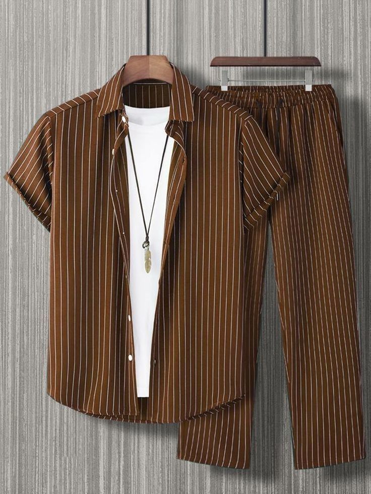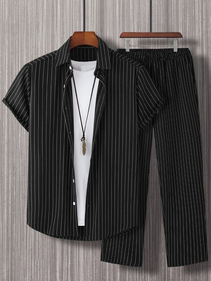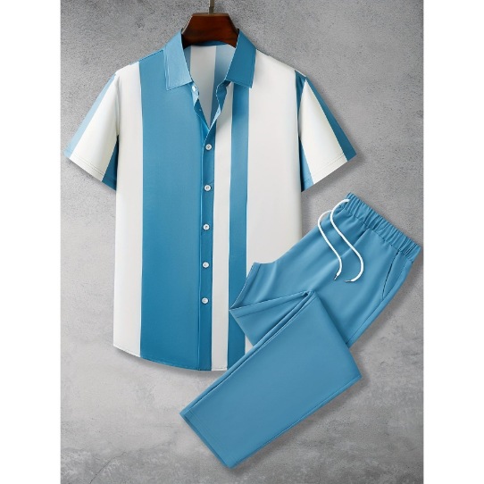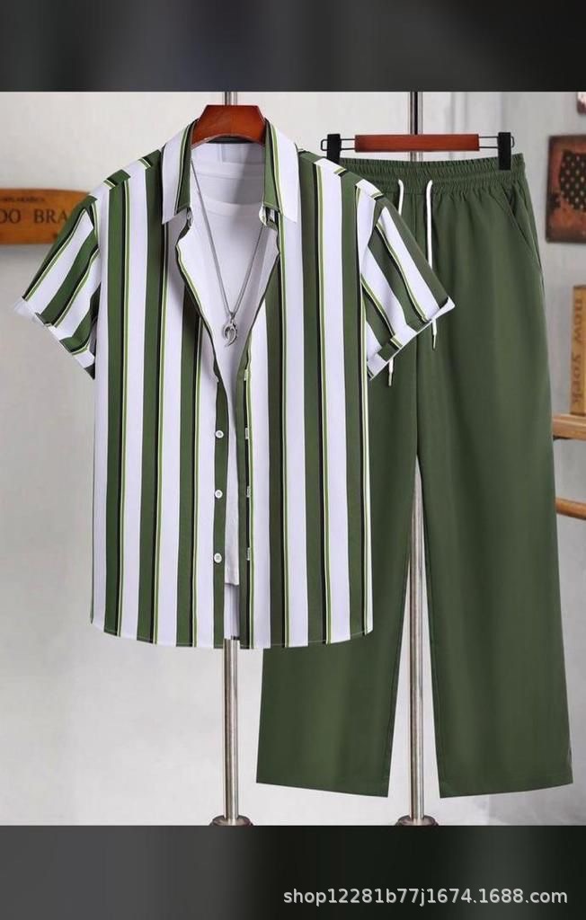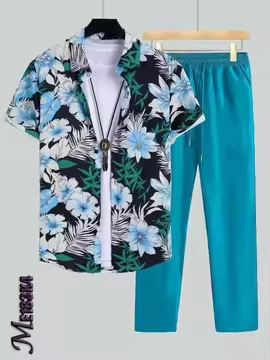 국경 간 무역 남성 캐주얼 패션 반팔 셔츠 바지 세트 하와이 셔츠 3D 디지털 인쇄스토어 가기