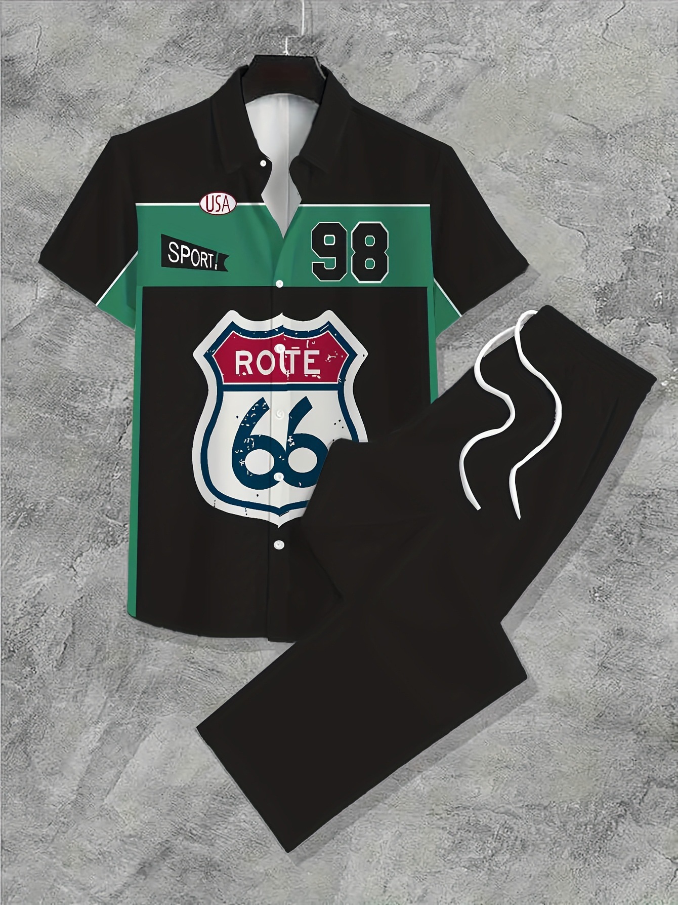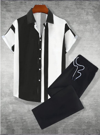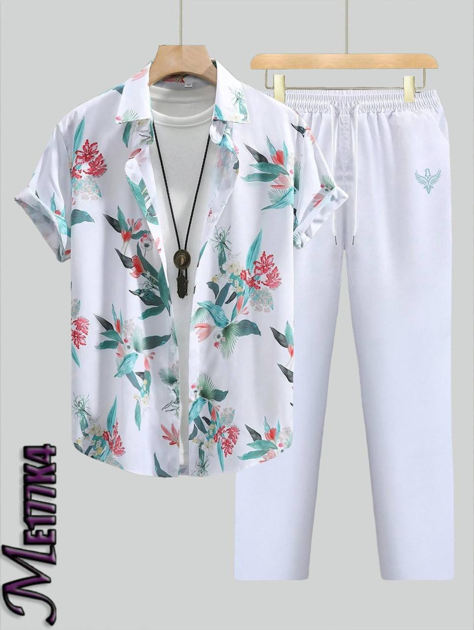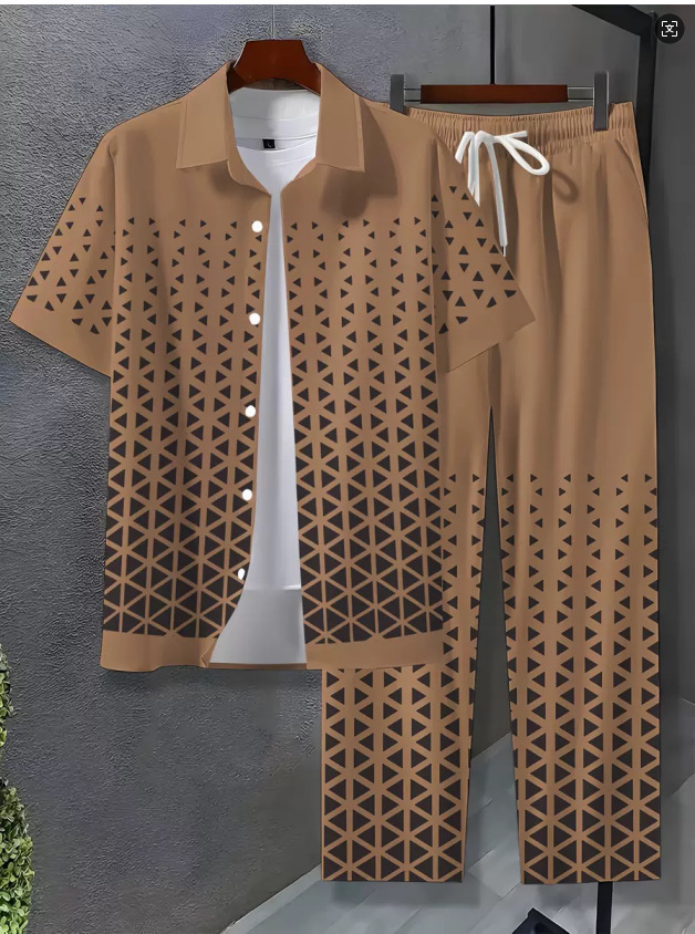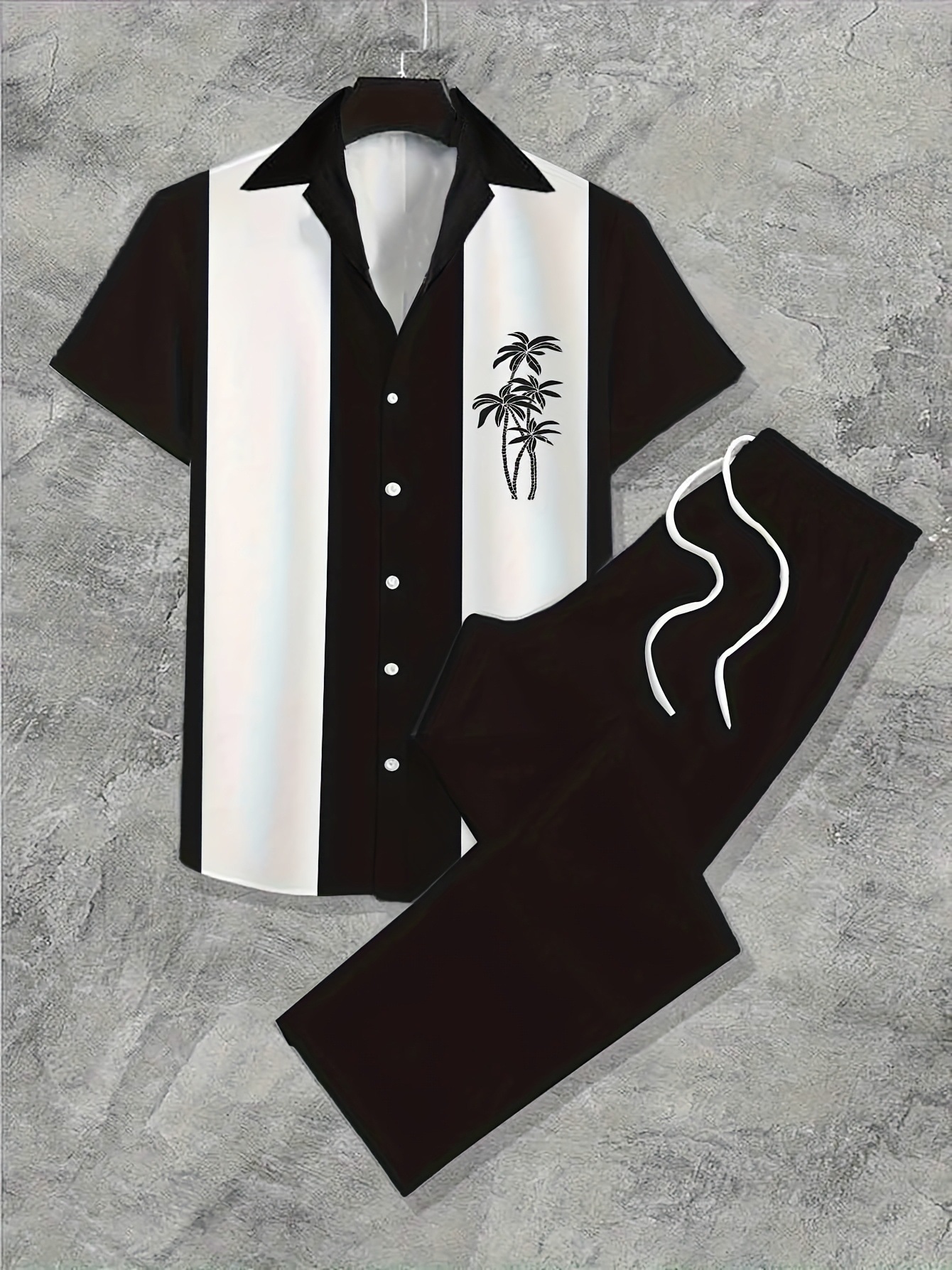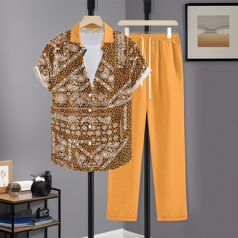 국경 간 무역 남성 캐주얼 패션 반팔 셔츠 바지 세트 하와이 셔츠 3D 디지털 인쇄