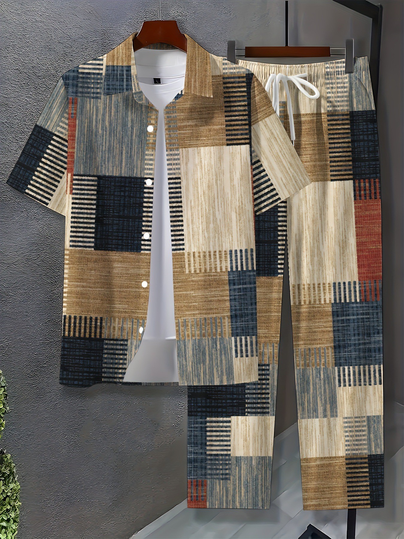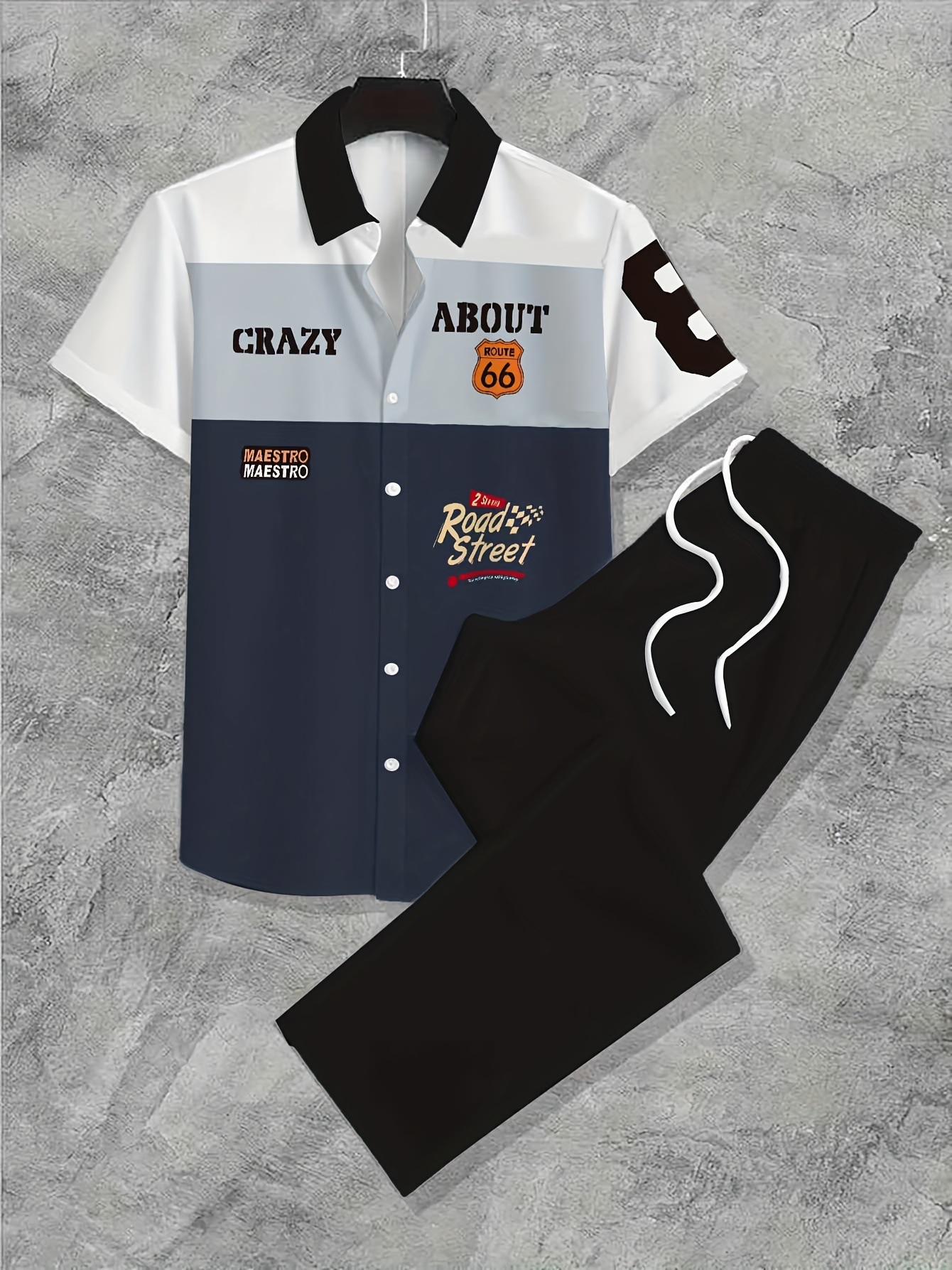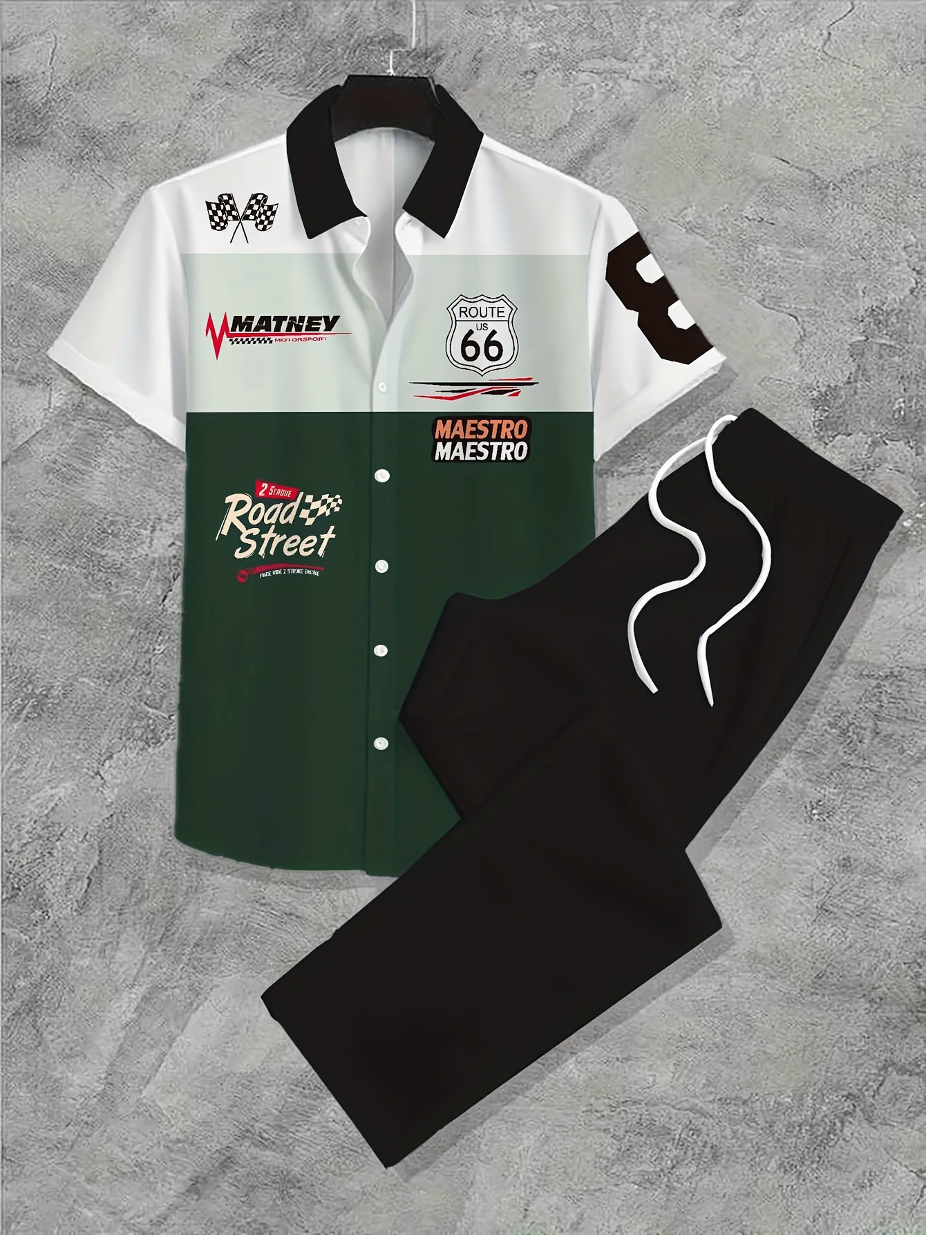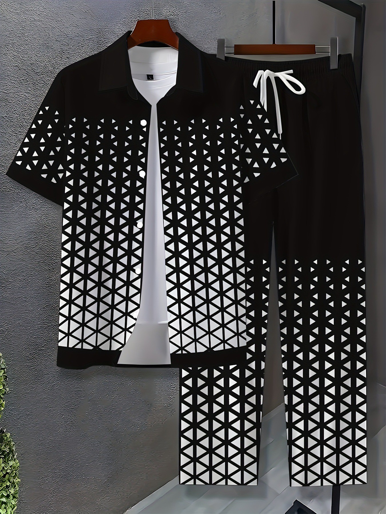 국경 간 무역 남성 캐주얼 패션 반팔 셔츠 바지 세트 하와이 셔츠 3D 디지털 인쇄