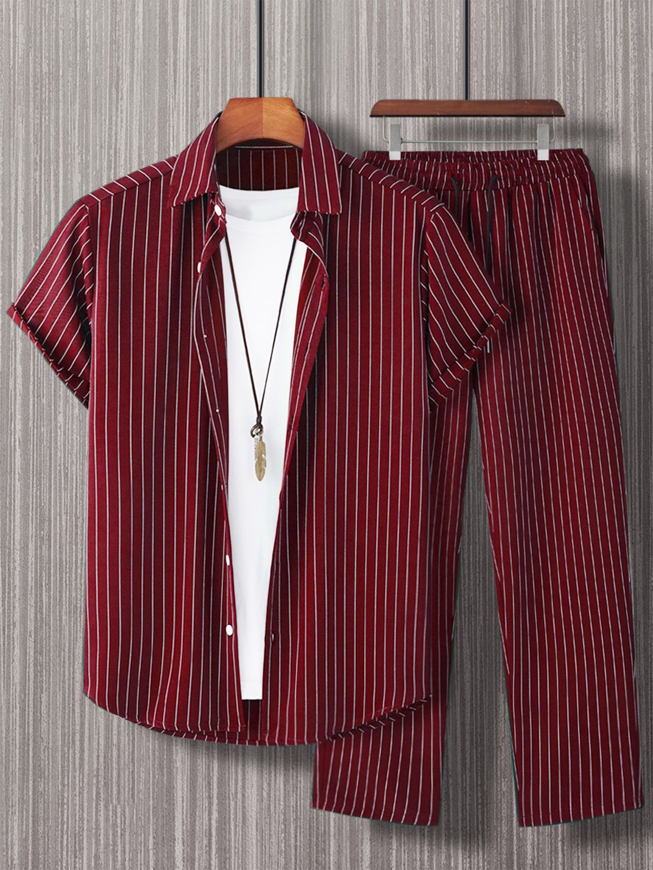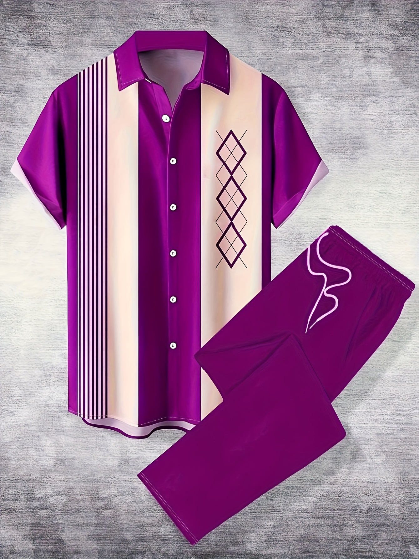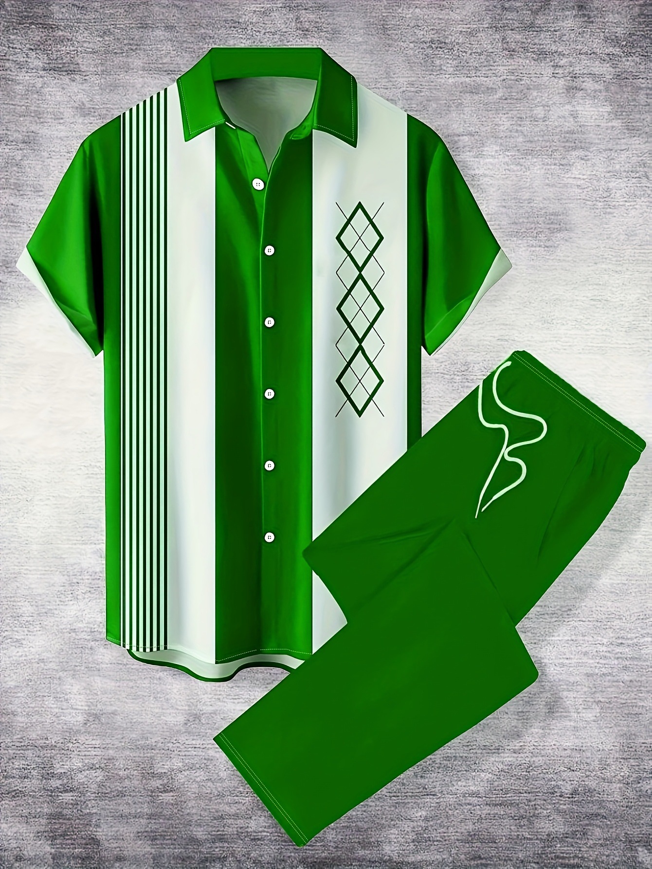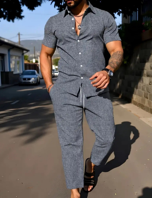 국경 간 무역 남성 캐주얼 패션 반팔 셔츠 바지 세트 하와이 셔츠 3D 디지털 인쇄
