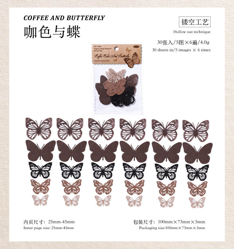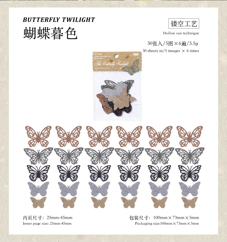 모 모 화이트 크래프트 종이 빈 소재 가방 나비 픽업 컬렉션 시리즈 나비 테마베이스 빈티지 장식
