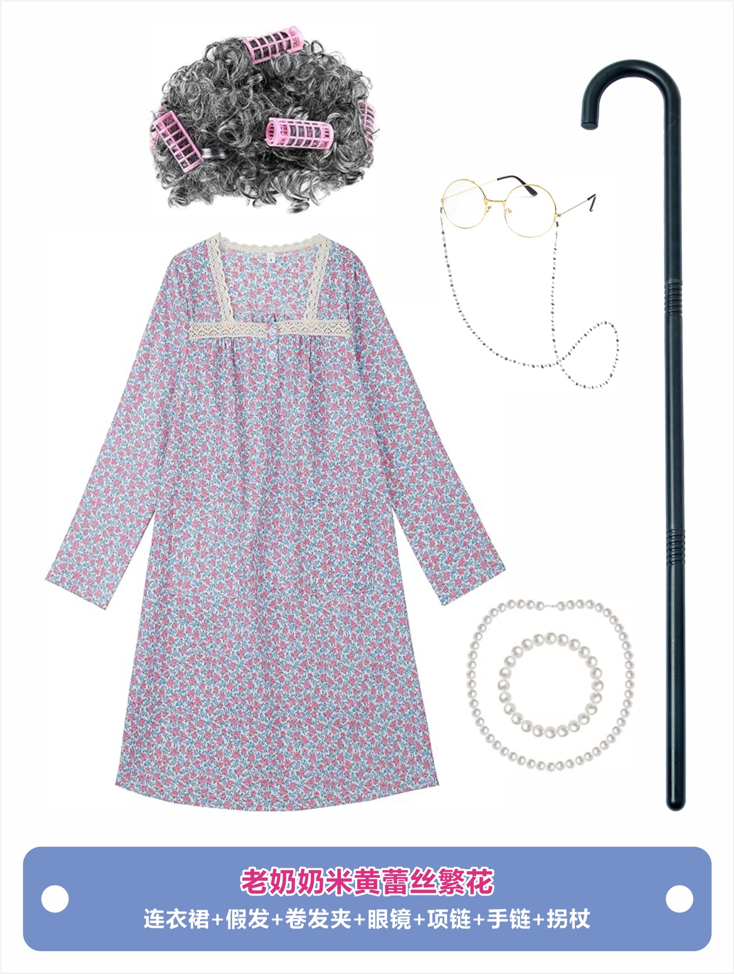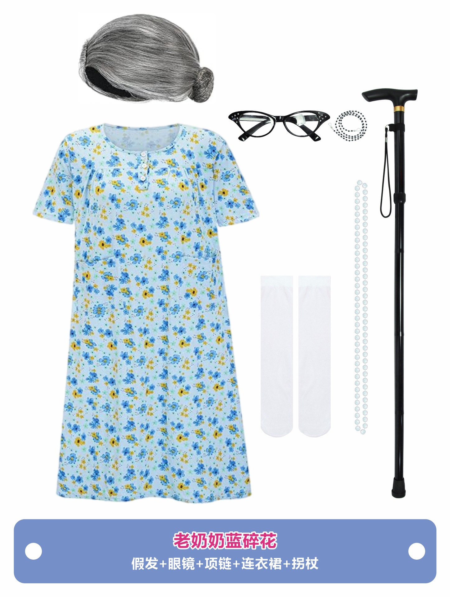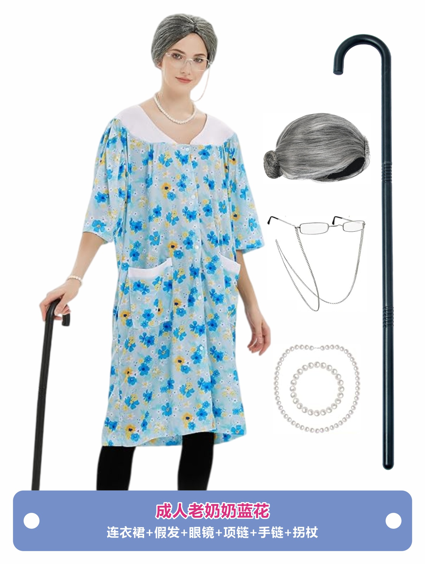 • (재고가 없으며 교정이 필요합니다.) 할머니의 파란색 꽃무늬 드레스