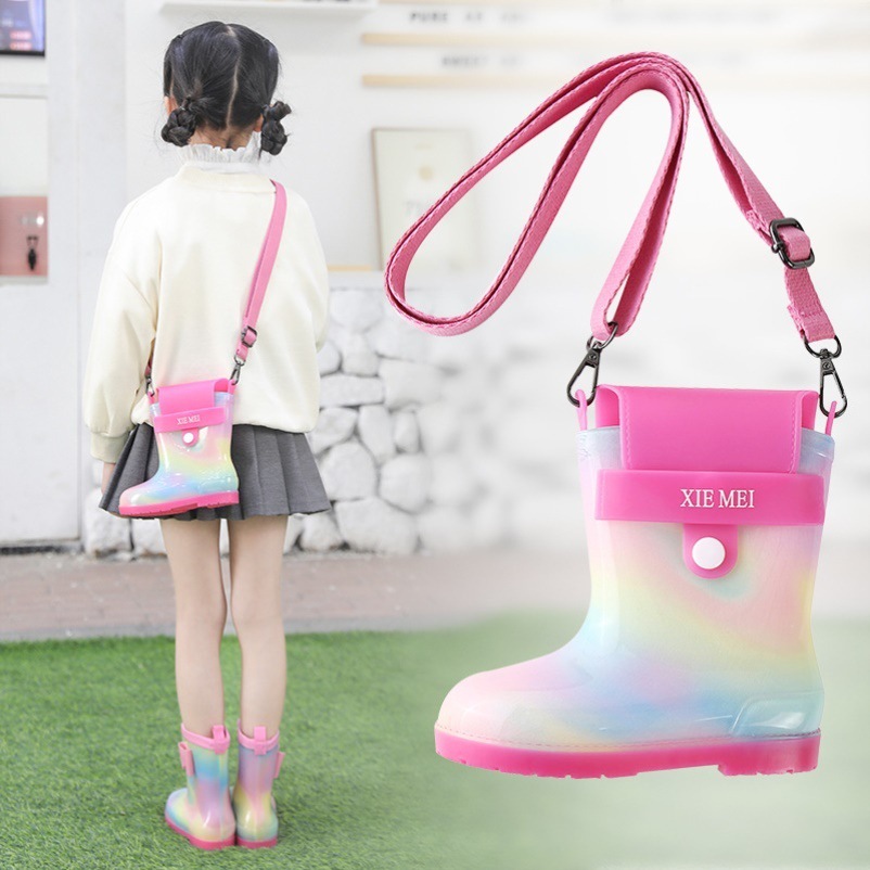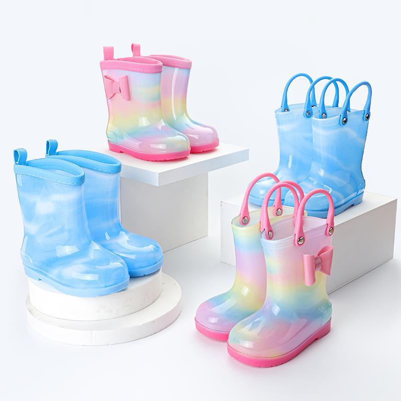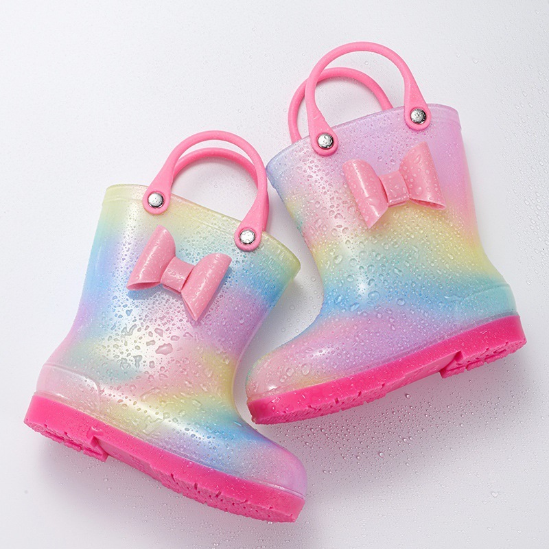 어린이 비 신발 소녀 아기 학생 어린이 무지개 물 신발 방수 여성 고무 신발 비 슬립 장화