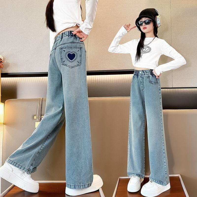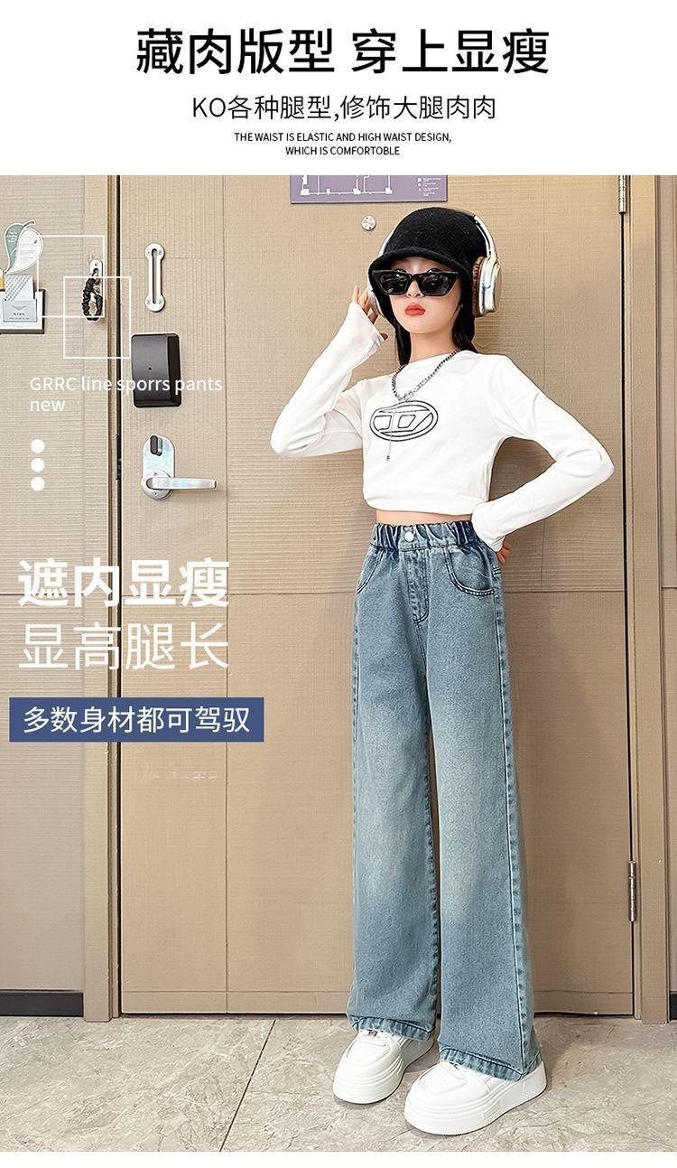 소녀 청바지 여름 얇은 세련 된 느슨한 다리 바지 학생 캐주얼 와이드 다리 바지 유행 바지스토어 가기
