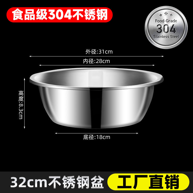 스테인레스 스틸 분지 엑스트라 두꺼운 뒷면 대형 분지 식물성 세척 분지 상업용 대형 목욕 세탁 추가 두꺼운 분지