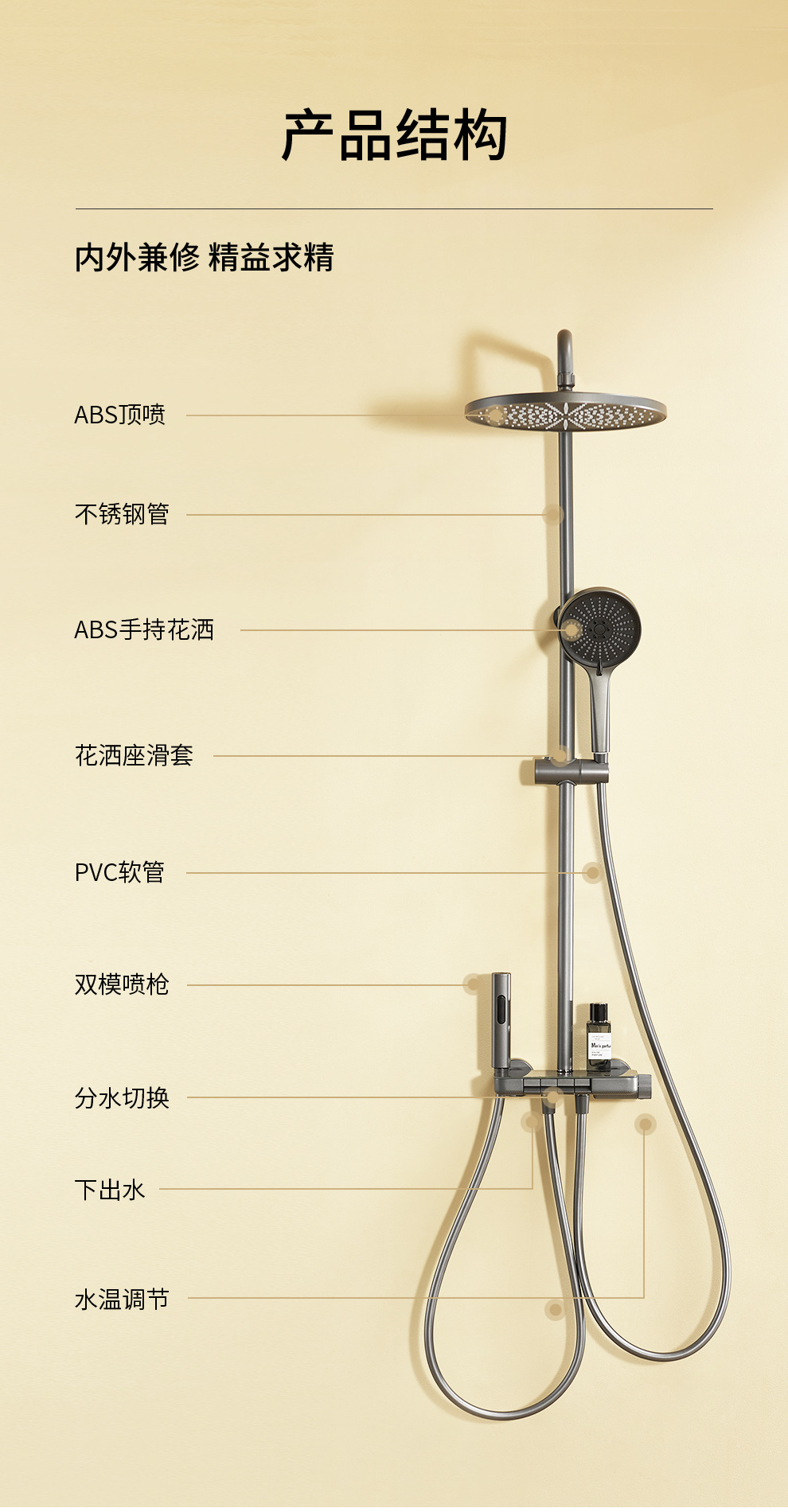 Huayi 욕실 샤워 세트 건 그레이 홈 욕실 목욕 샤워기 욕실 레인 부스터 스프레이 노즐스토어 가기
