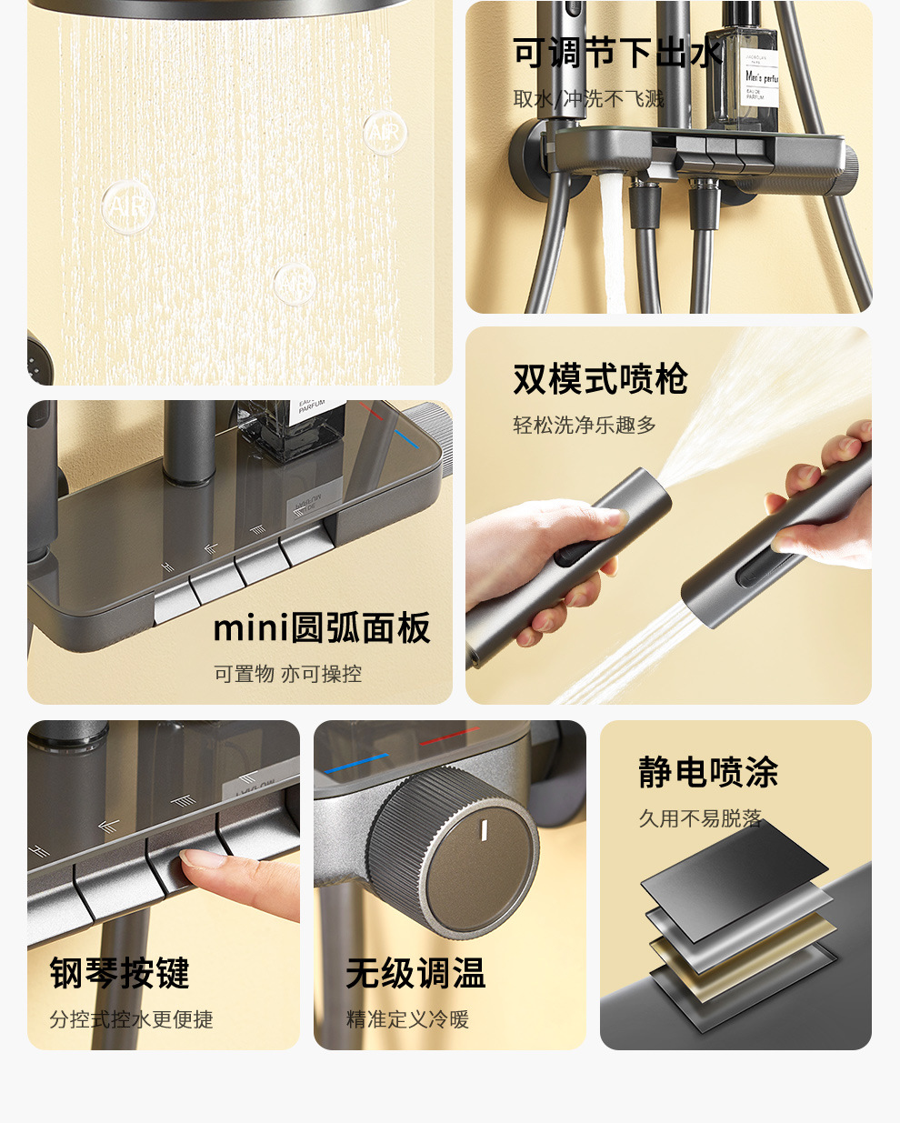 Huayi 욕실 샤워 세트 건 그레이 홈 욕실 목욕 샤워기 욕실 레인 부스터 스프레이 노즐