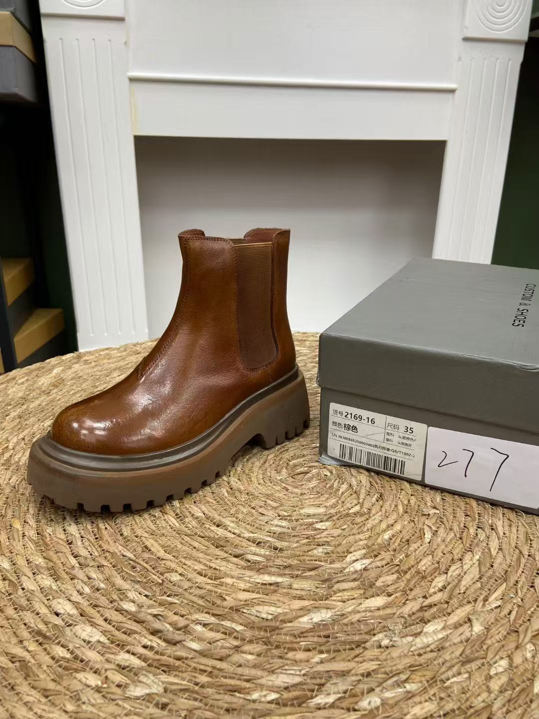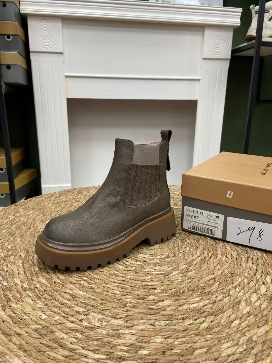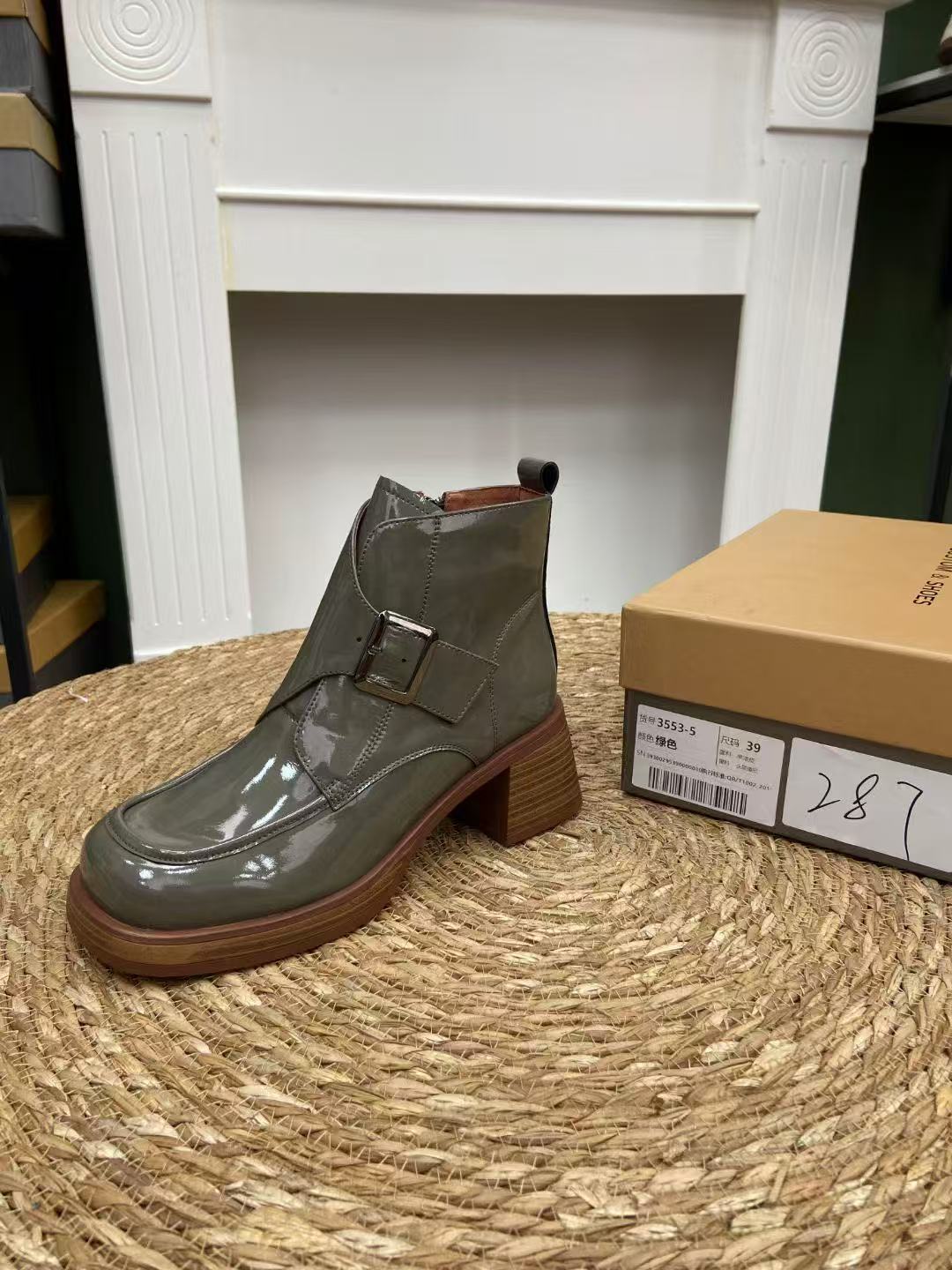 부분 법칙 ~ 공장 정리 가죽 새로운 두꺼운 하단 짧은 부츠 영국 스타일 작은 가죽 신발 여성을위한 올 매치 로퍼스토어 가기