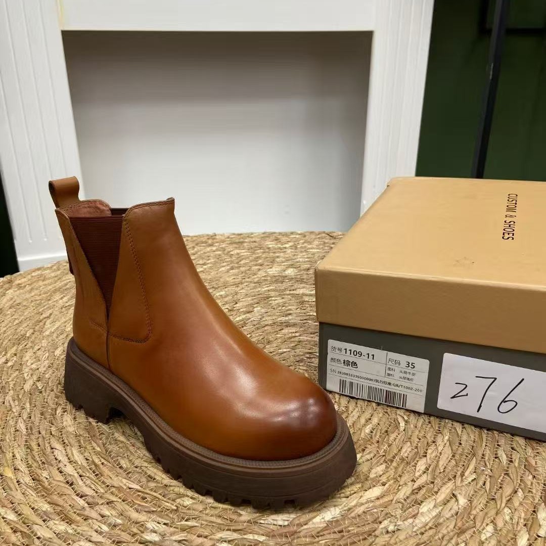 부분 법칙 ~ 공장 정리 가죽 새로운 두꺼운 하단 짧은 부츠 영국 스타일 작은 가죽 신발 여성을위한 올 매치 로퍼