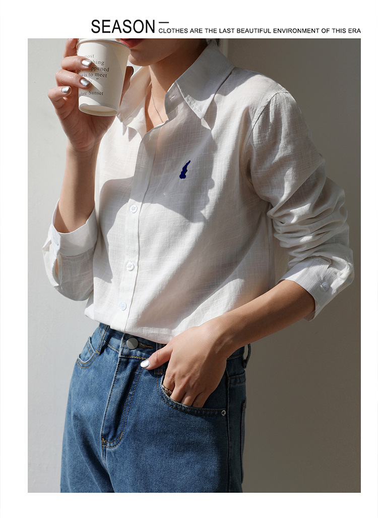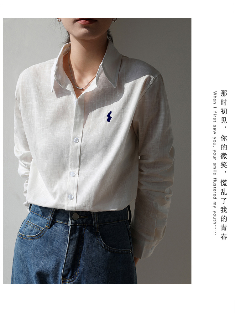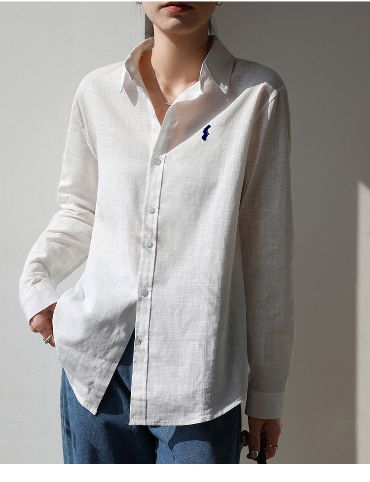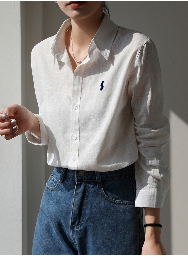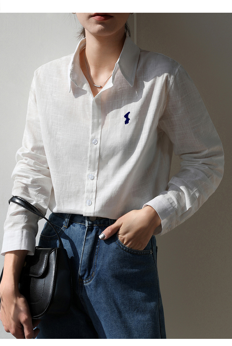 실제 촬영 2025 봄과 여름 자수 말 흰면과 린넨 셔츠 여성용 캐주얼 느슨한 긴 소매 린넨 셔츠스토어 가기