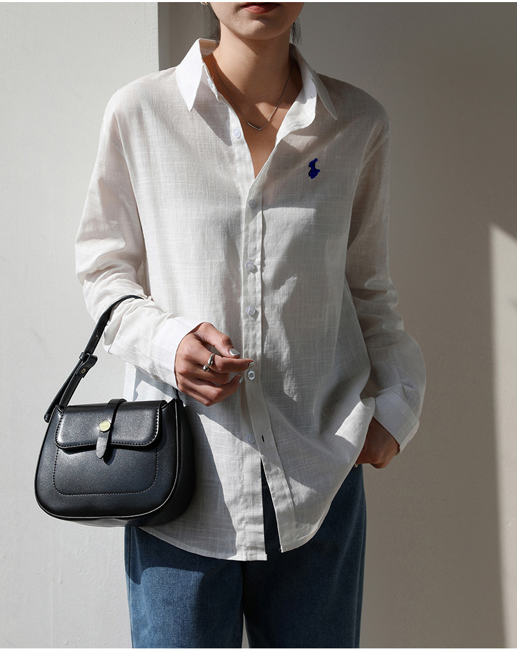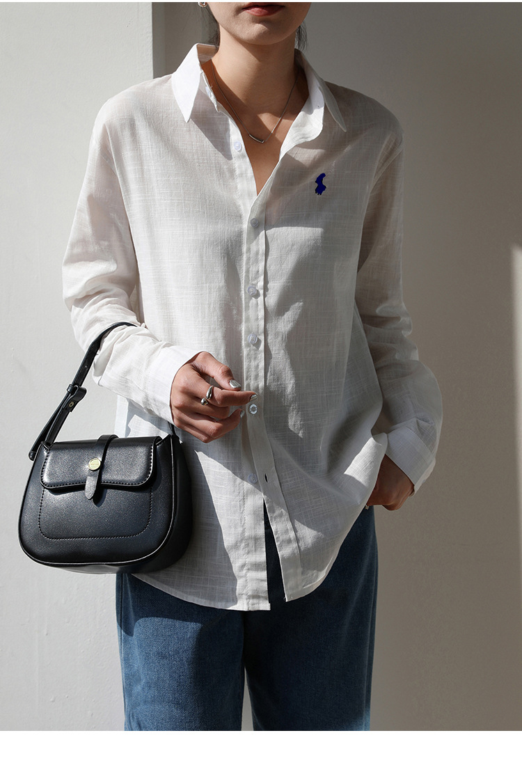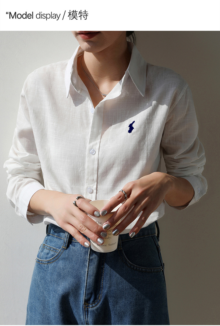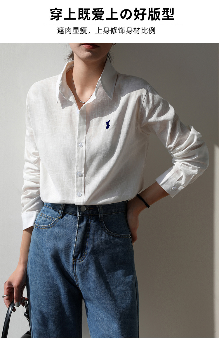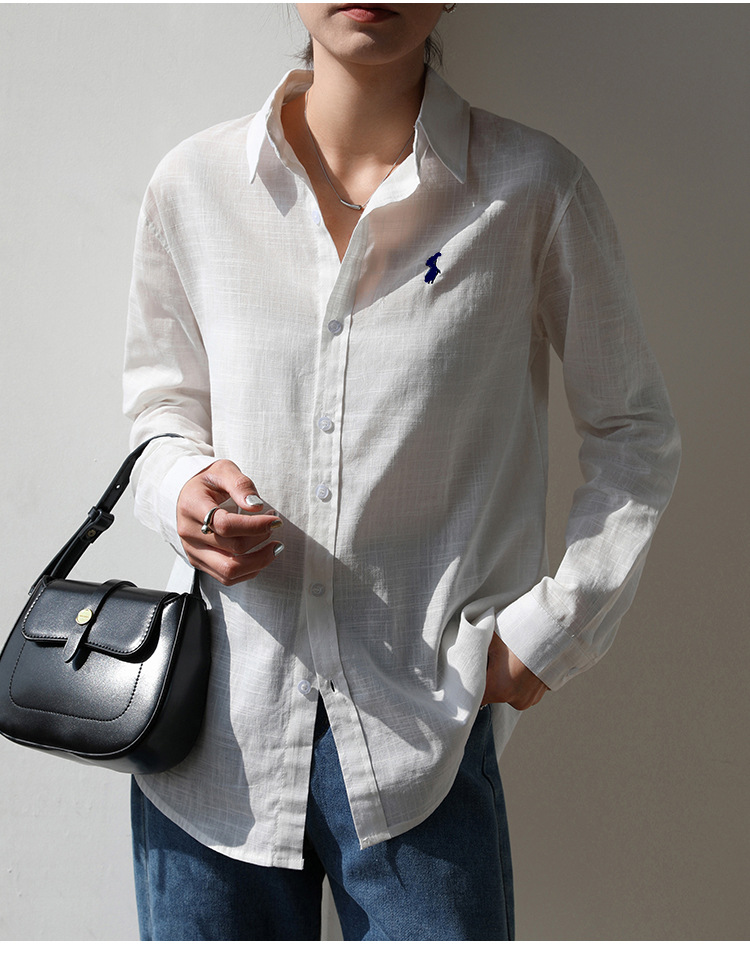 실제 촬영 2025 봄과 여름 자수 말 흰면과 린넨 셔츠 여성용 캐주얼 느슨한 긴 소매 린넨 셔츠스토어 가기