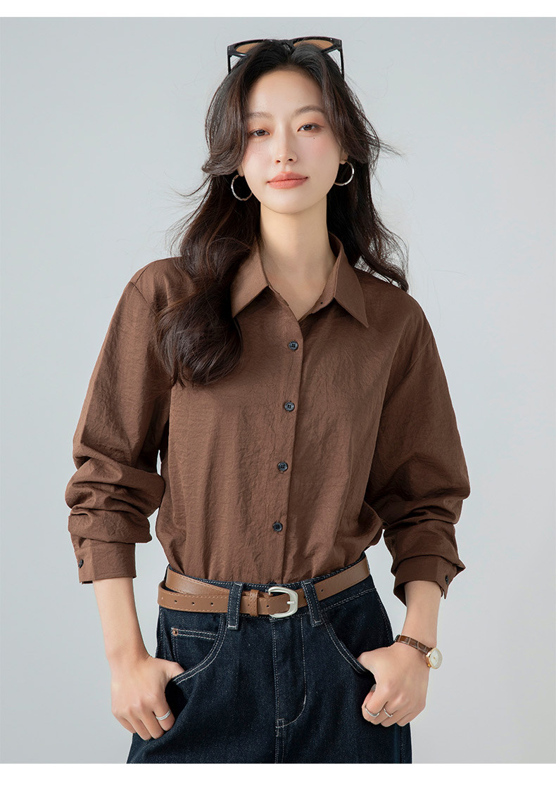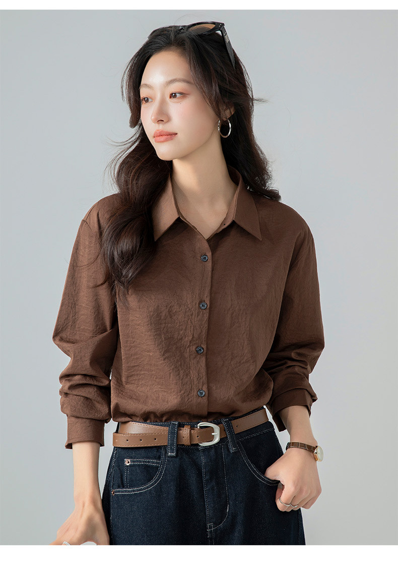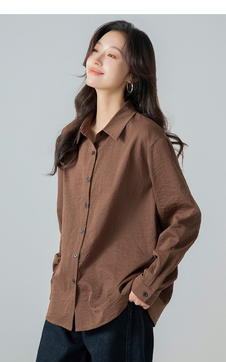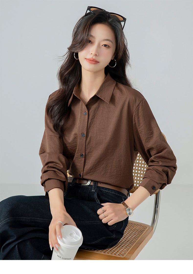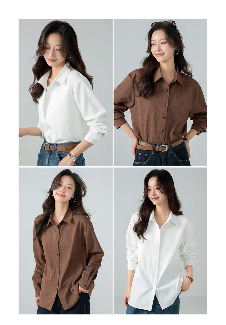 여성을위한 한국 스타일의 세련된 느슨한 긴팔 셔츠 봄과 가을 새로운 단색 탑 간단한 통근 다용도 여성 셔츠 크로스 보더스토어 가기