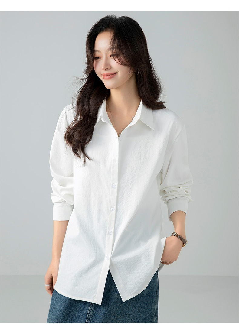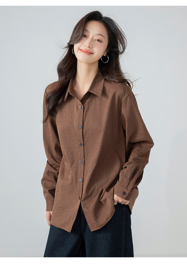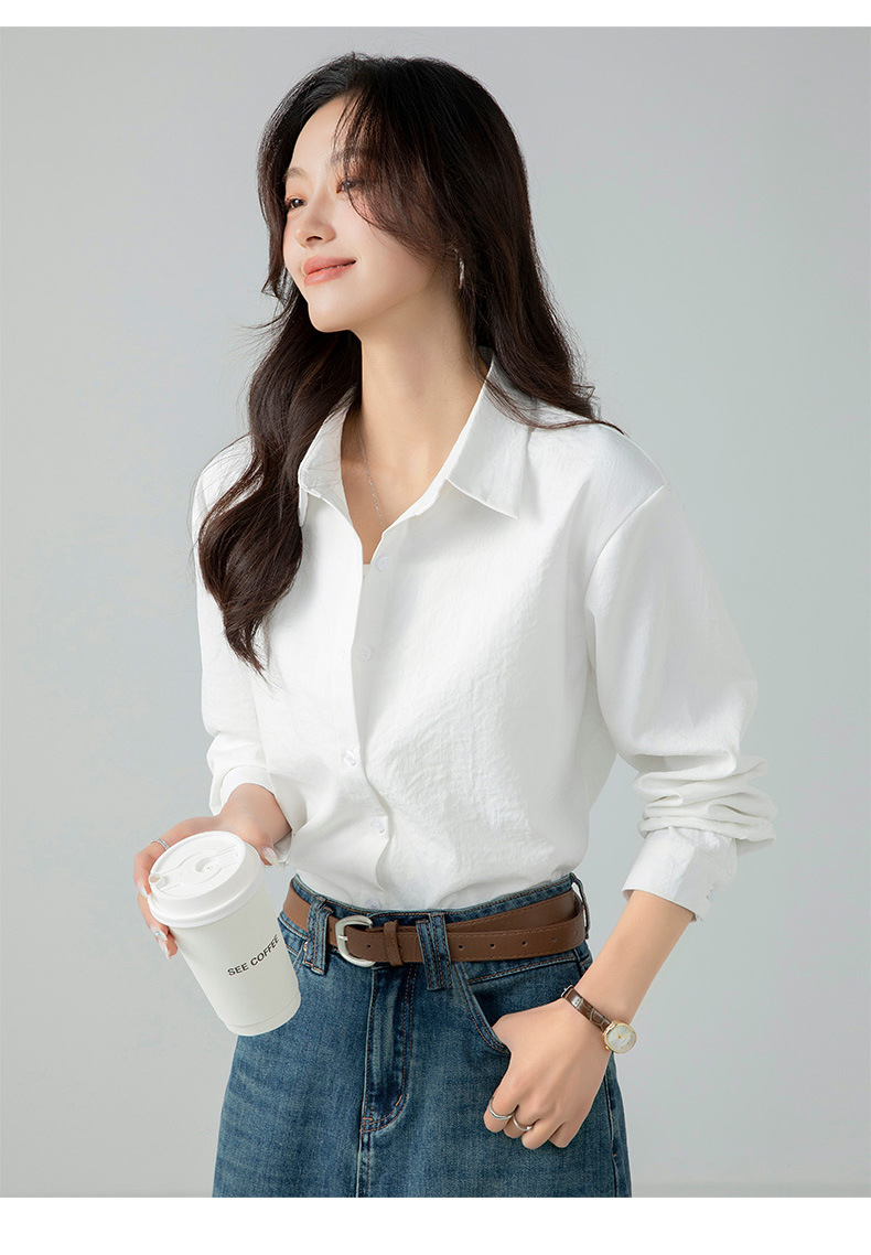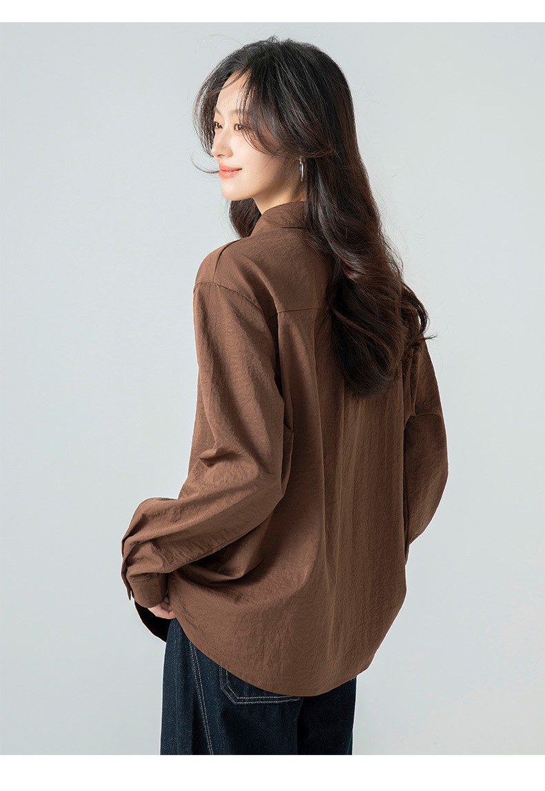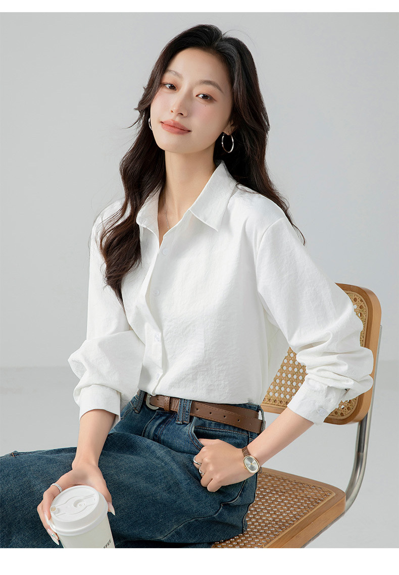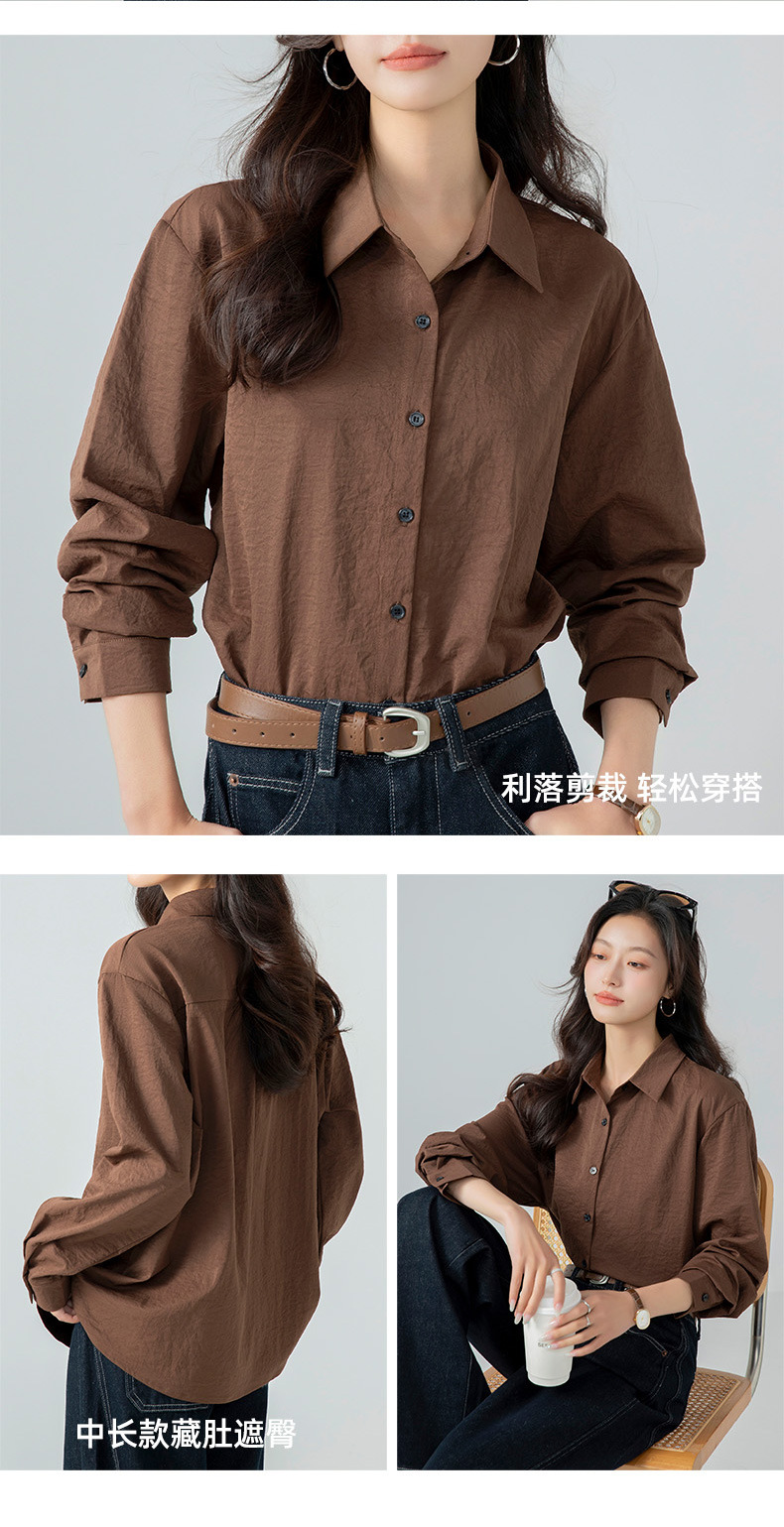 여성을위한 한국 스타일의 세련된 느슨한 긴팔 셔츠 봄과 가을 새로운 단색 탑 간단한 통근 다용도 여성 셔츠 크로스 보더스토어 가기