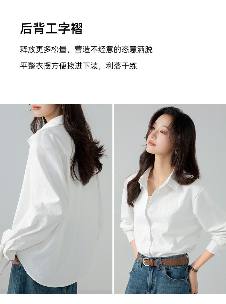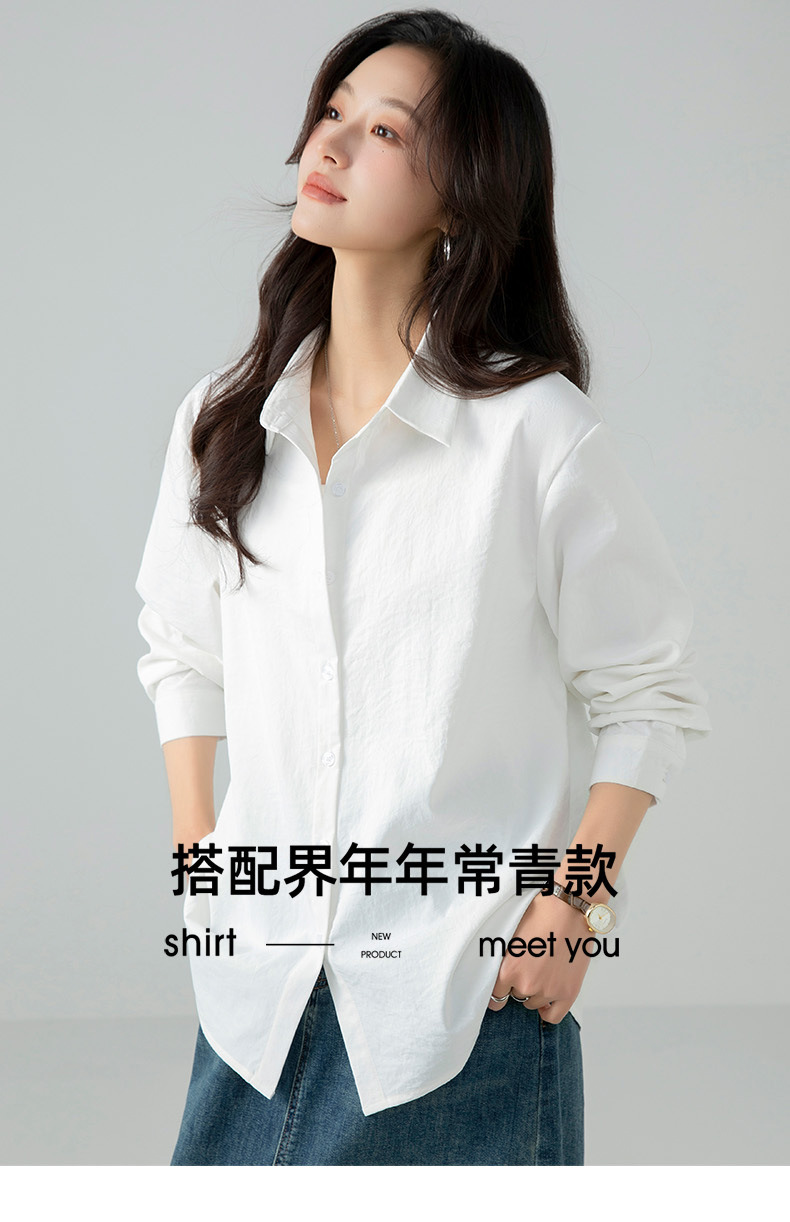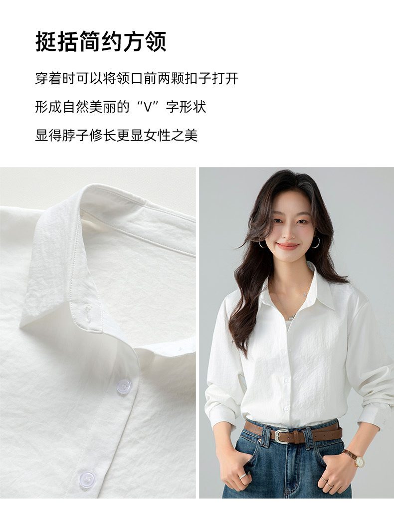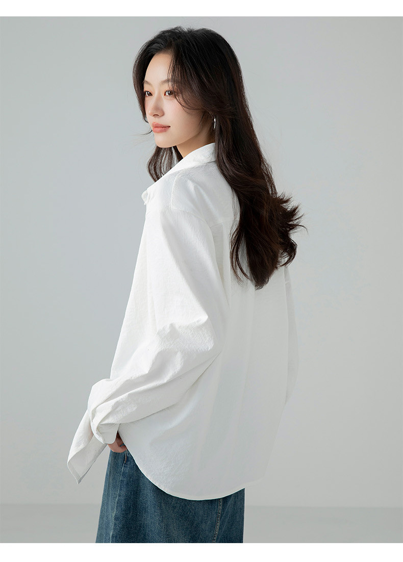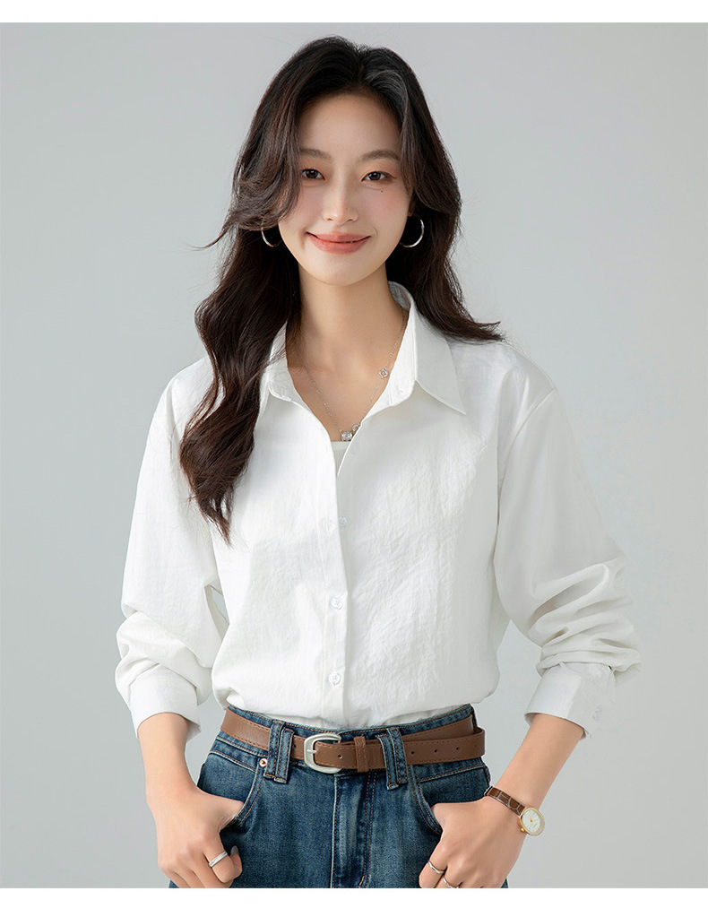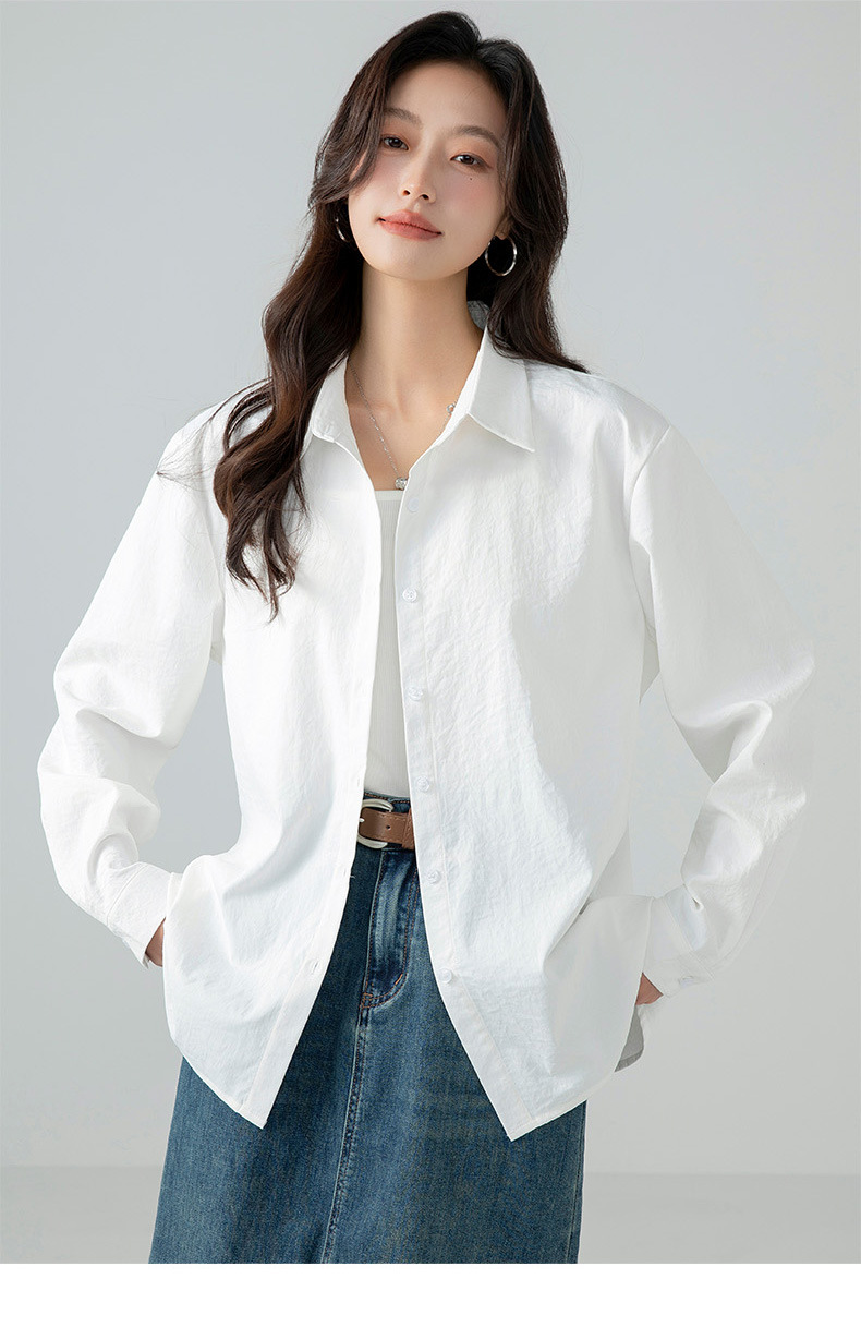 여성을위한 한국 스타일의 세련된 느슨한 긴팔 셔츠 봄과 가을 새로운 단색 탑 간단한 통근 다용도 여성 셔츠 크로스 보더스토어 가기