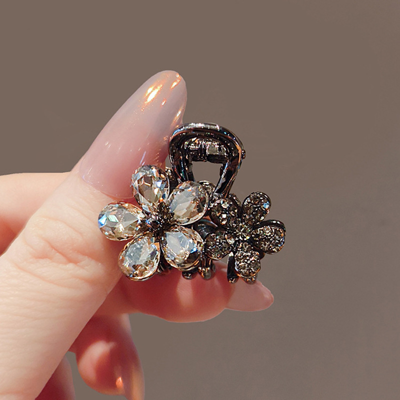 한국 고급 블랙 크리스탈 꽃 작은 잡아 클립 여성의 우아한 합금 헤어핀 탑 클립 깨진 헤드웨어