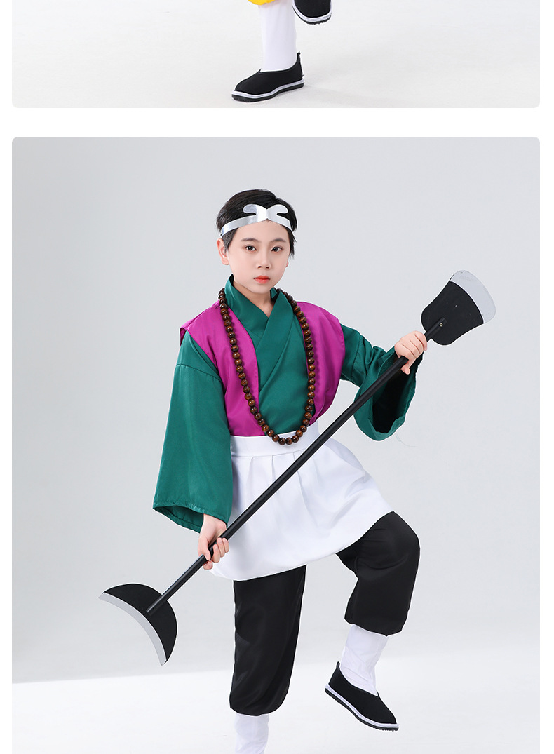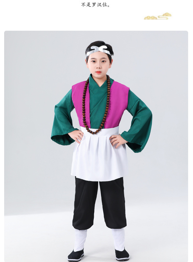 어린이 수도사 모래 테이블 공연 의상 서쪽 의상 부처님 비즈 초승달 삽 신발 및 양말 쇼어 주니어 형제 장비 전체 세트 샤 스님