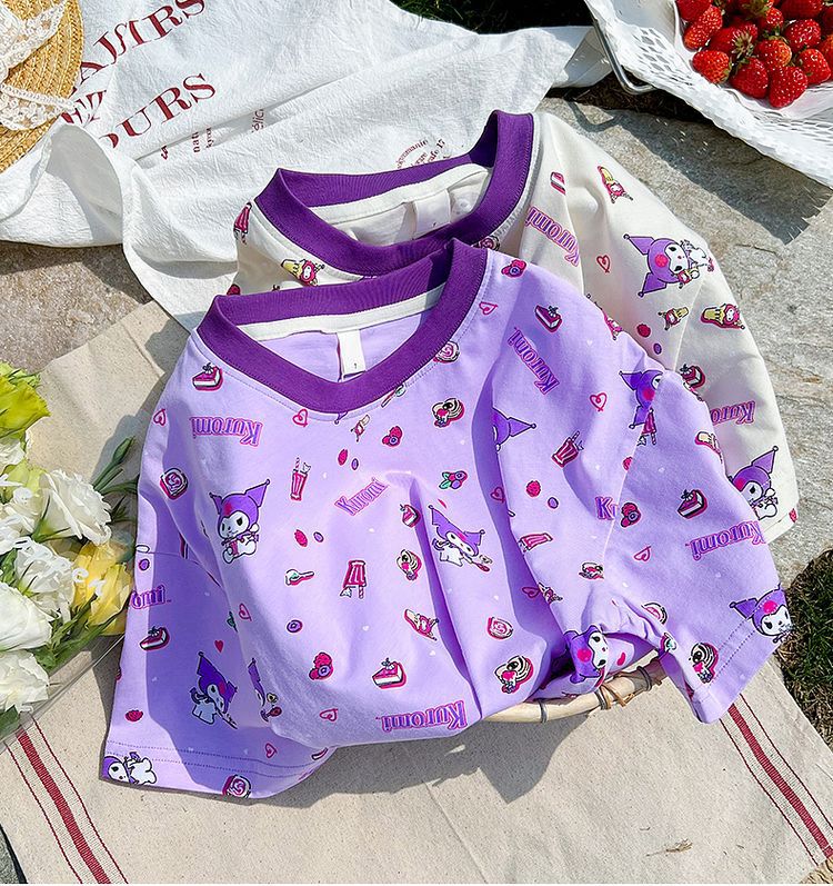 여아 올오버 프린트 긴팔 티셔츠 봄, 가을 쿠로미 한국 스타일 외국 스타일 다용도 캐주얼 탑 바텀 셔츠