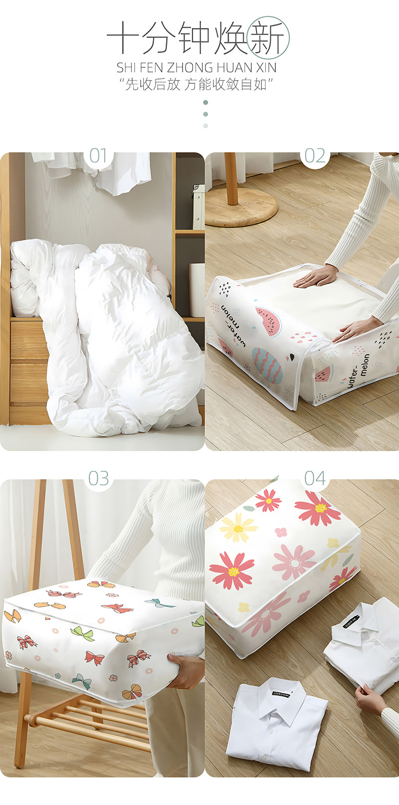 PEVA棉被衣服大号收纳袋简约印花防潮储物袋便携搬家打包整理袋