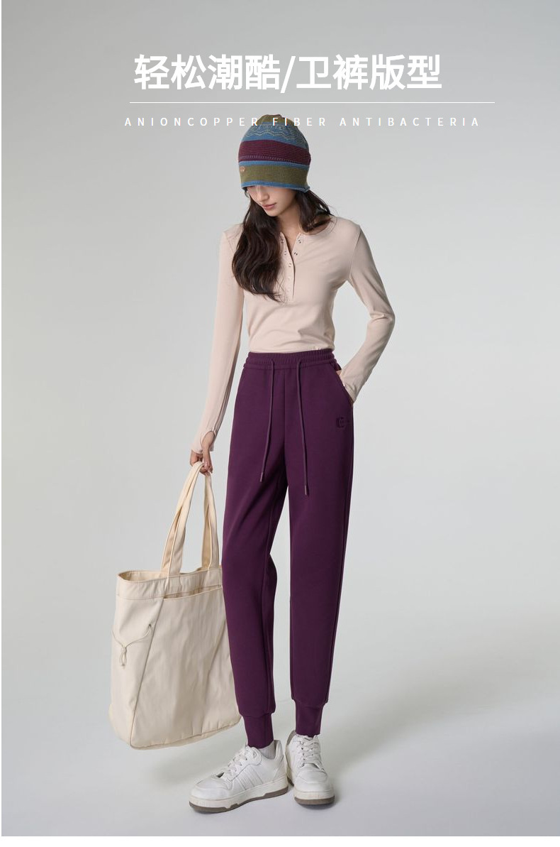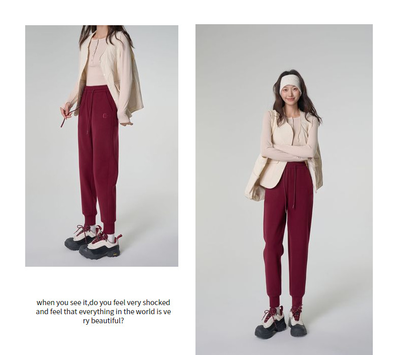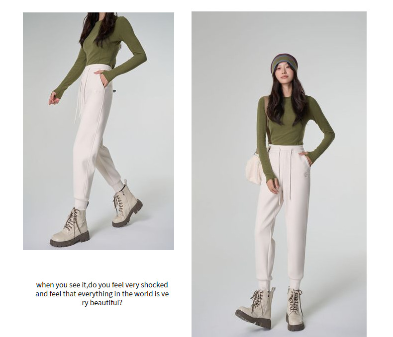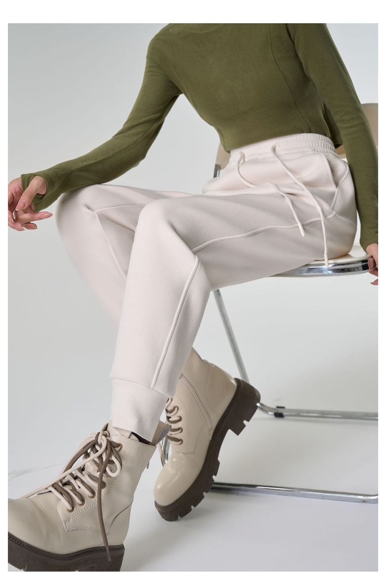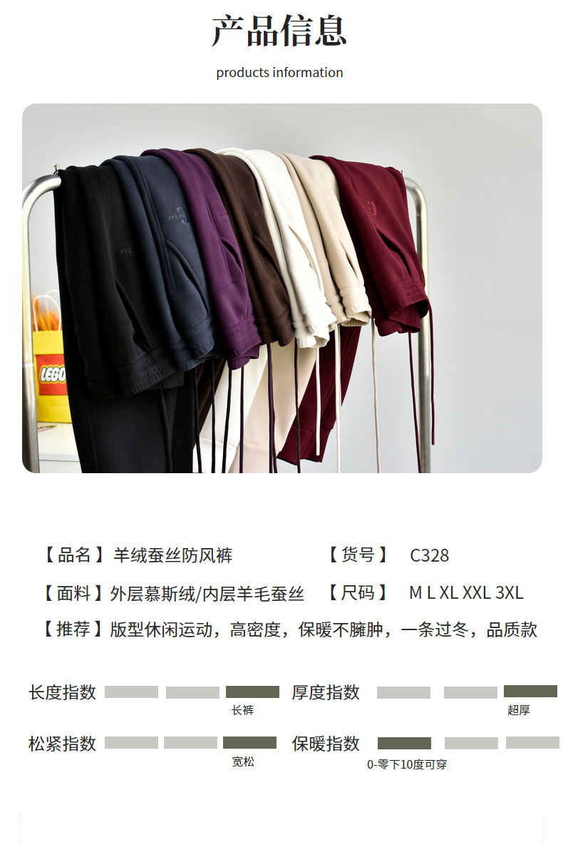 [울 실크 방풍 바지] 2024 년 겨울 여성 새 두꺼운 울 실크 느슨한 스포츠 레저 바지스토어 가기