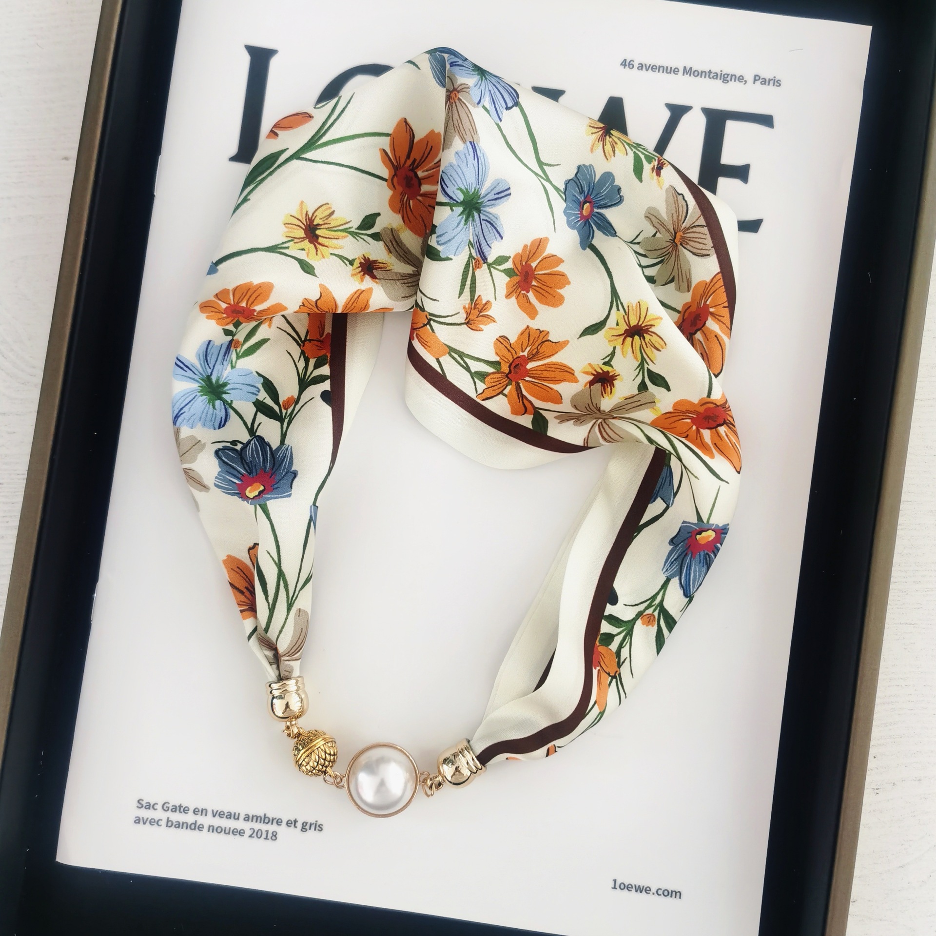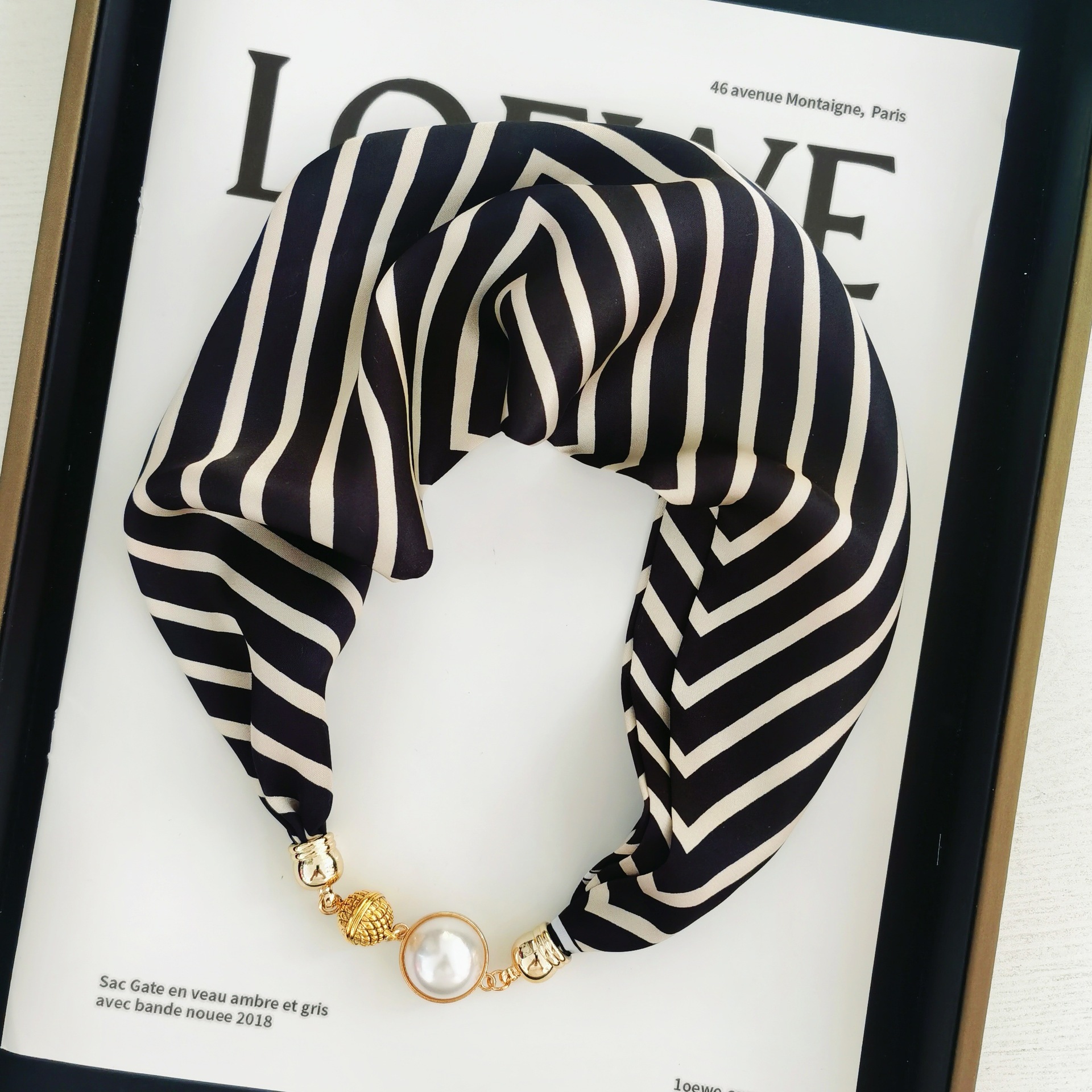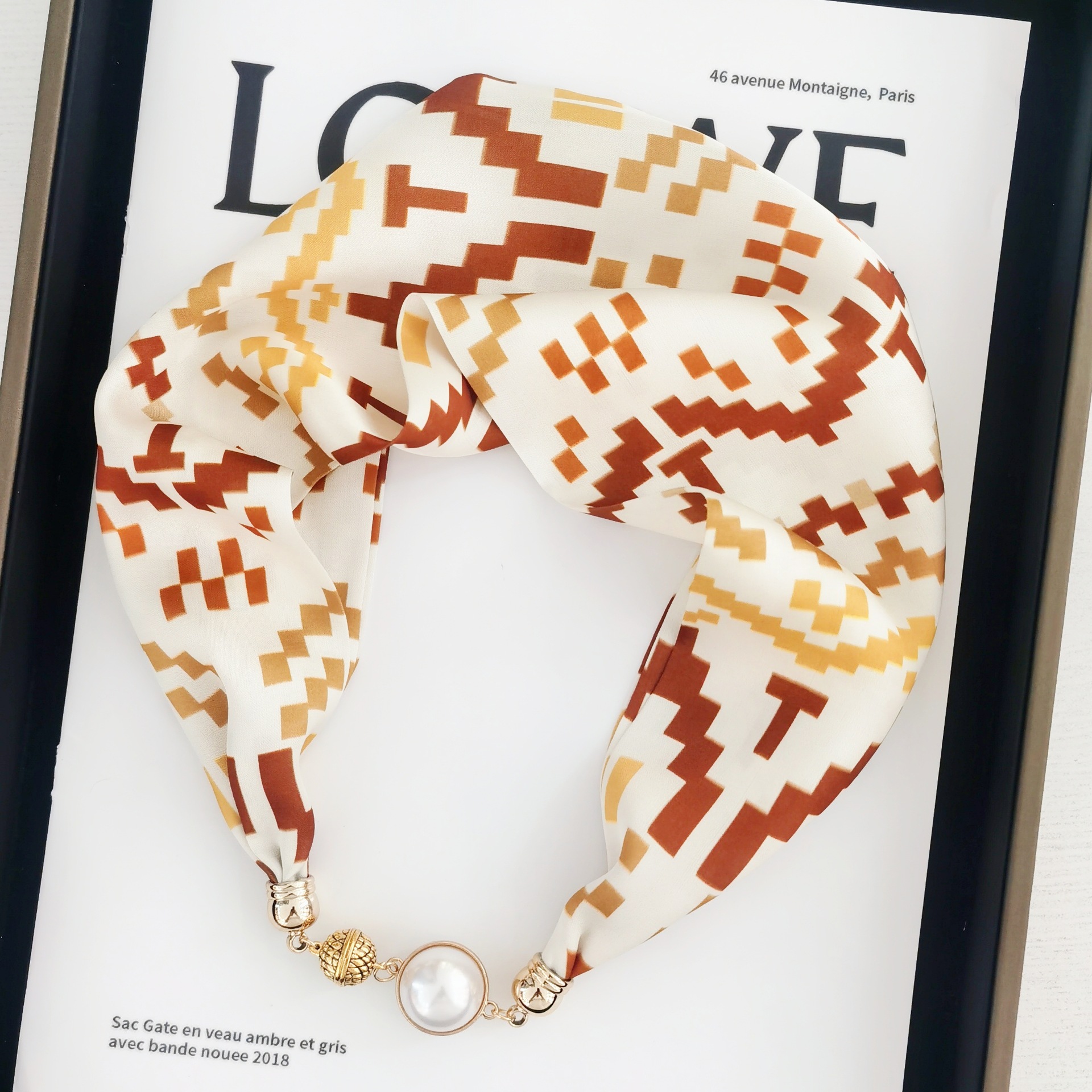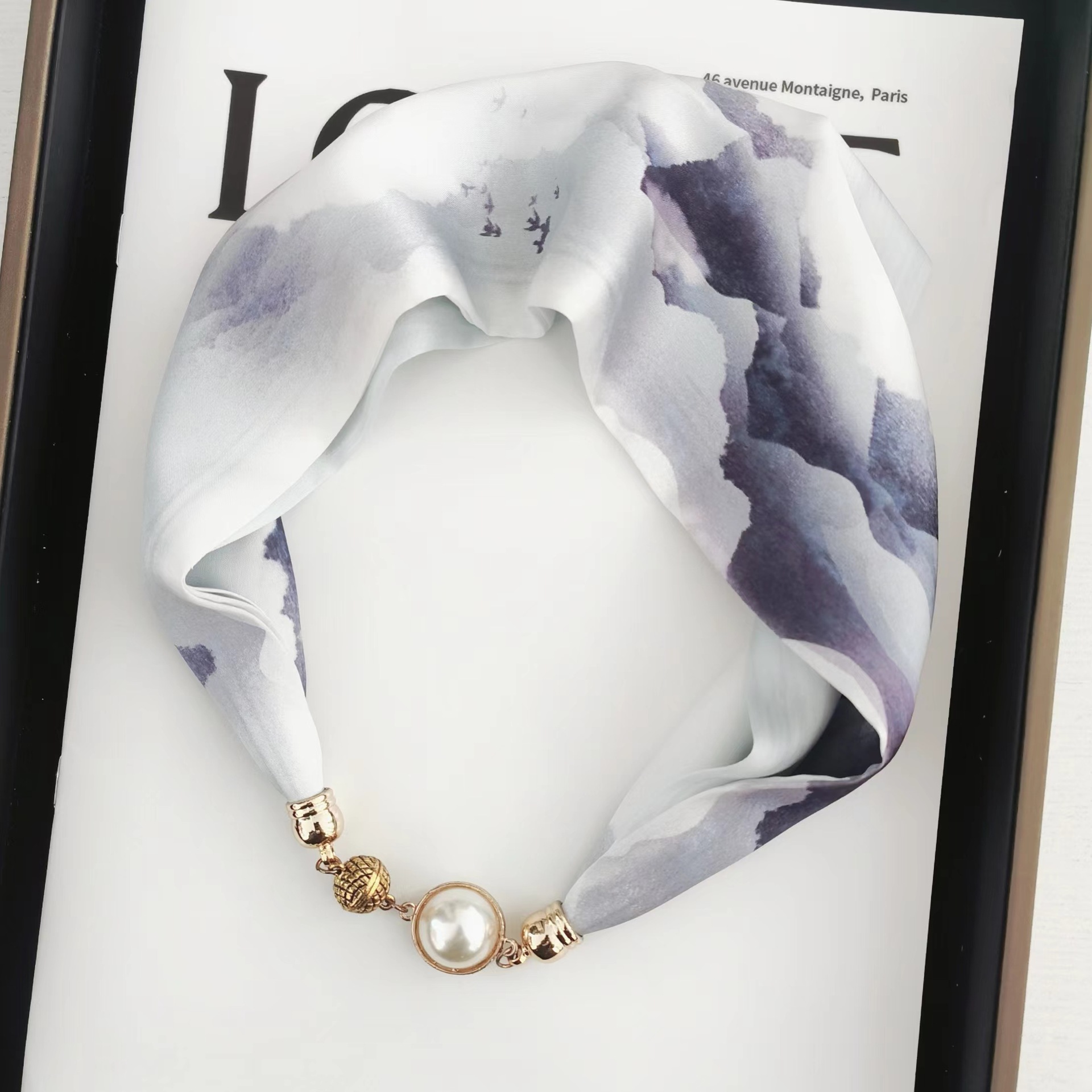 2025H 마그네틱 버클 스카프 봄과 여름 패션 모든 경기 여성 진주 목걸이 셔츠 착용 장식 작은 스카프 배치스토어 가기