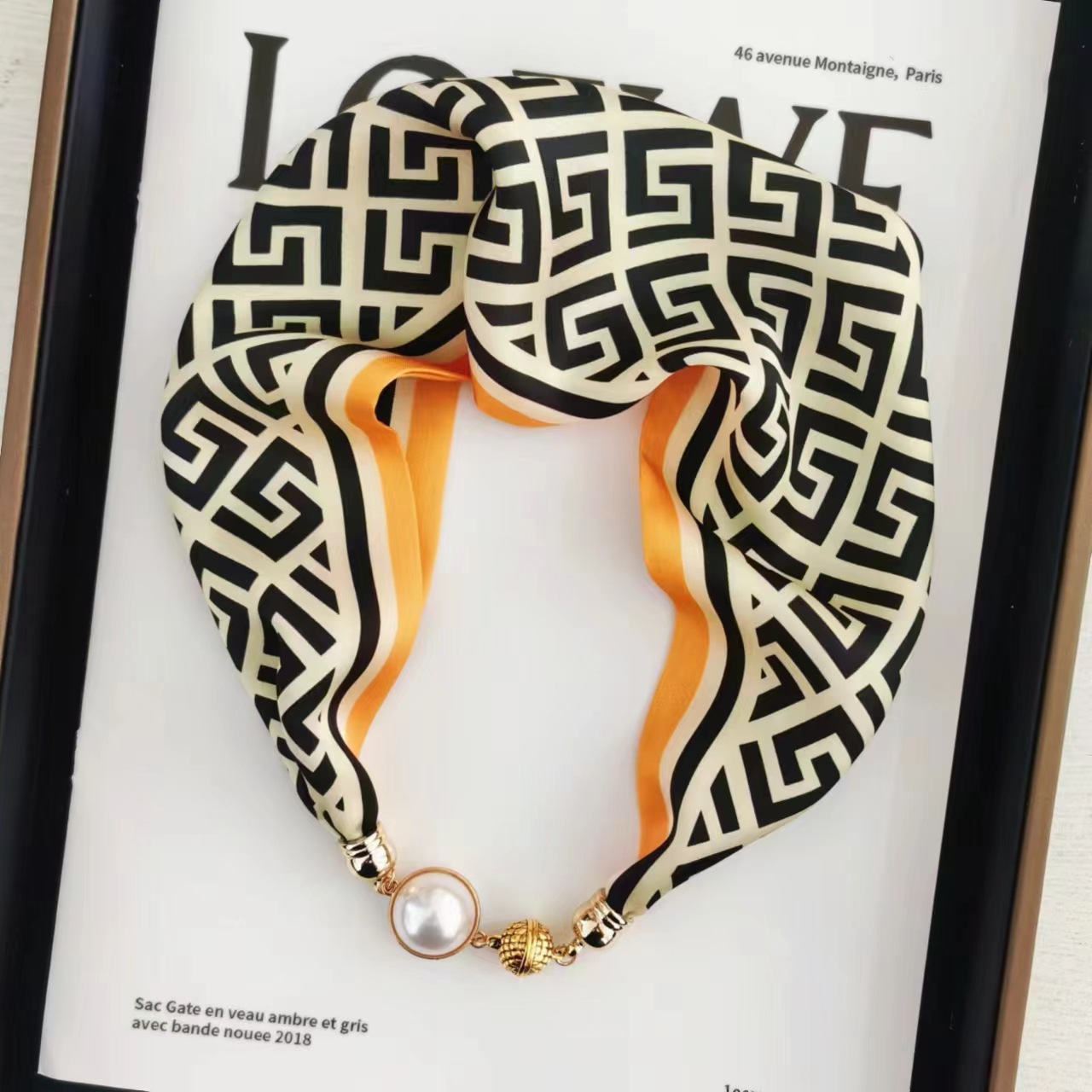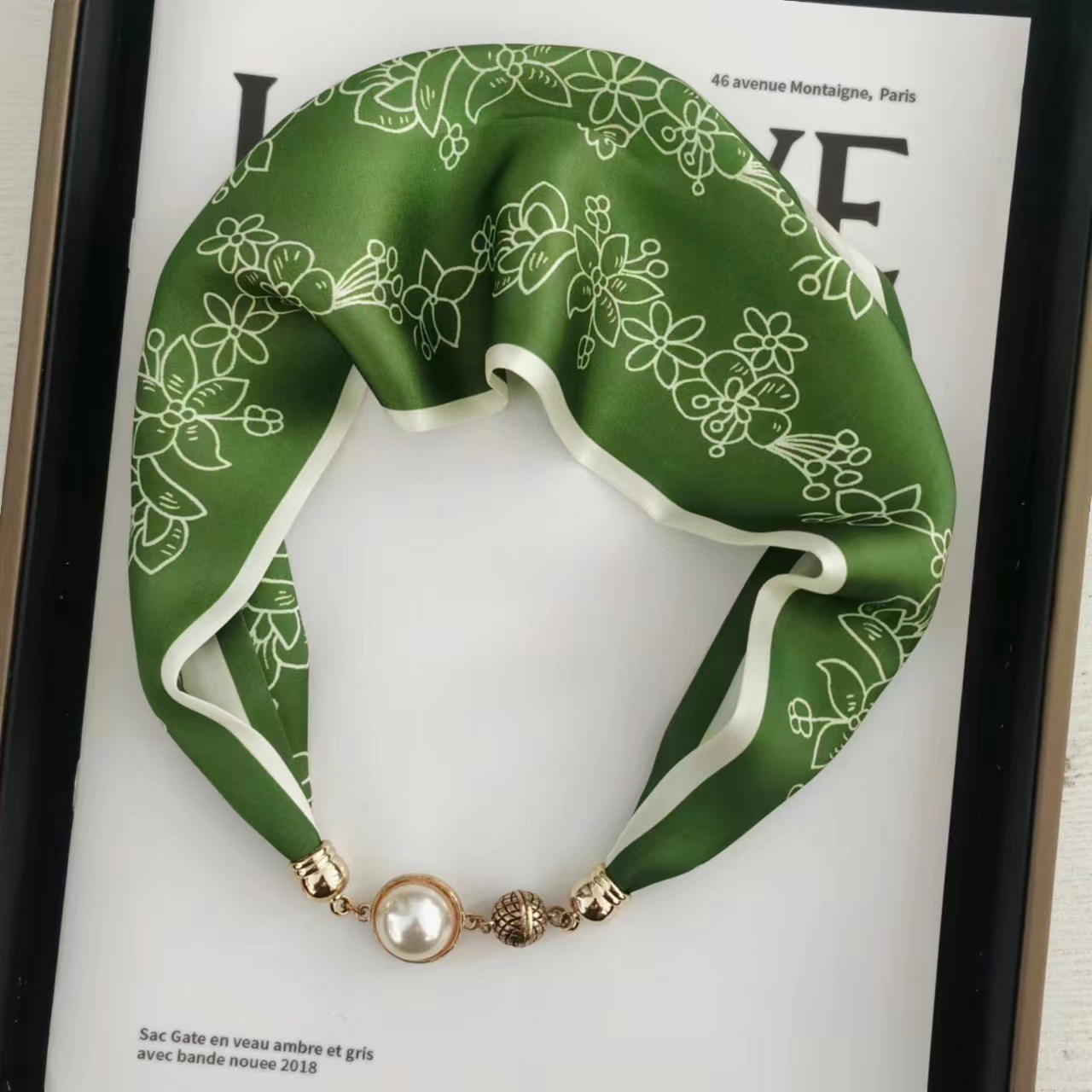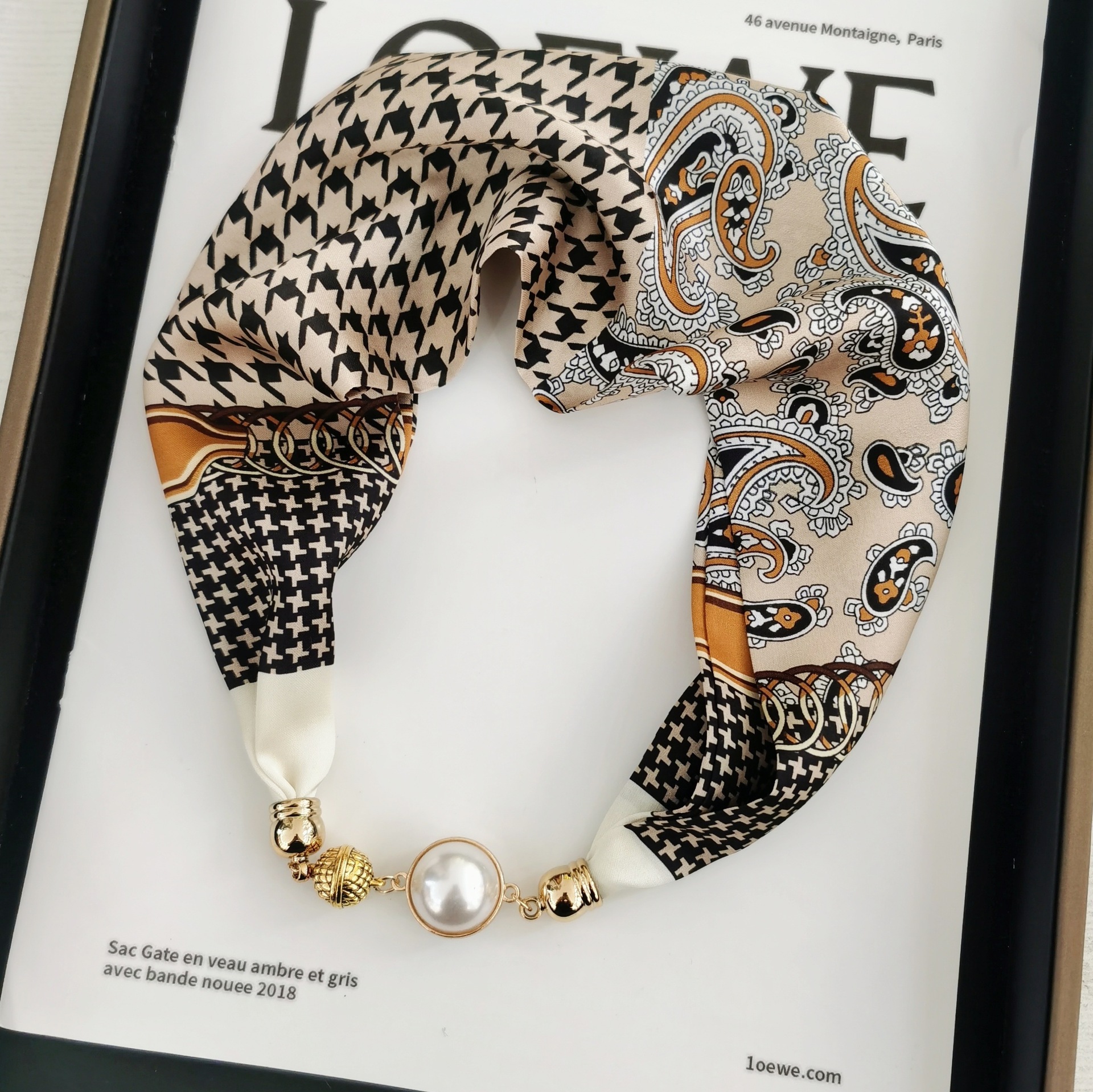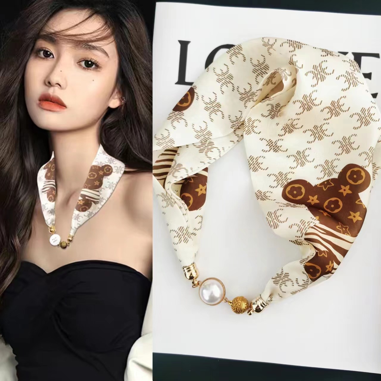 2025H 마그네틱 버클 스카프 봄과 여름 패션 모든 경기 여성 진주 목걸이 셔츠 착용 장식 작은 스카프 배치스토어 가기