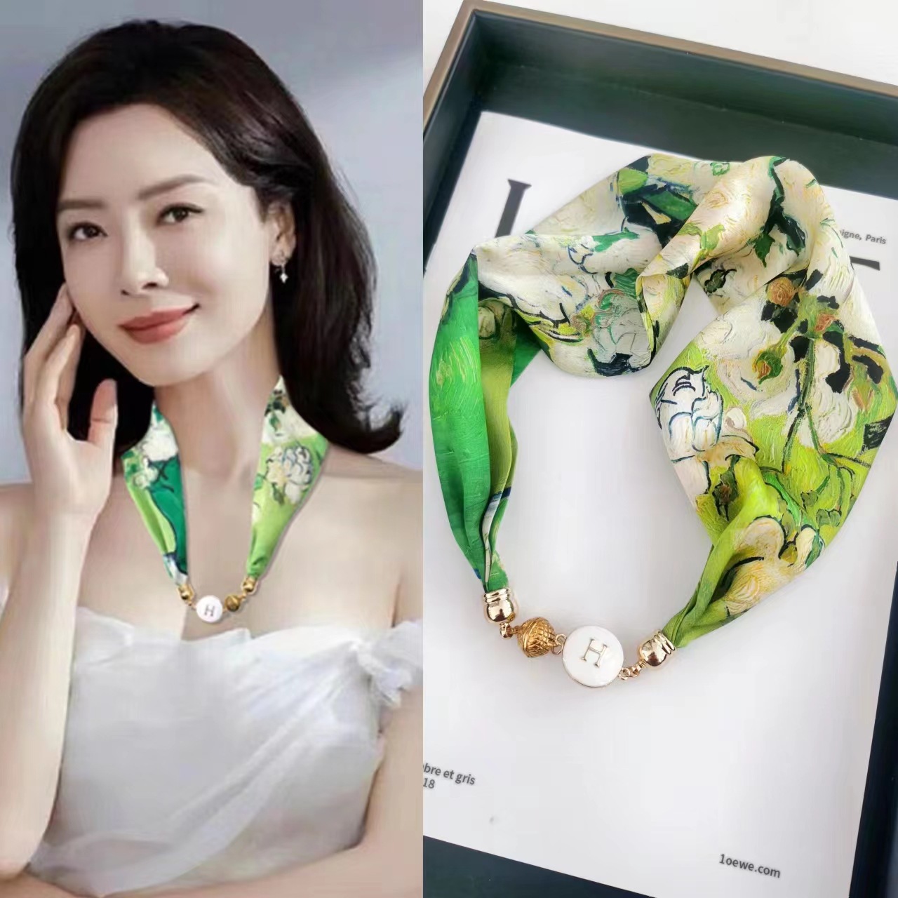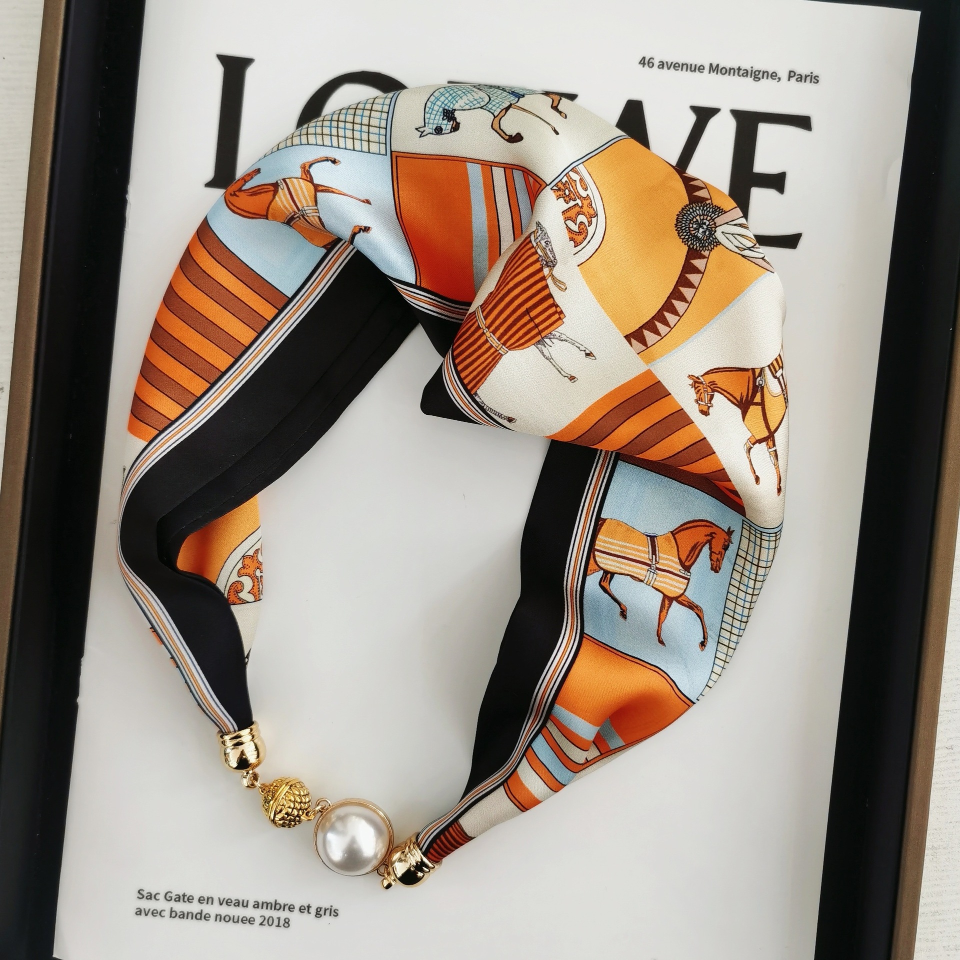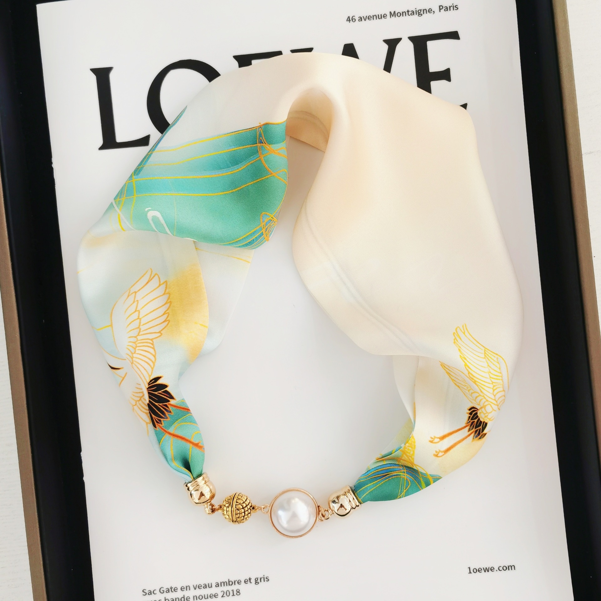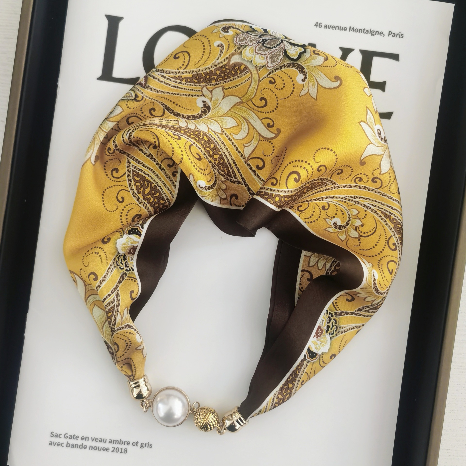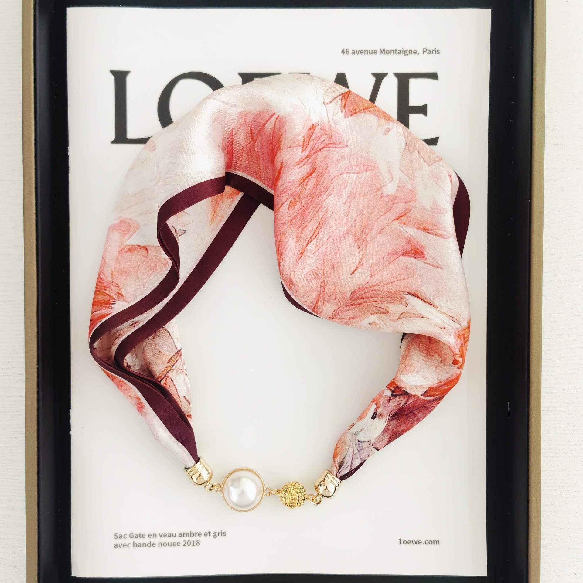 2025H 마그네틱 버클 스카프 봄과 여름 패션 모든 경기 여성 진주 목걸이 셔츠 착용 장식 작은 스카프 배치스토어 가기