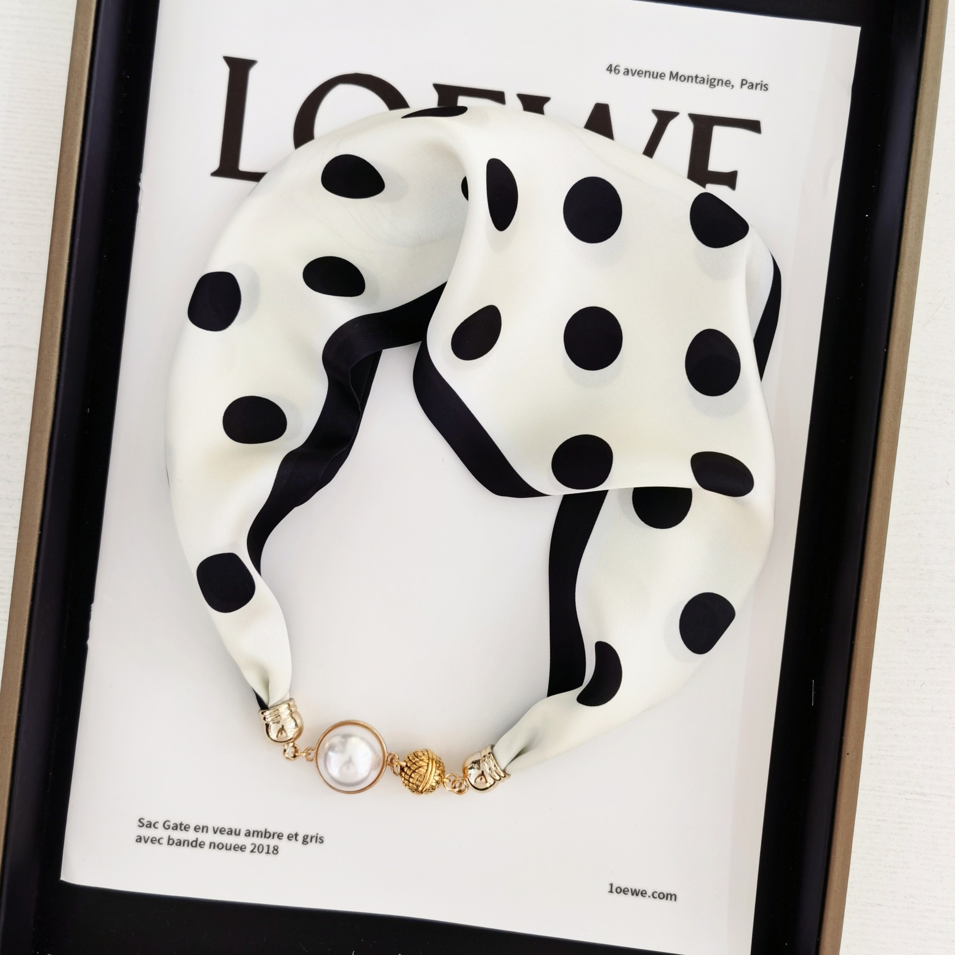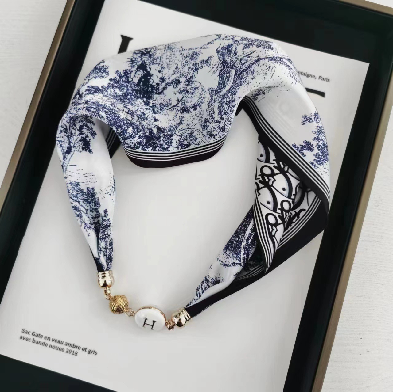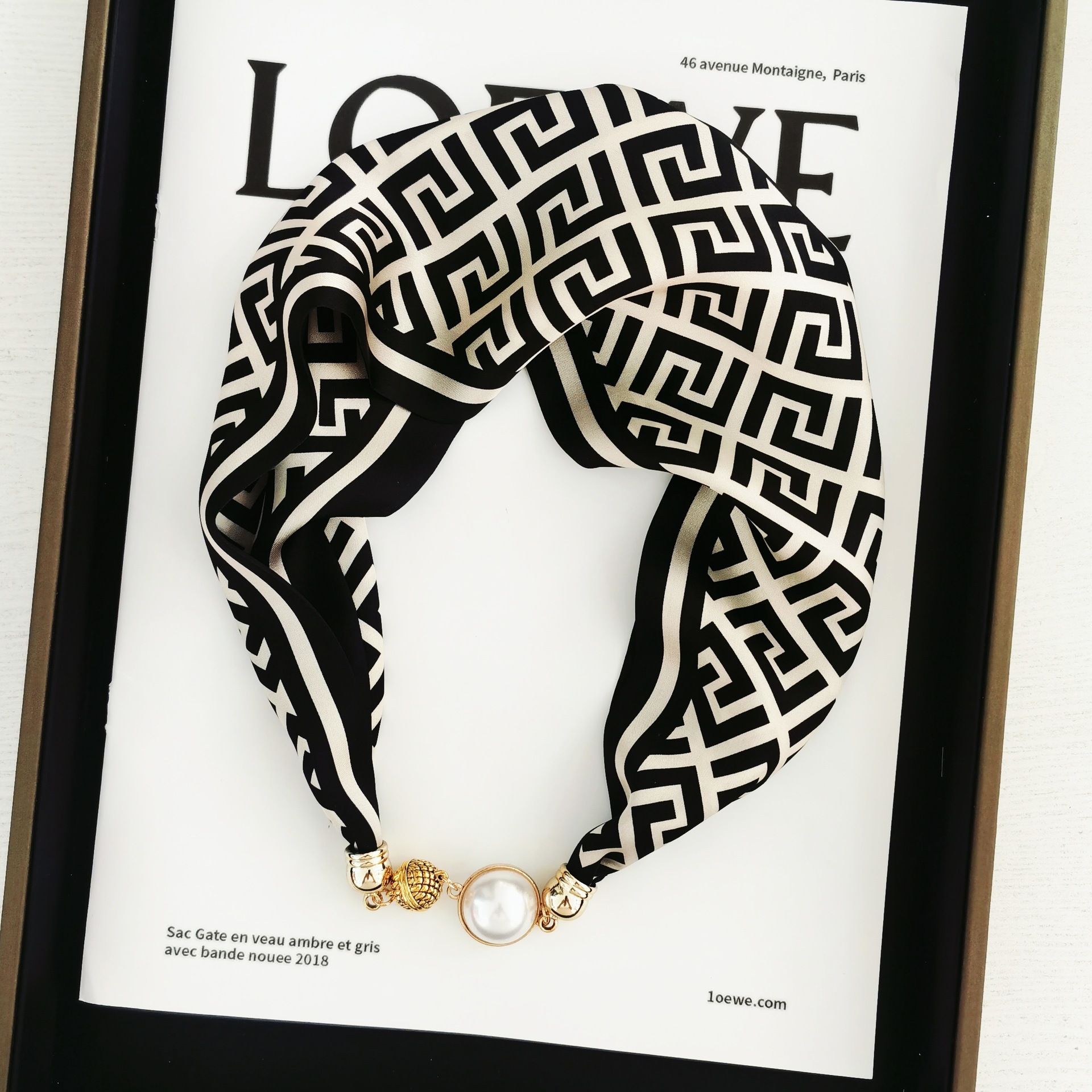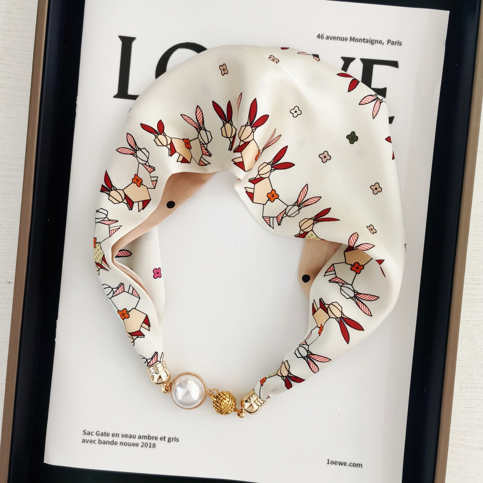 2025H 마그네틱 버클 스카프 봄과 여름 패션 모든 경기 여성 진주 목걸이 셔츠 착용 장식 작은 스카프 배치스토어 가기
