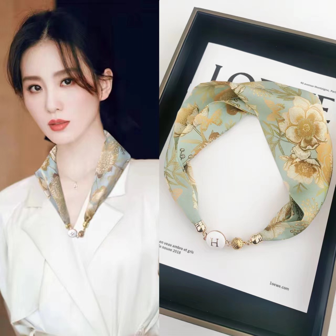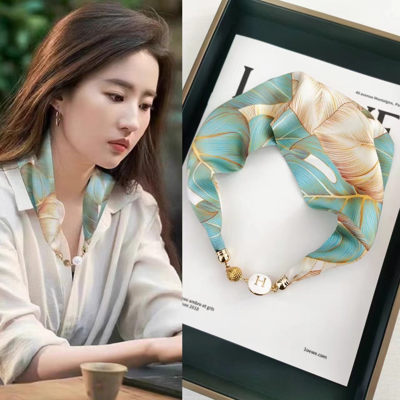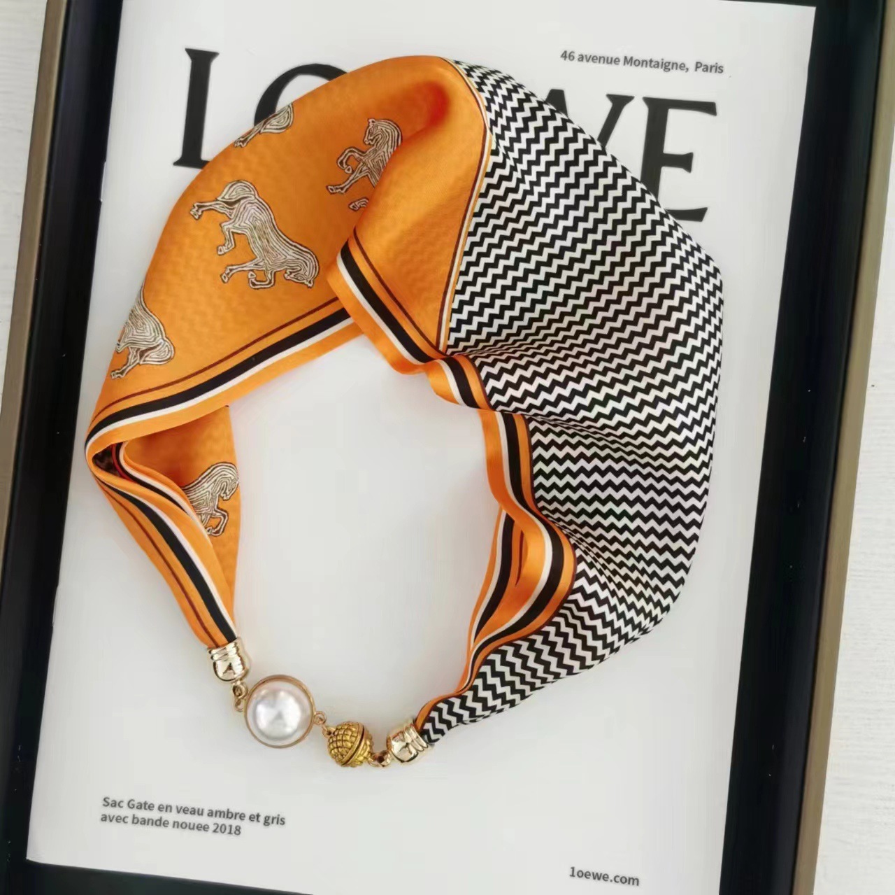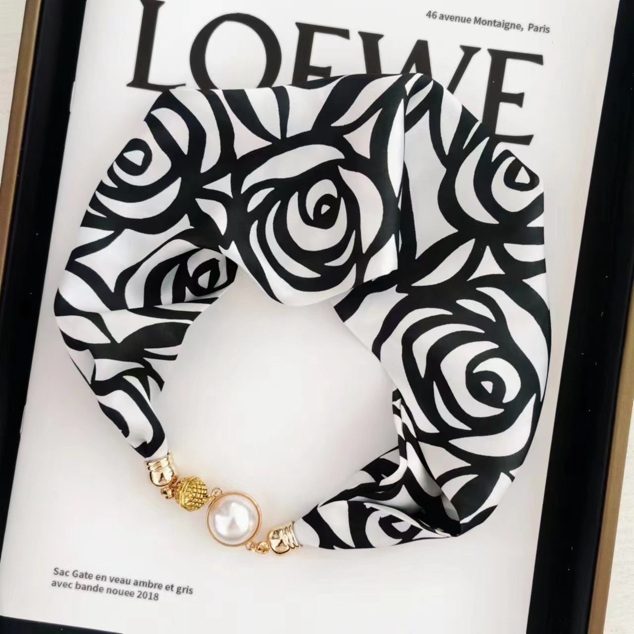 2025H 마그네틱 버클 스카프 봄과 여름 패션 모든 경기 여성 진주 목걸이 셔츠 착용 장식 작은 스카프 배치스토어 가기