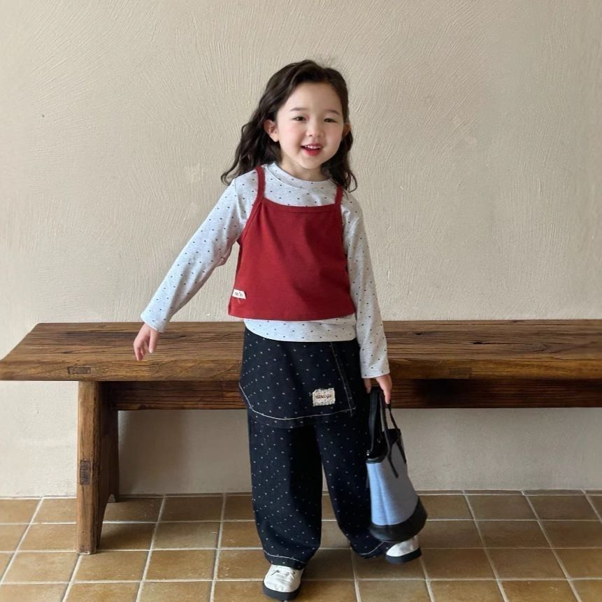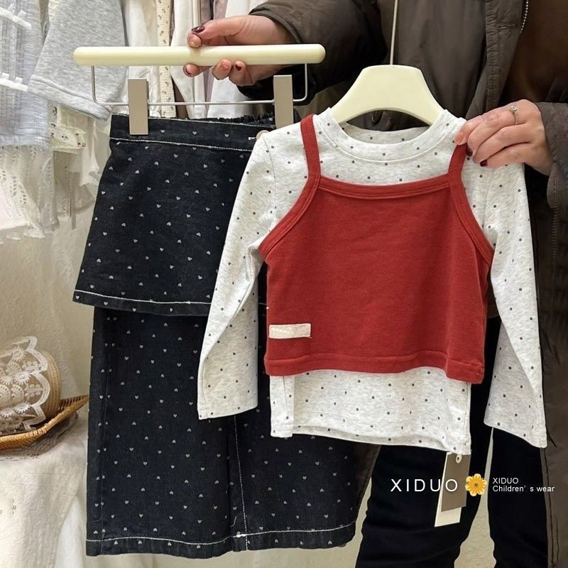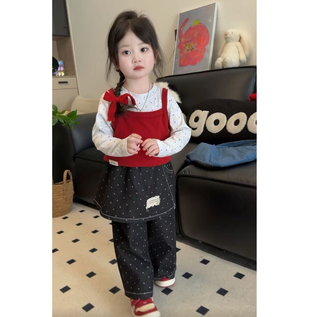 한국 스타일 봄 신작 아동 한국식 긴팔 티셔츠 여아용 바지 천 커튼 청바지 세트스토어 가기