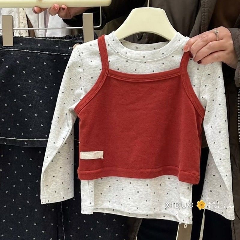 한국 스타일 봄 신작 아동 한국식 긴팔 티셔츠 여아용 바지 천 커튼 청바지 세트