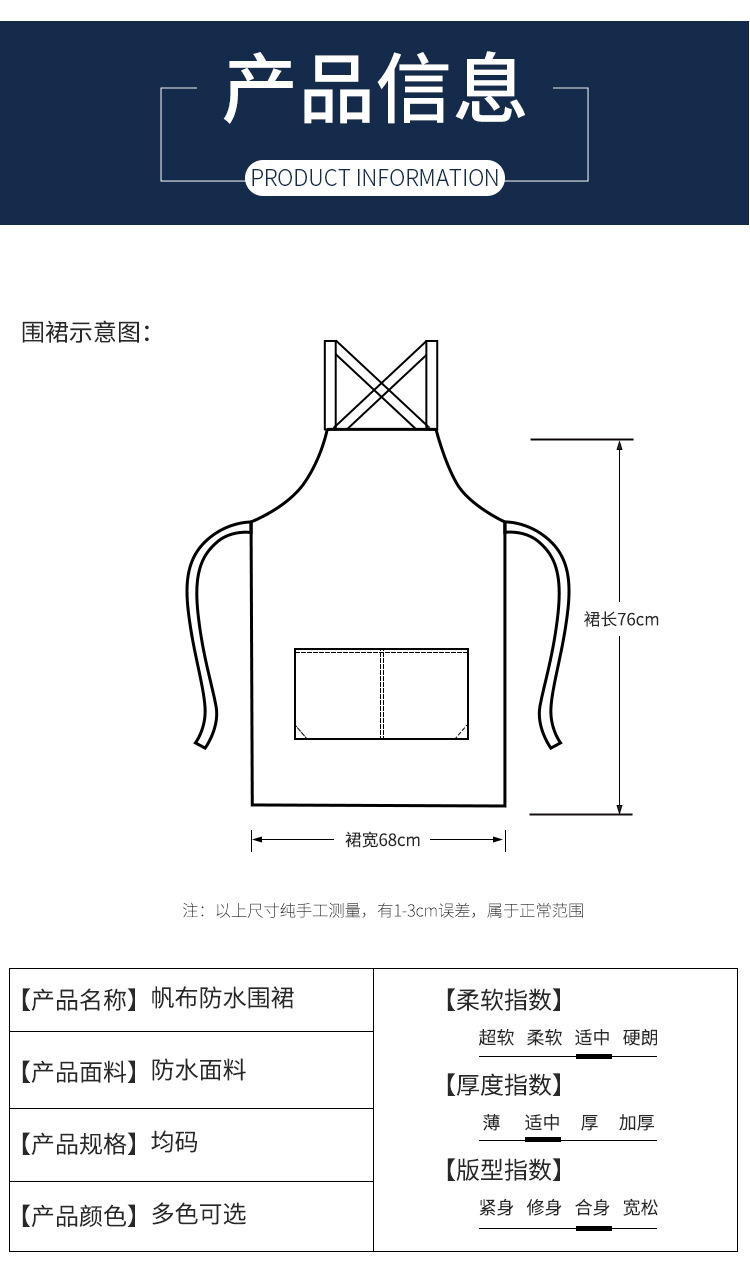 유니섹스 캔버스 크로스 스트랩 방수 앞치마 케이터링 애완 동물 카페 우유 차 가게 이발소 옷