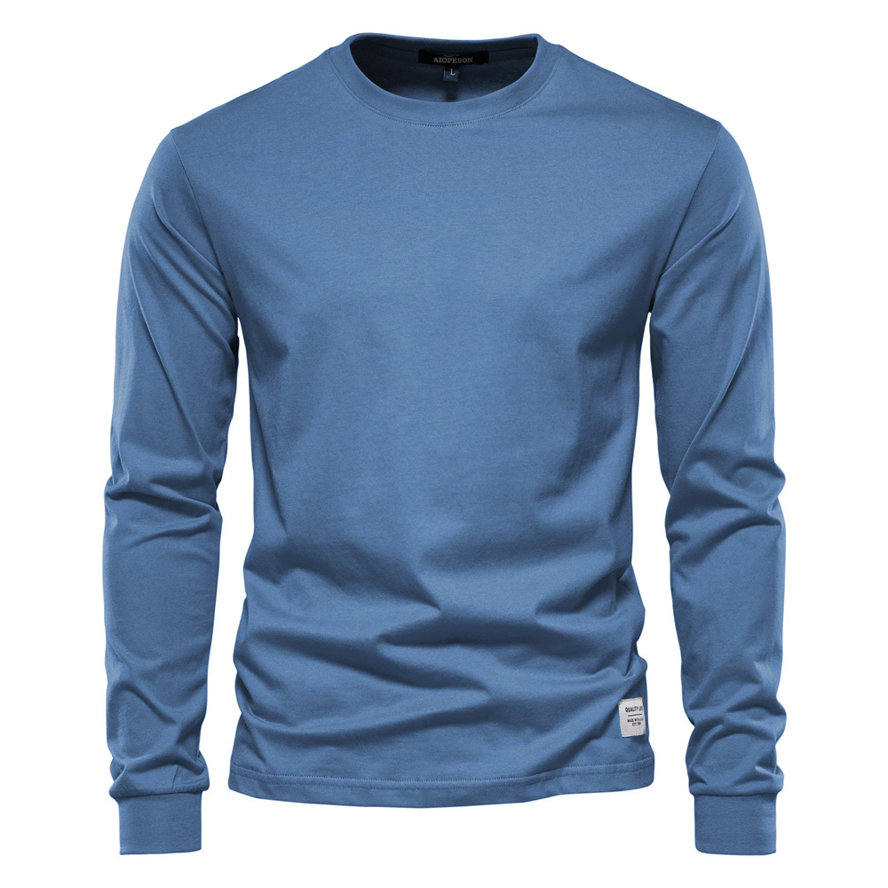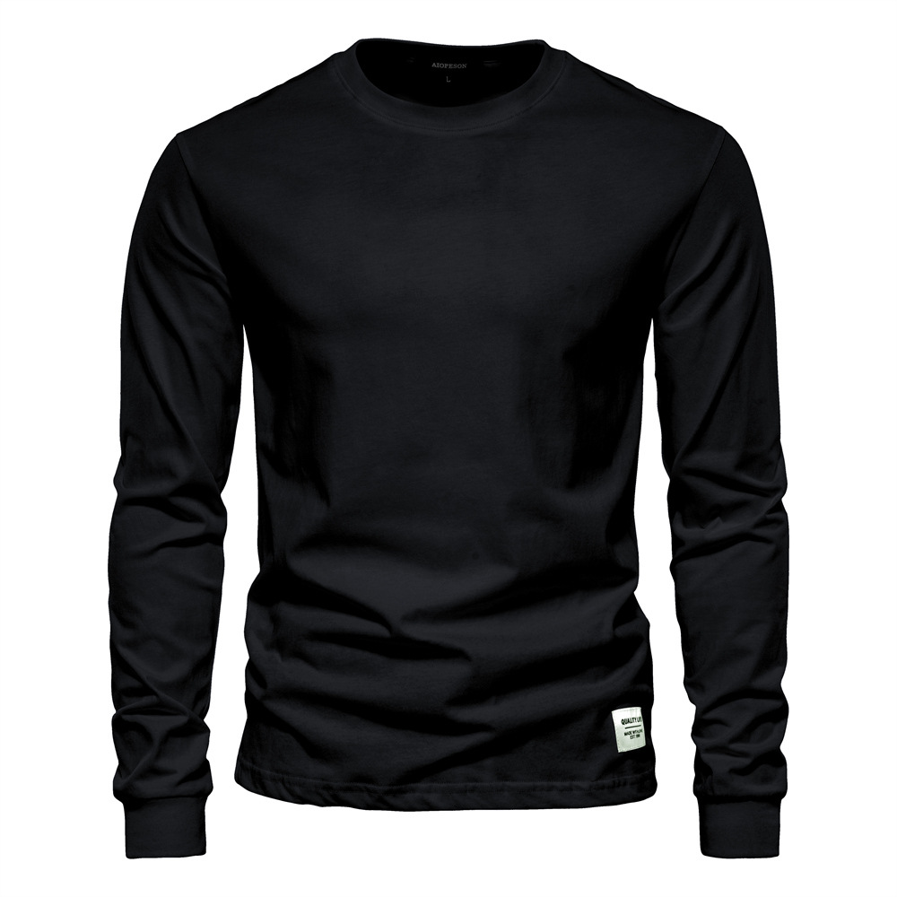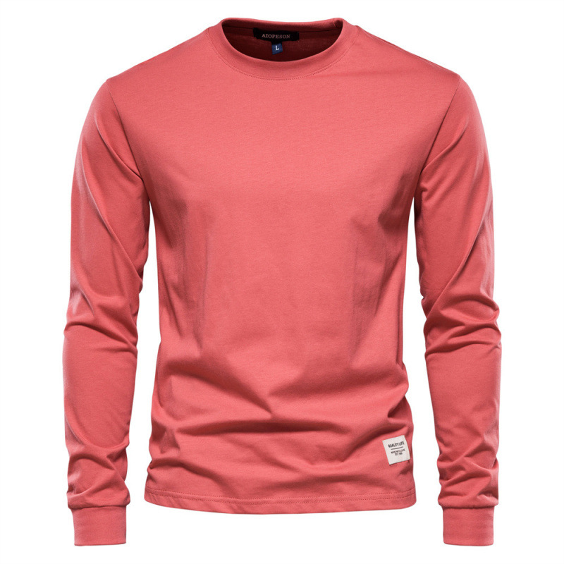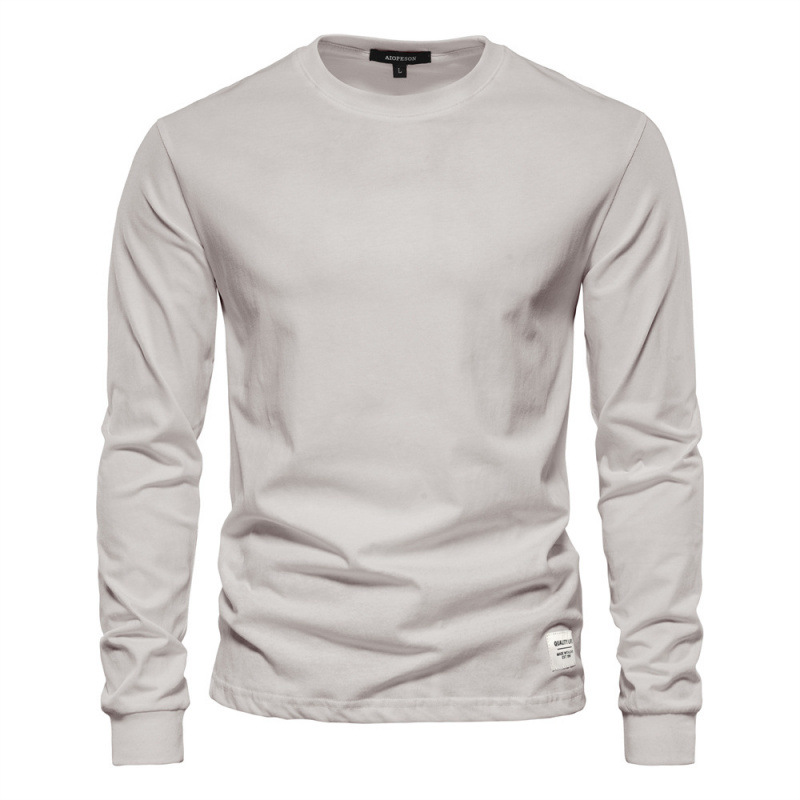 가을 트렌디 한 긴팔 새로운 유럽식 남성 솔리드 컬러 긴팔 탑 하이 스트리트 남성용 홍콩 스타일 코튼 이너 티셔츠스토어 가기