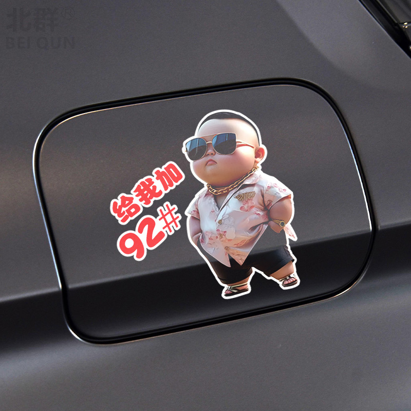 새로운 강압적인 소년 연료 탱크 커버 자동차 스티커 창조적 인 맞춤형 만화 스티커 연료 포트 연료 번호 알림 스티커