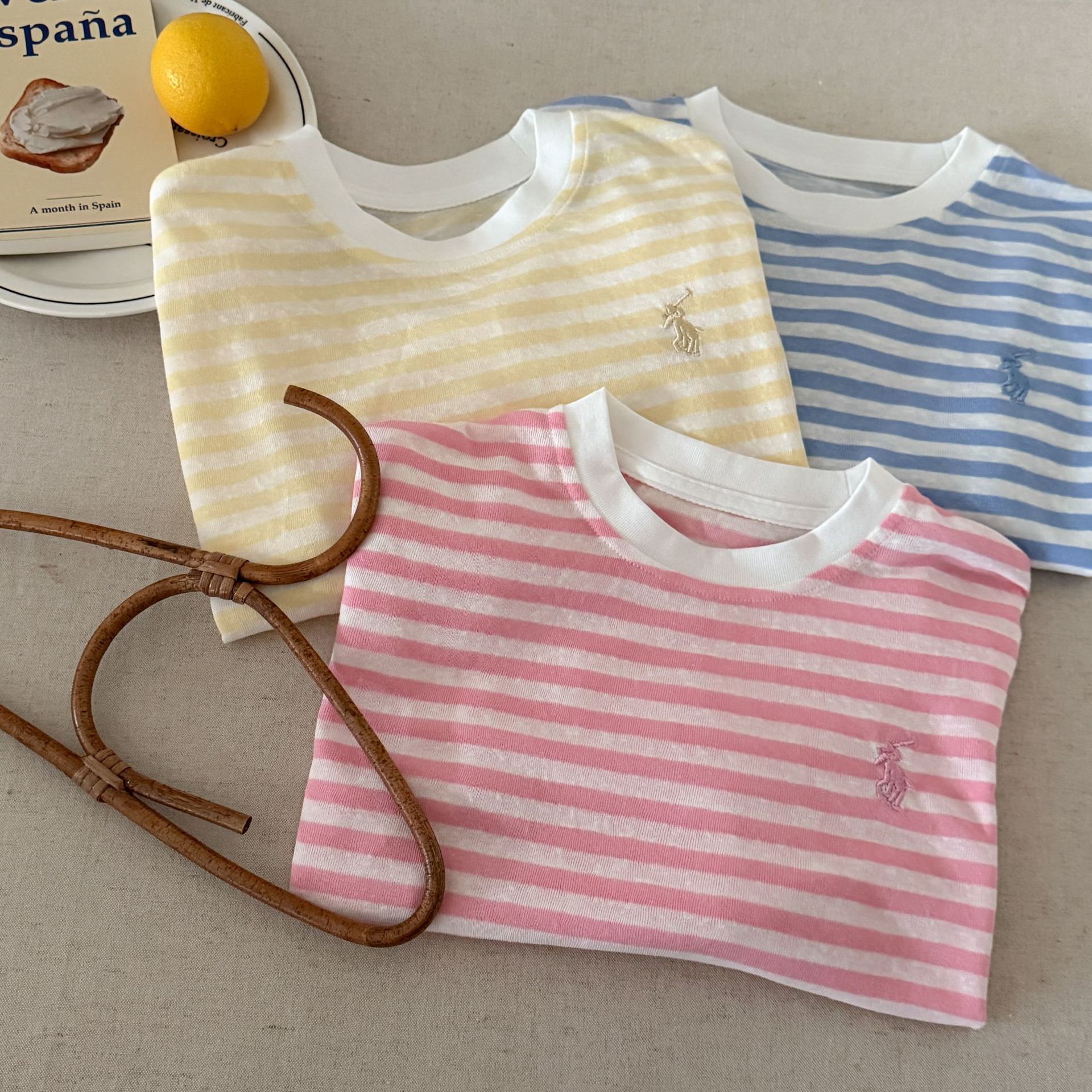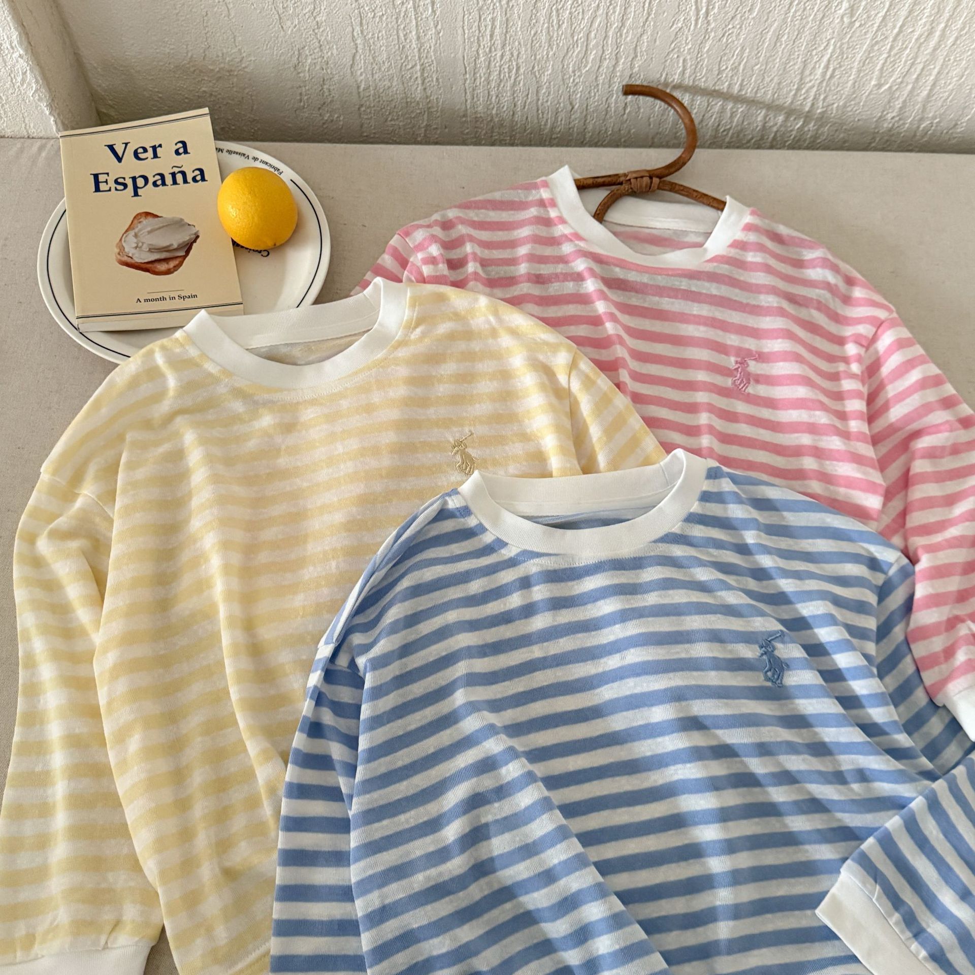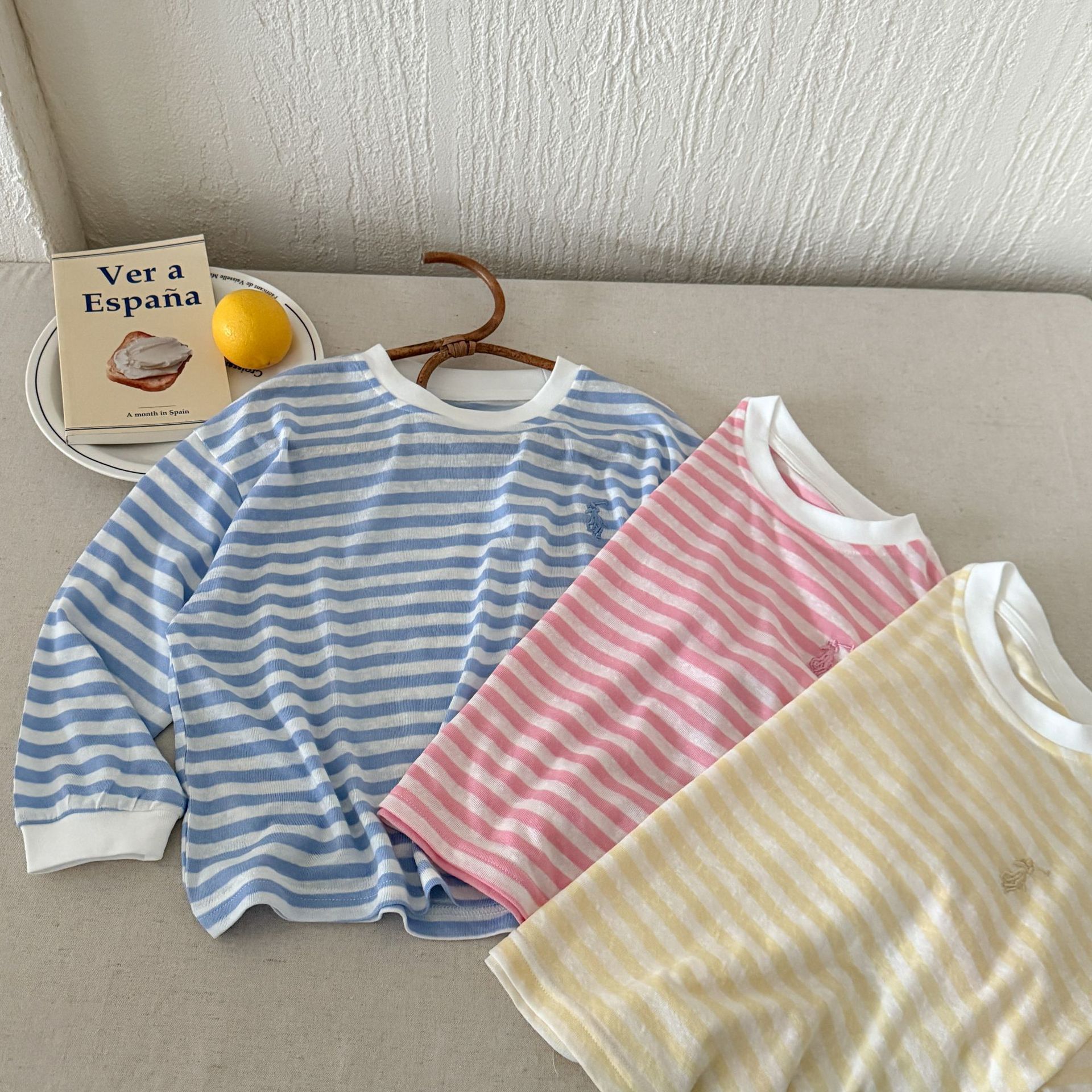 어린이 티셔츠 2025 여름 새로운 도착 아동복 소년 소녀 둥근 목 줄무늬 캐주얼 안티 모기 탑 조수 쿨스토어 가기