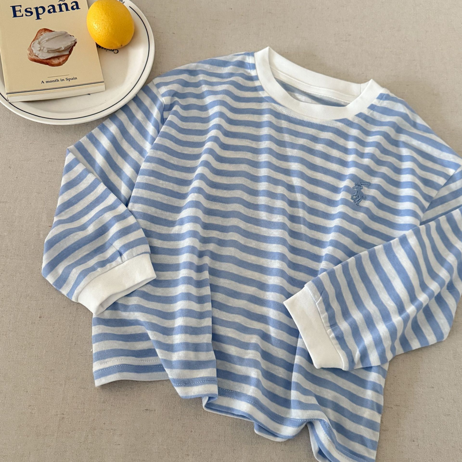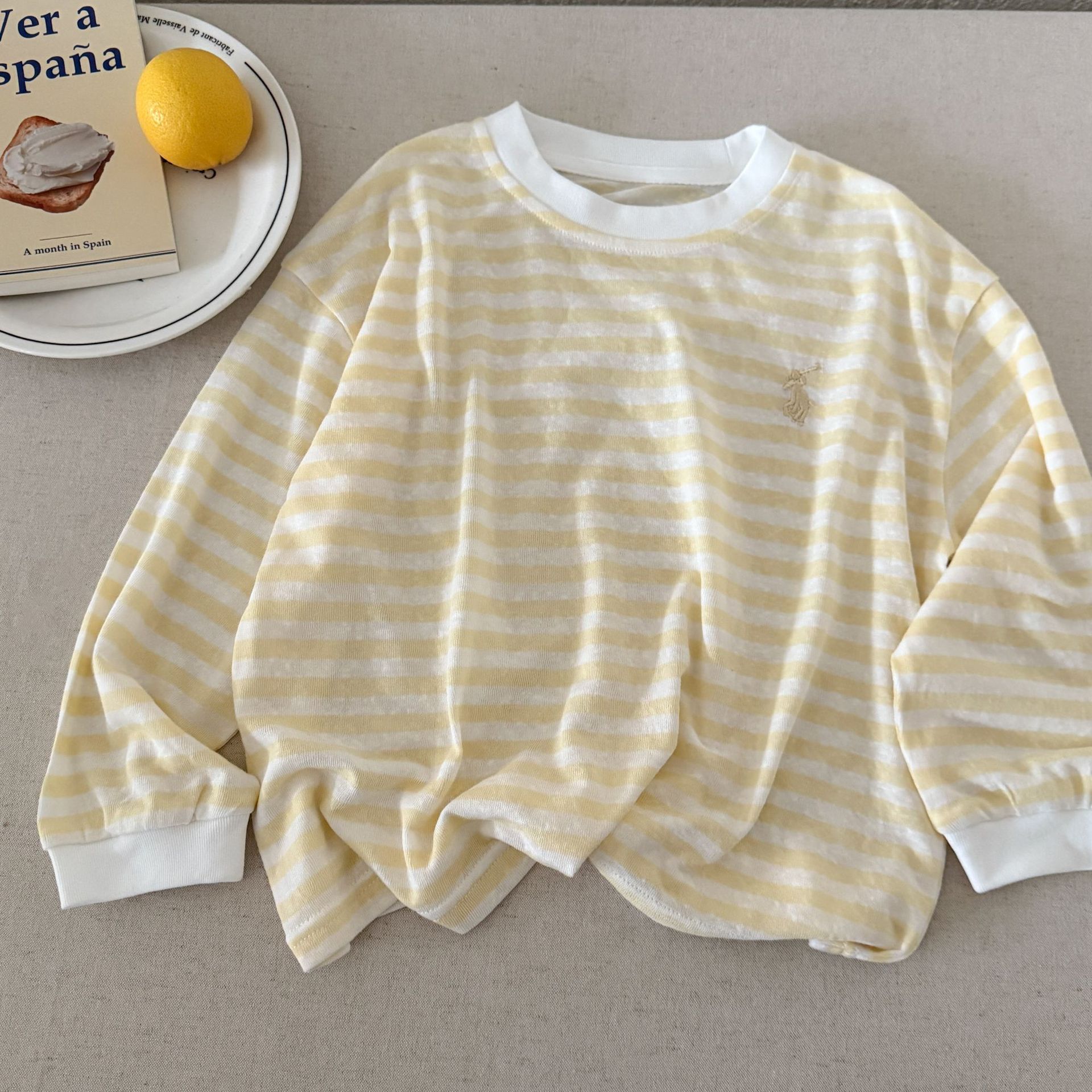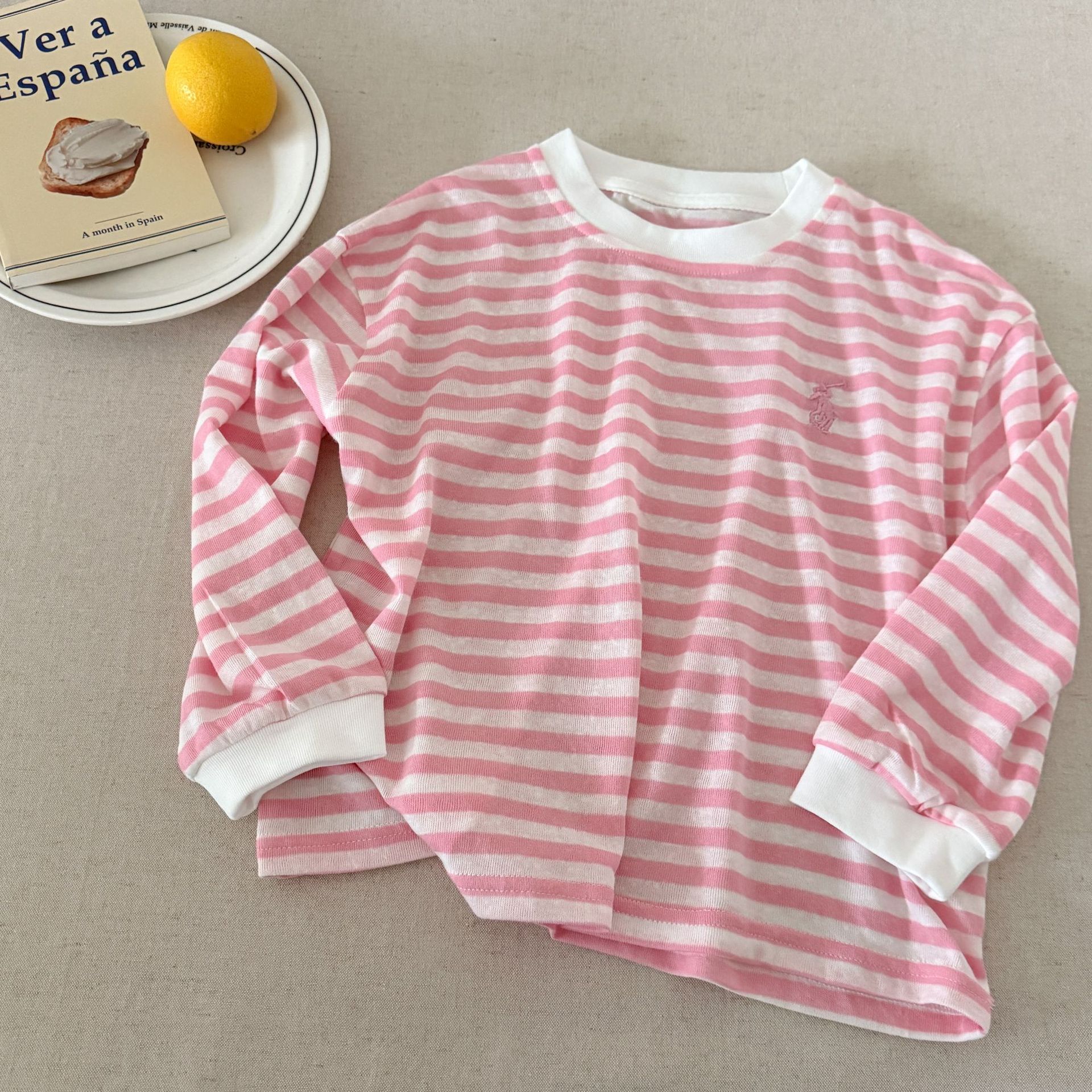 어린이 티셔츠 2025 여름 새로운 도착 아동복 소년 소녀 둥근 목 줄무늬 캐주얼 안티 모기 탑 조수 쿨스토어 가기