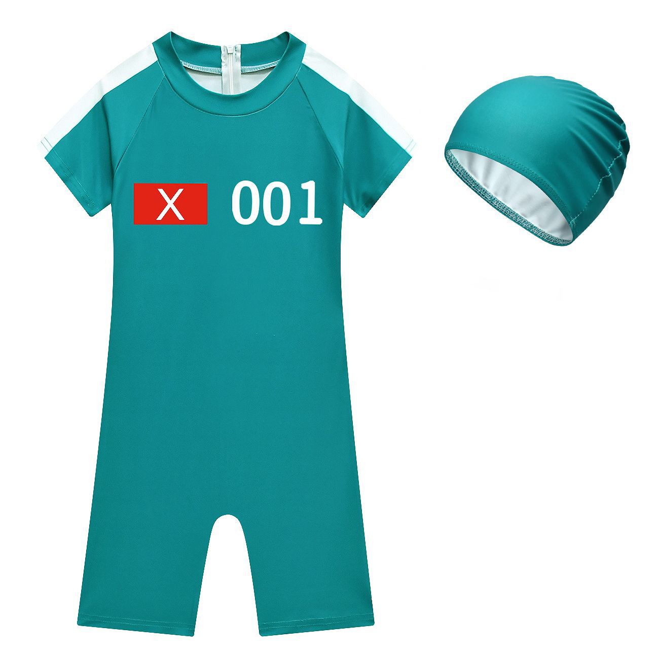 남아 및 여아용 원피스 수영복, 수영 모자, 중대형 아동용 투피스 세트 - 레드 X-001