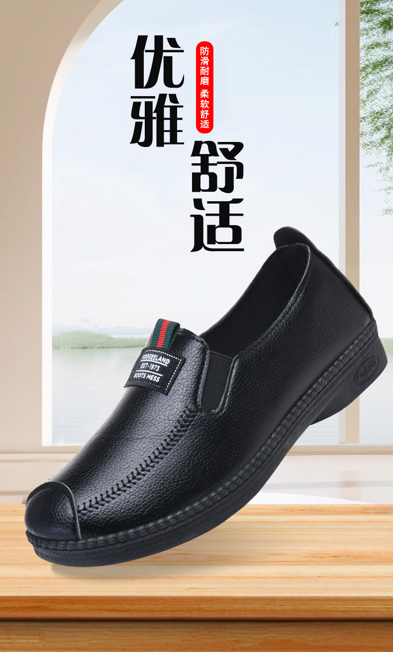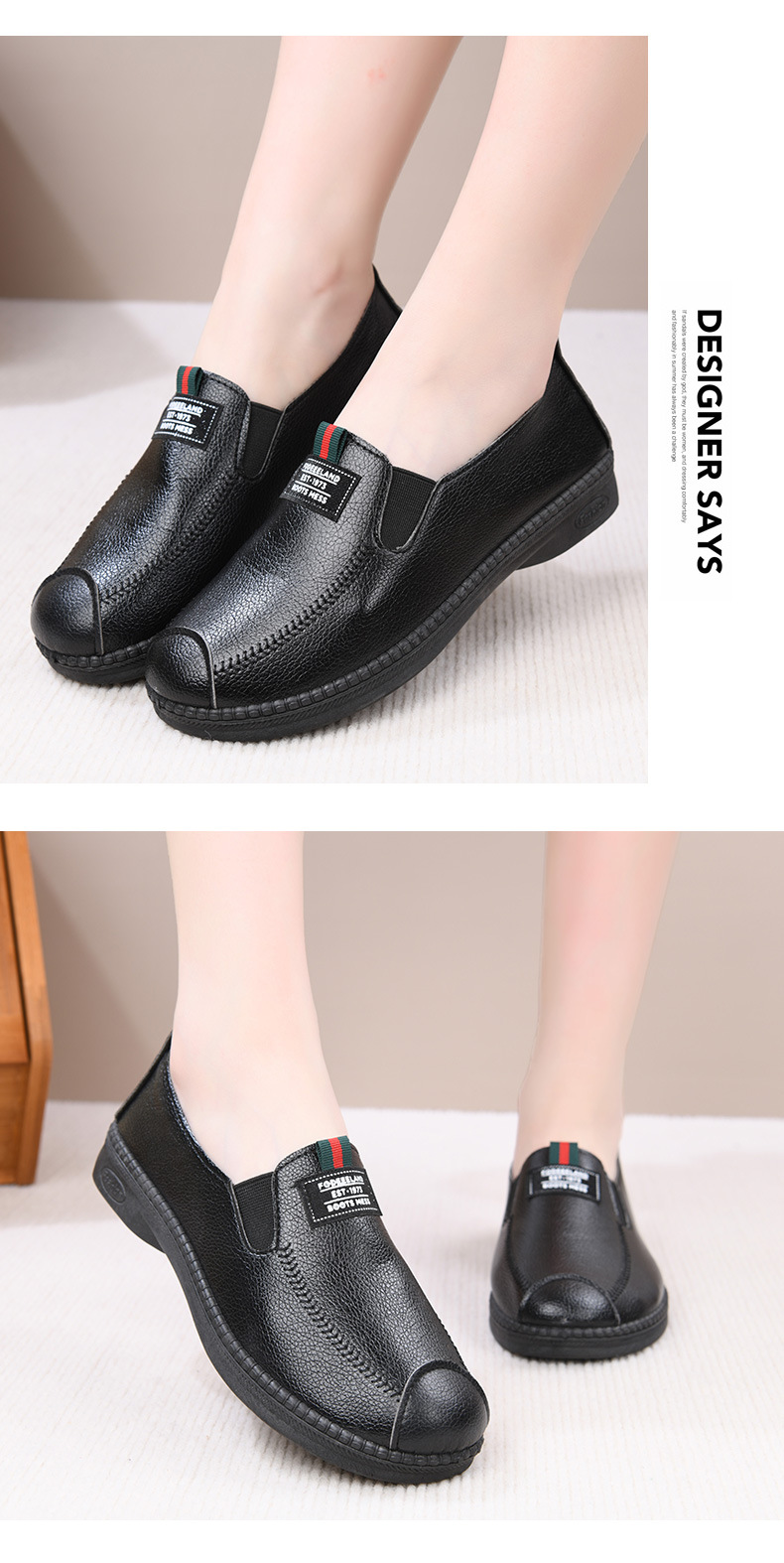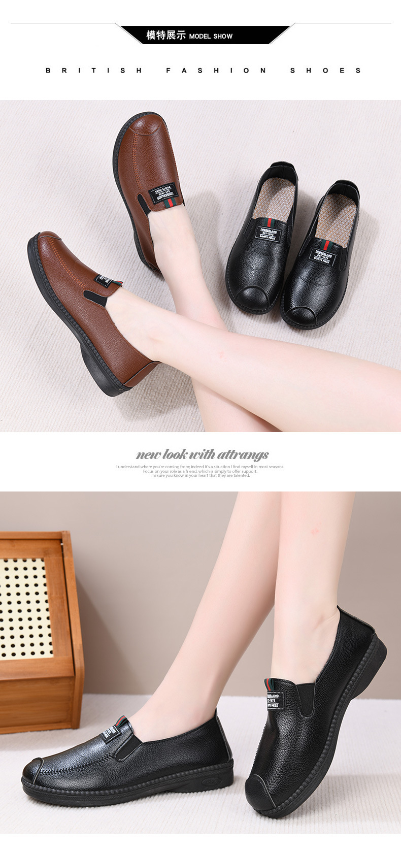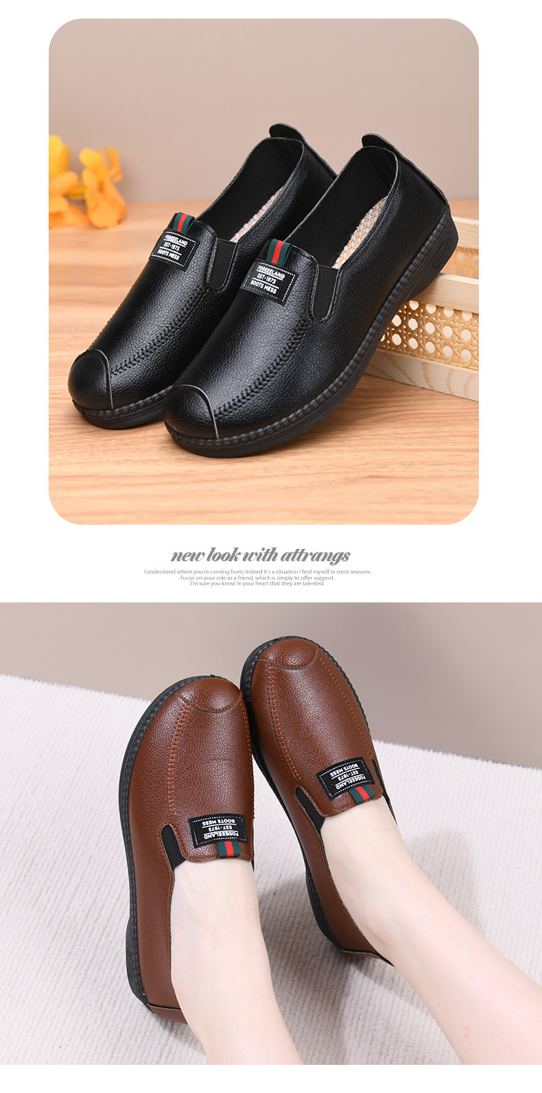 봄과 가을 여성 싱글 신발 어머니 중년 및 노인 가죽 상부 방수 게으른 플랫 신발 소프트 단독 올드 노스 천 신발 작업 싱글 신발스토어 가기