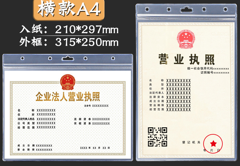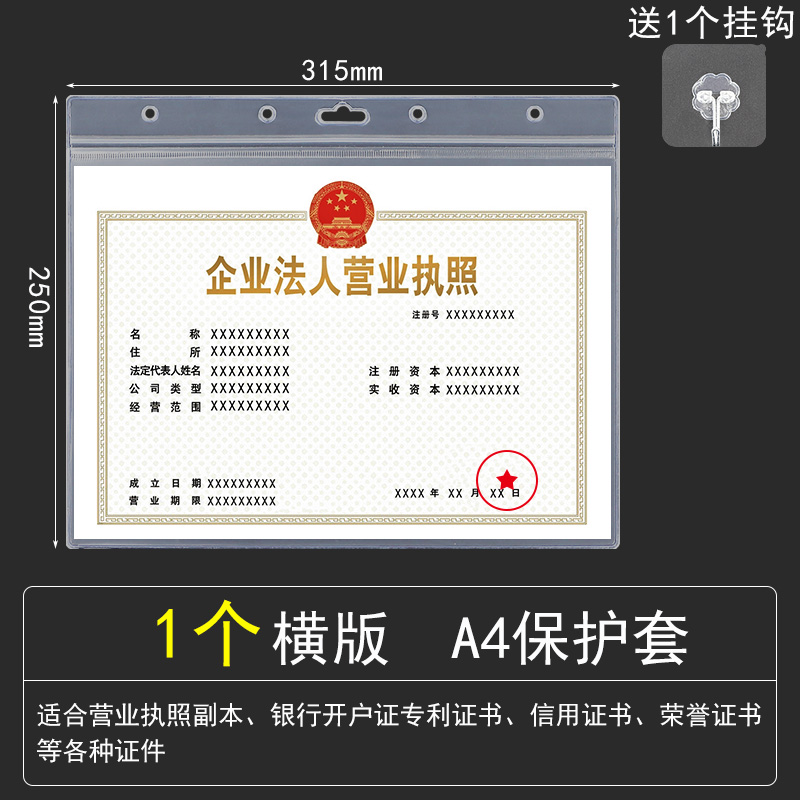 • A4 가로 버전/1팩/후크 1개 포함(사업자 등록증 사본에 적합)