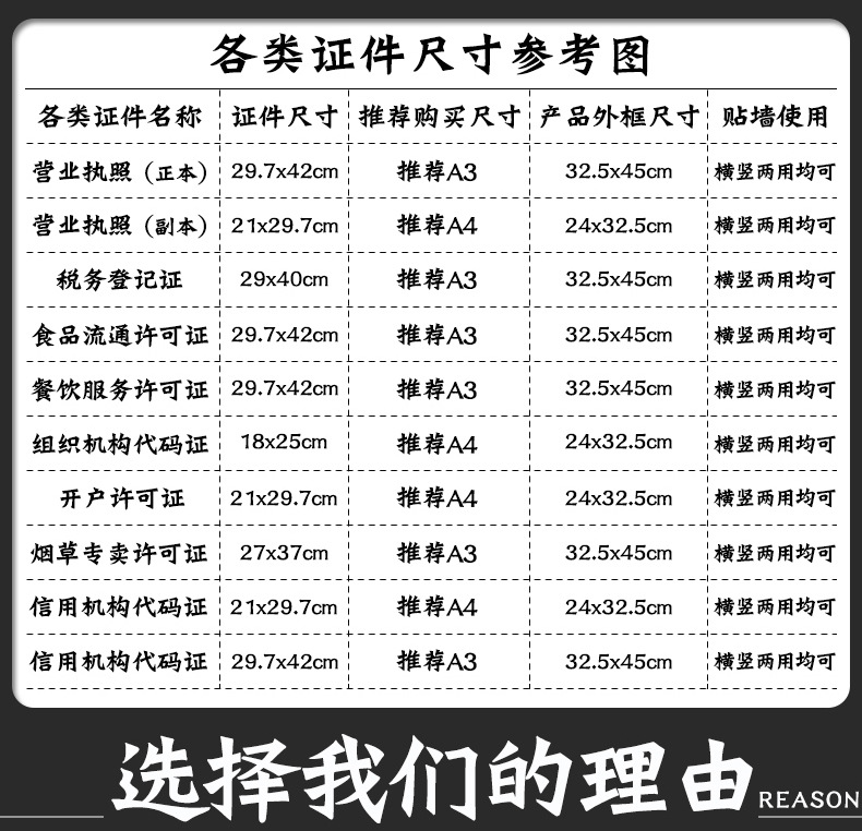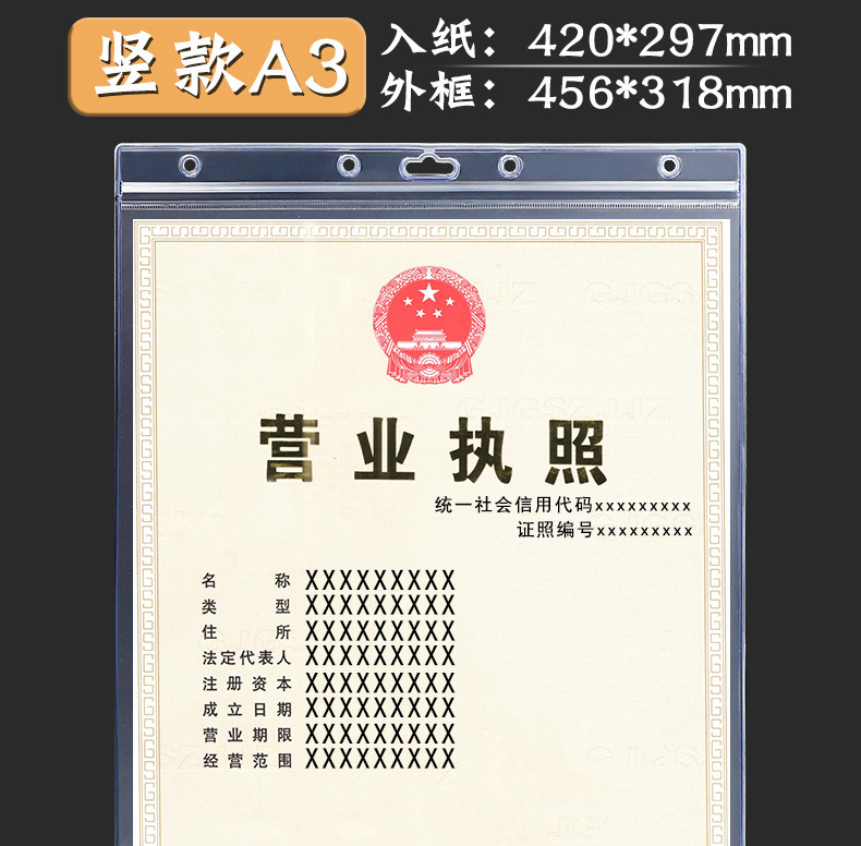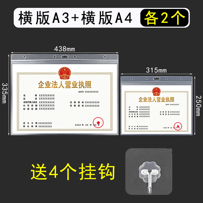 • A3 가로 버전/1팩/후크 1개 포함(원본 영업 허가증에 적합)