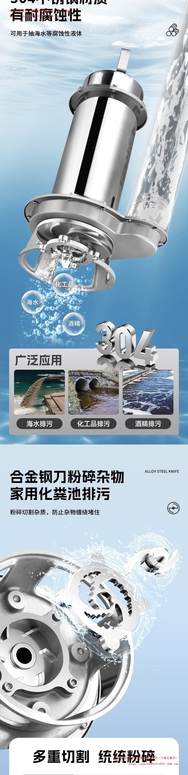 워터 펌프 220v 스테인레스 스틸 부식 방지 잠수정 펌프 380V 고 승압화 변기 하수 펌프 304 커팅 펌프스토어 가기