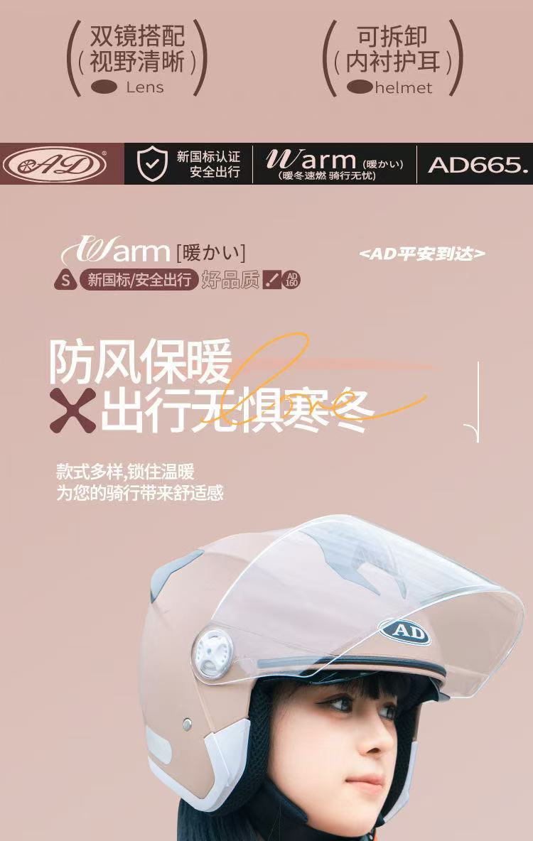 3C 인증 AD 배터리 전기차 헬멧 남녀공용 사계절용 반헬멧 가을 겨울 보온 방한 안전모