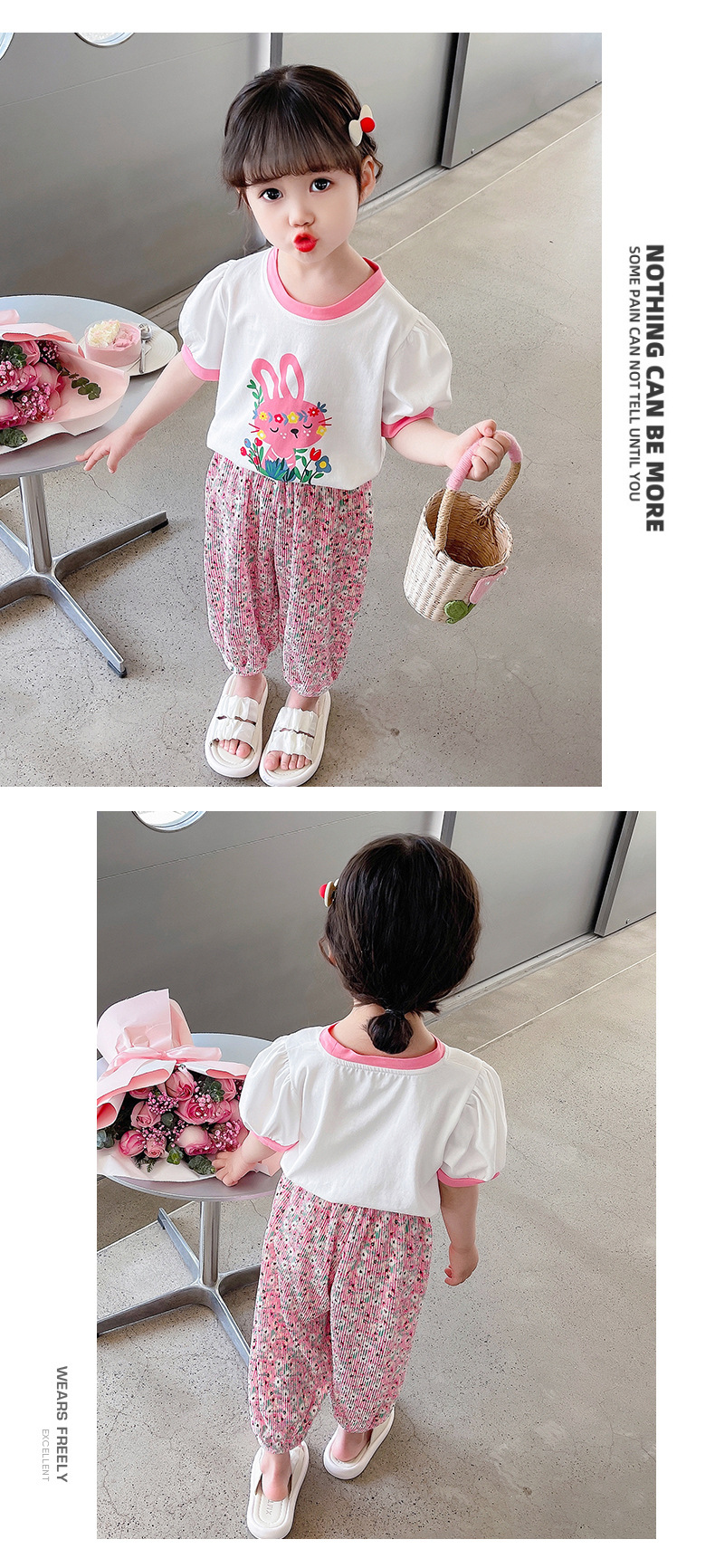 2025 여름 새 여자 만화 반팔 티셔츠 귀여운 프린트 외국 스타일 탑 격자 무늬 바지 한국어 버전스토어 가기